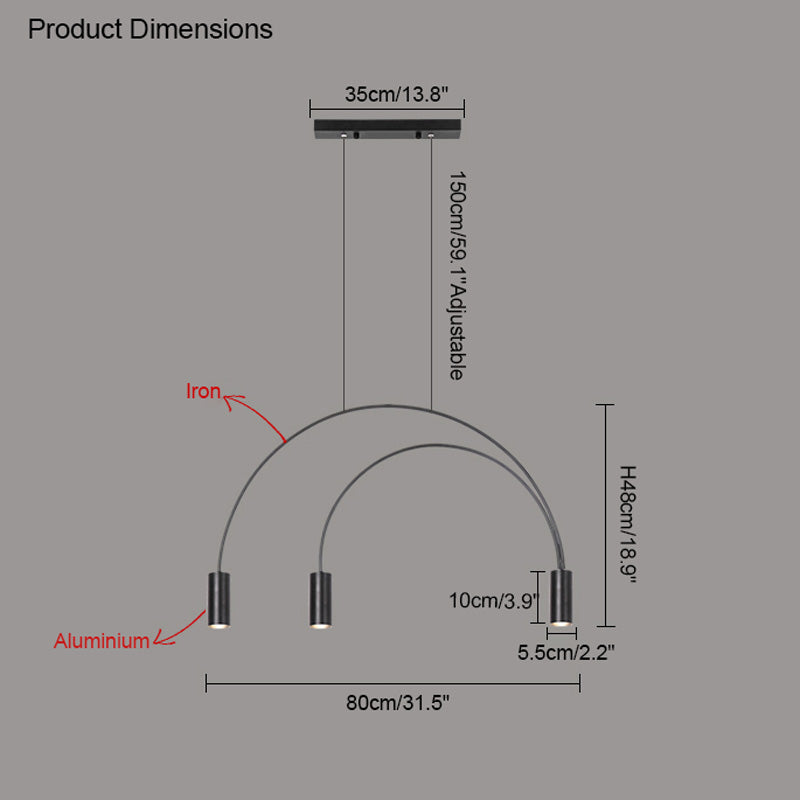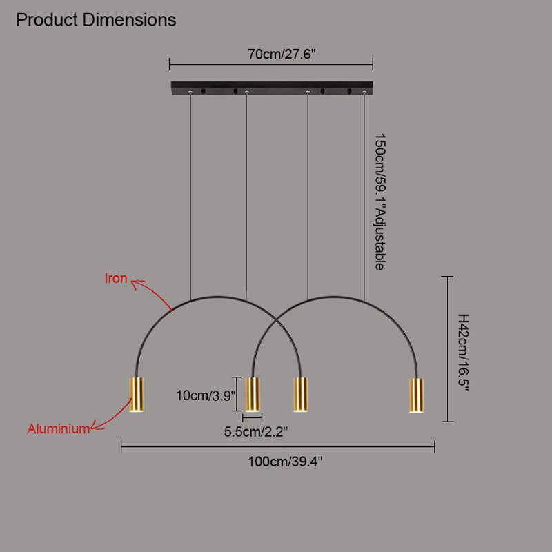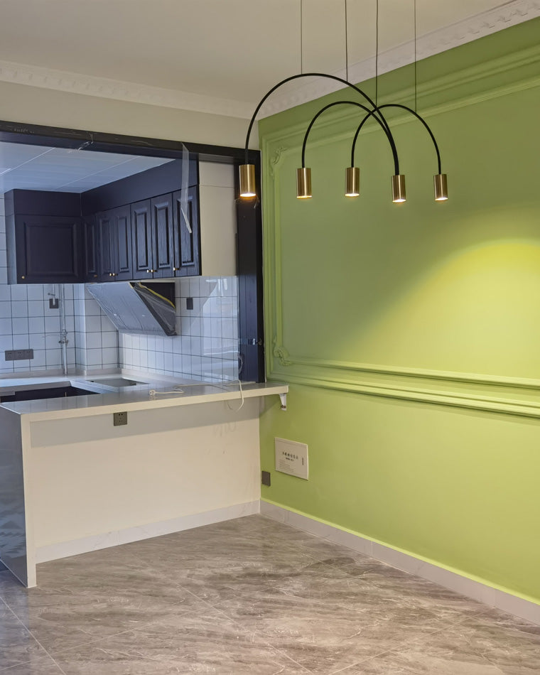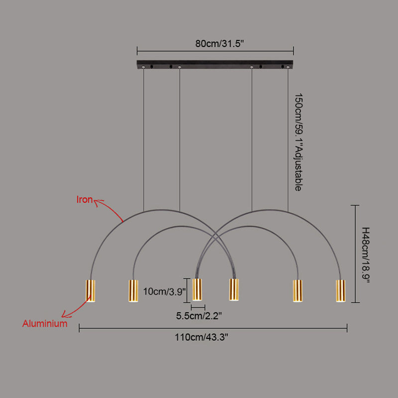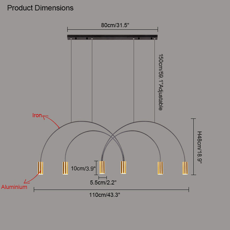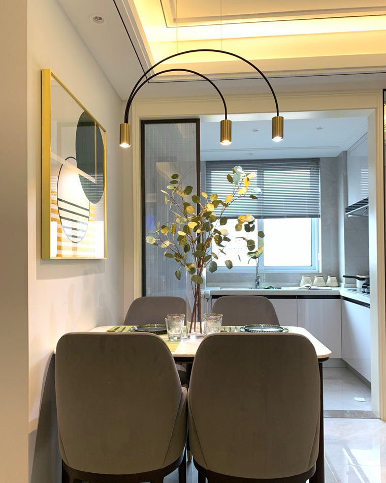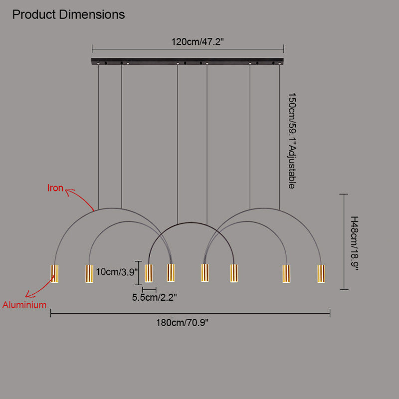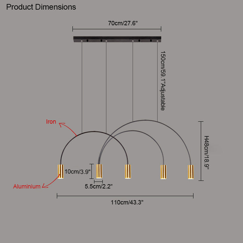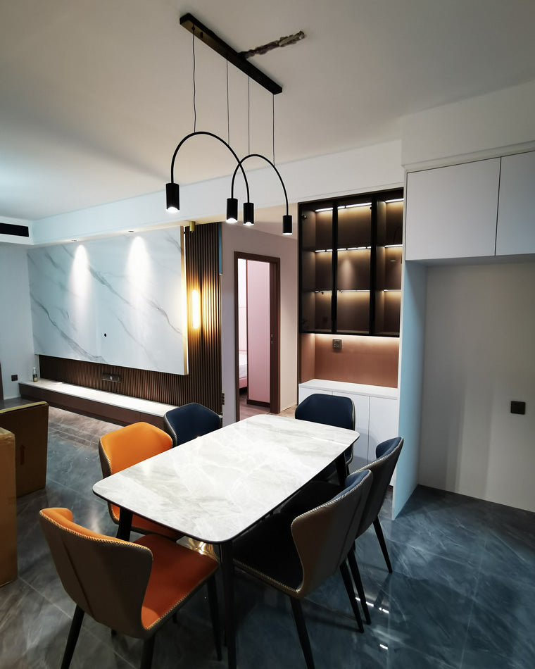 This WOMO Arc Pendant Lamp is a modern and elegant statement piece, perfect for any contemporary indoor space. this unique Led light features cascading rainbow arcs, perfect for creating a minimalist and artistic atmosphere. Whether installed in a restaurant, kitchen, or dining room, this light fixture is sure to provide an exclusive, tasteful atmosphere.