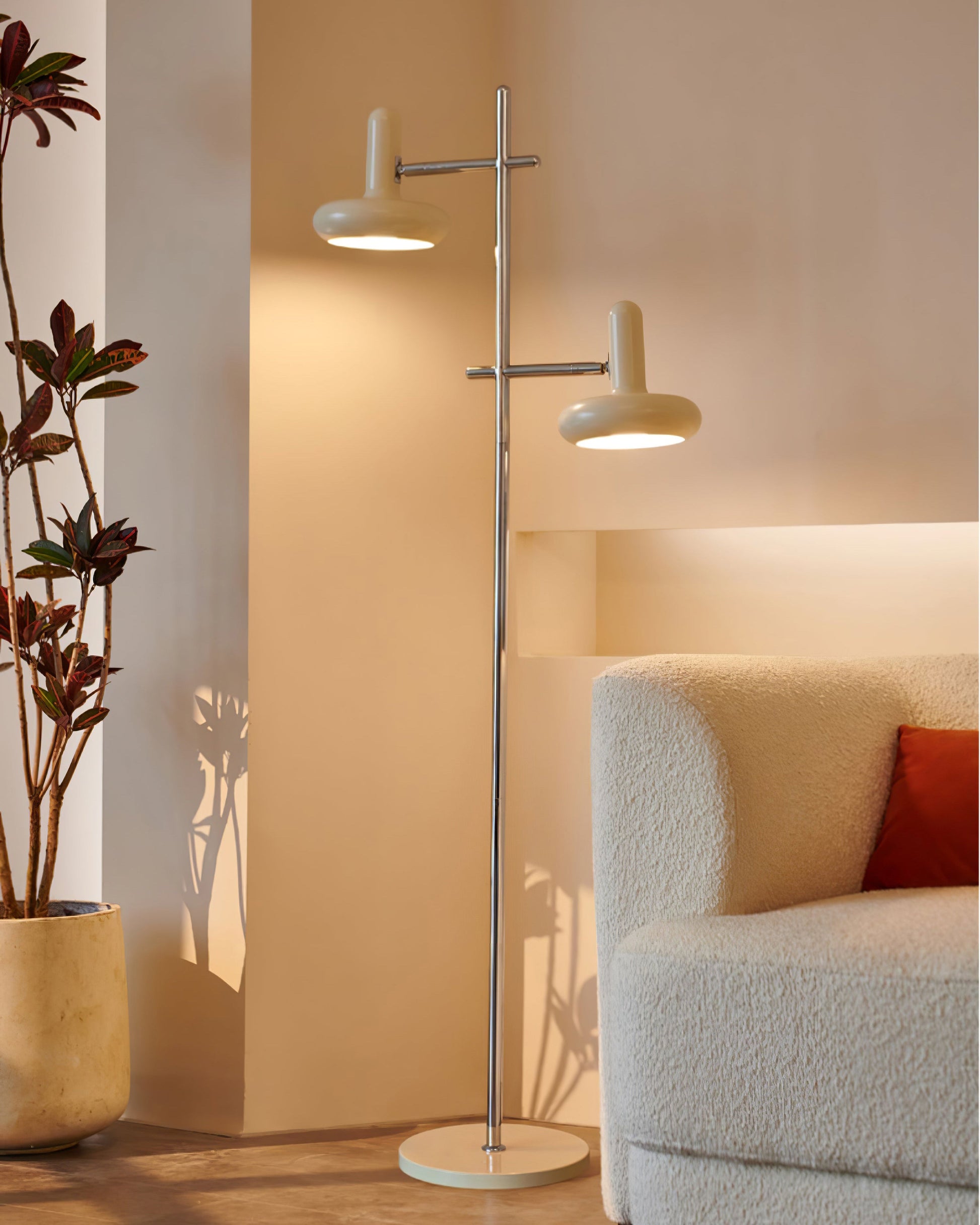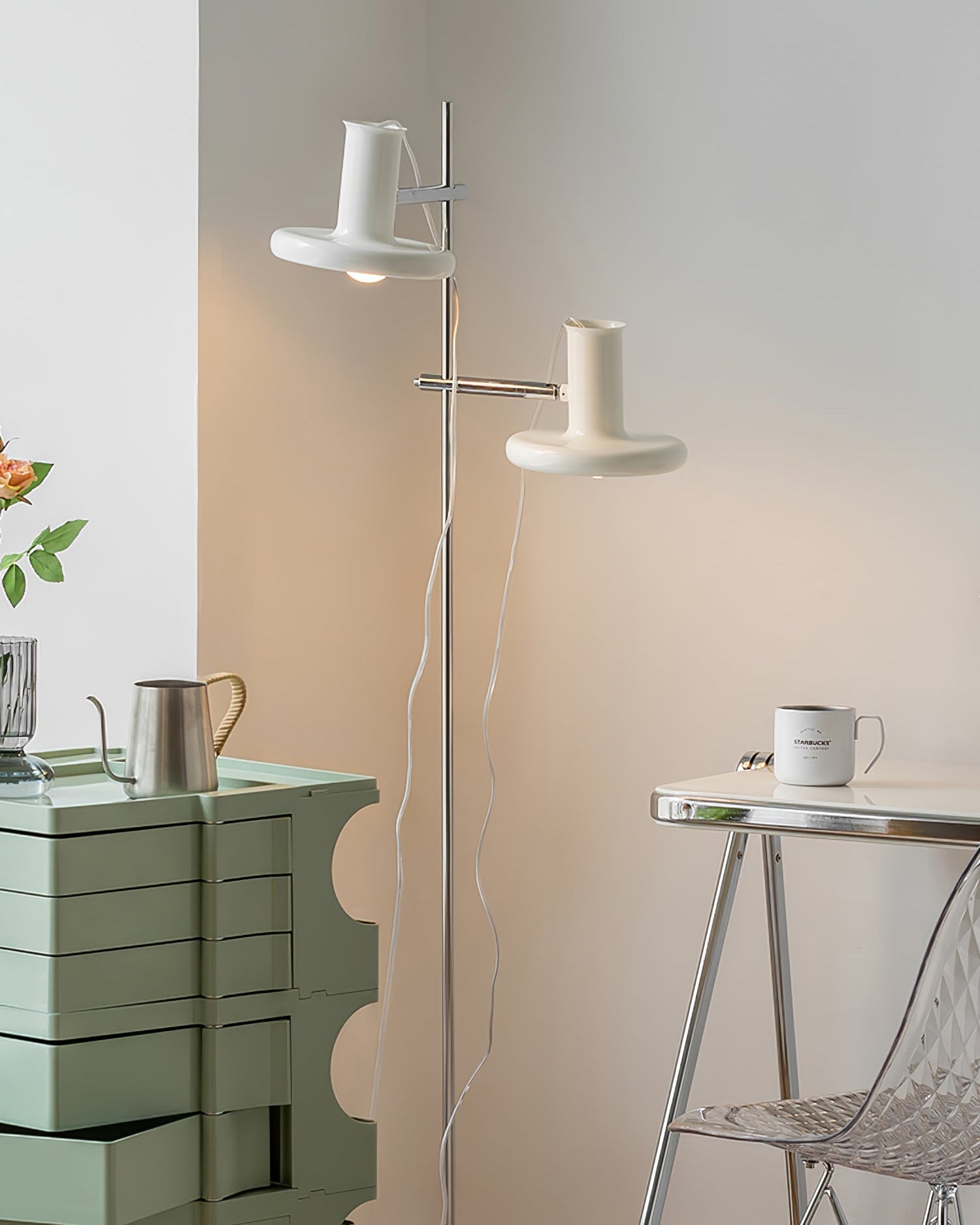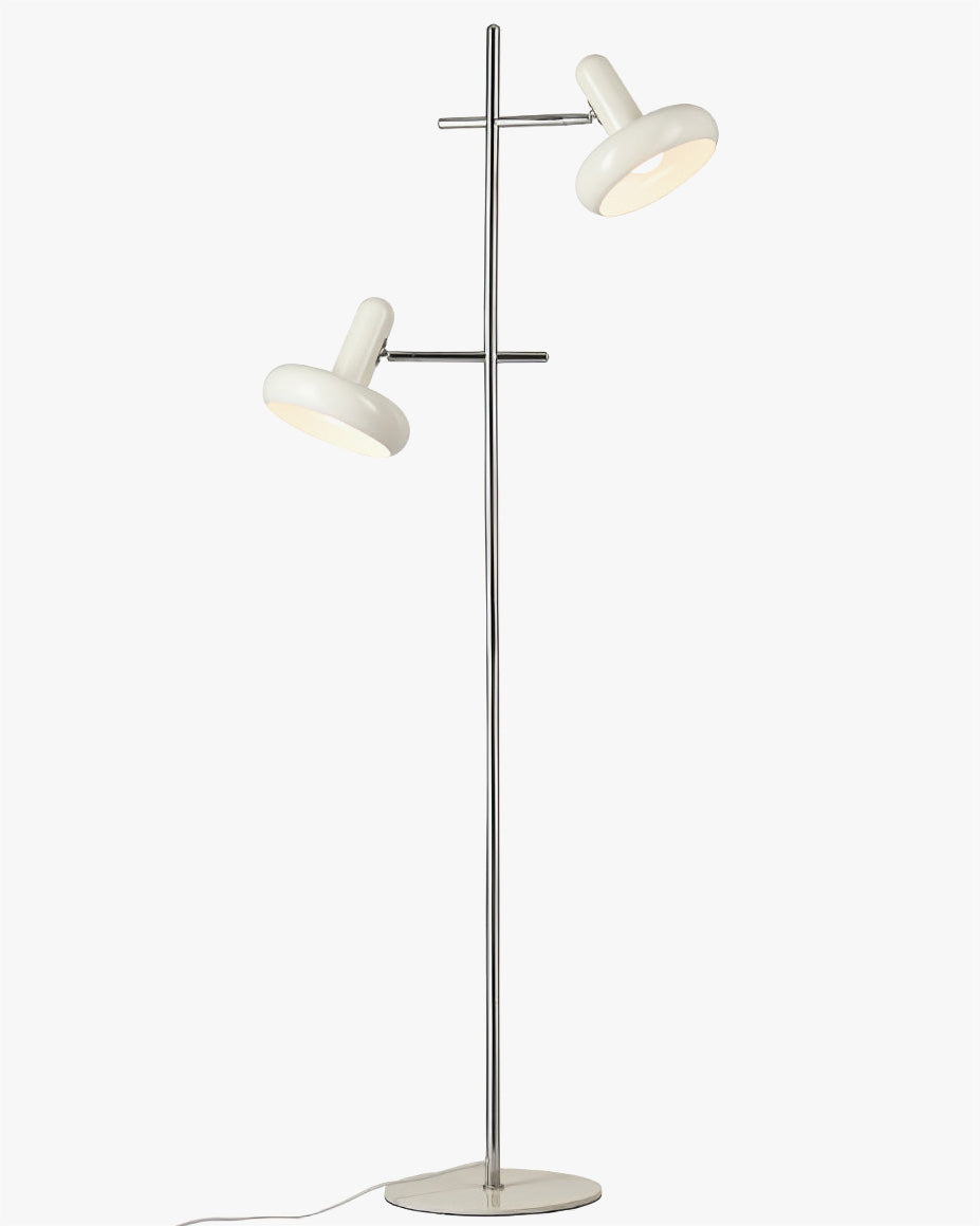 Elevate your space with the bauhaus charm of the WOMO 2 Light Floor Lamp. Crafted from sturdy metal and finished in a classic white, this lamp adds character to any living room or bedroom. Create a cozy and inviting atmosphere with its soft, warm glow.