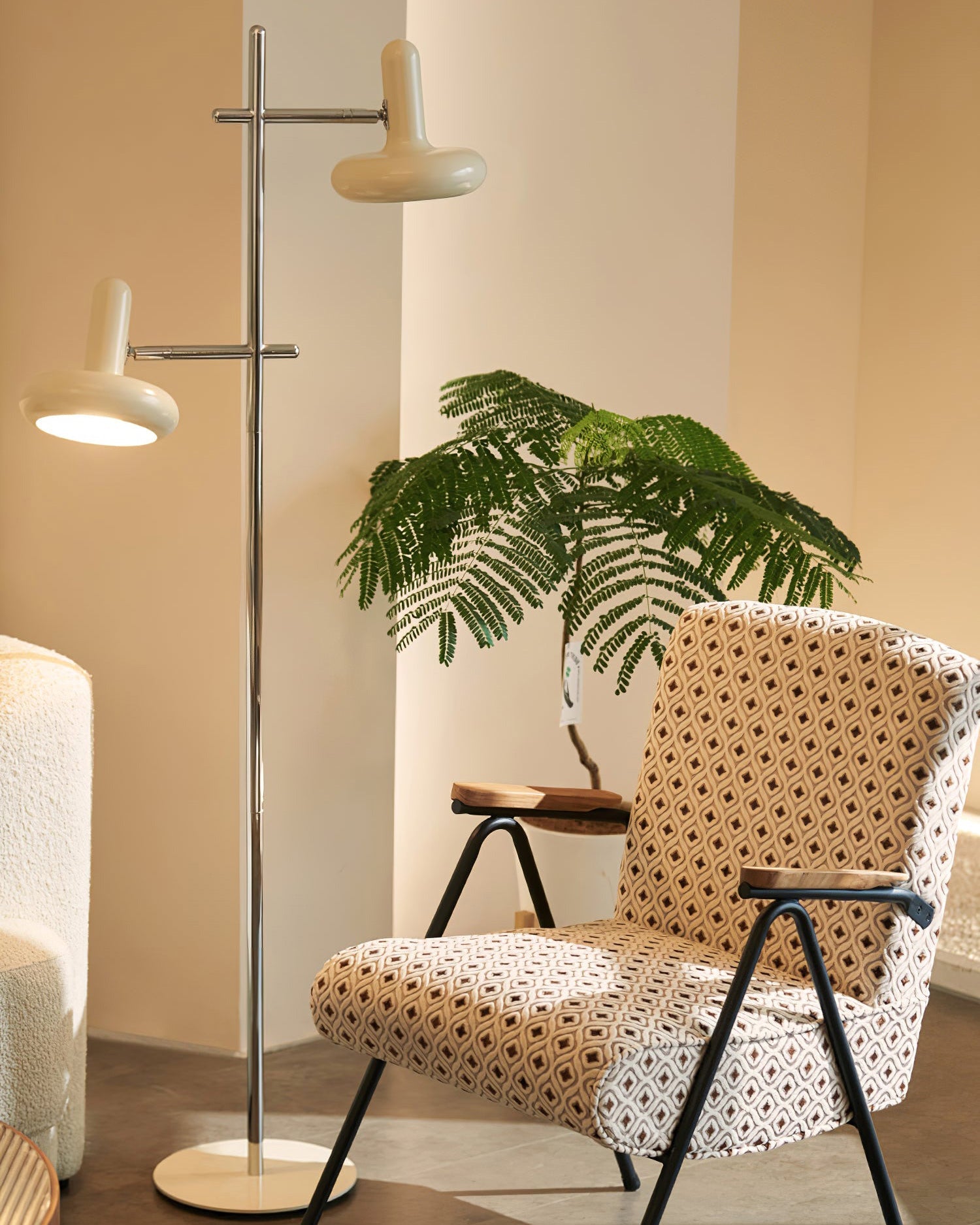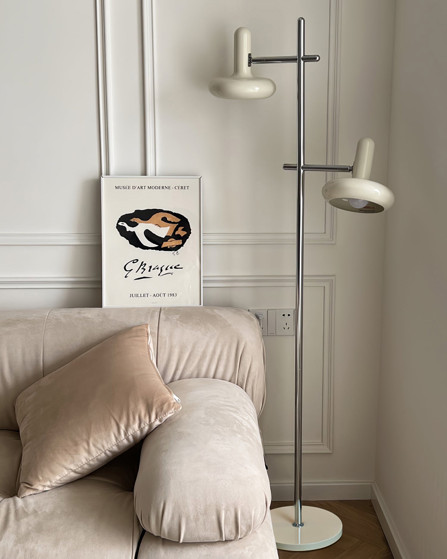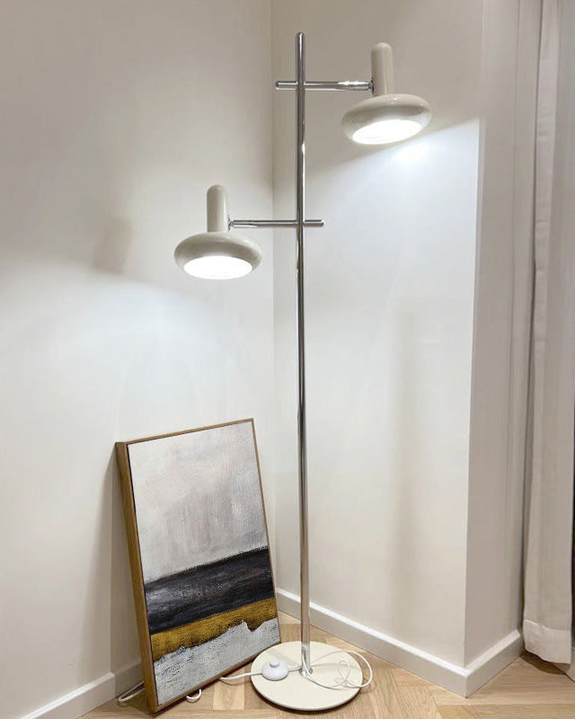 Elevate your space with the bauhaus charm of the WOMO 2 Light Floor Lamp. Crafted from sturdy metal and finished in a classic white, this lamp adds character to any living room or bedroom. Create a cozy and inviting atmosphere with its soft, warm glow.