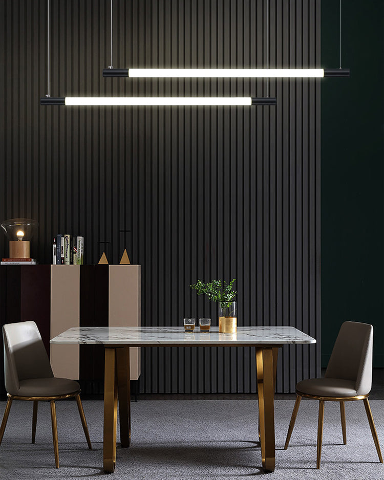 Illuminate your dining room or kitchen with the contemporary and dimmable WOMO Alabaster Linear Pendant Light. The alabaster material adds a touch of elegance while the linear design provides even lighting. Enhance your dining experience with this stylish and functional lighting fixture.