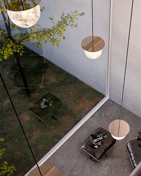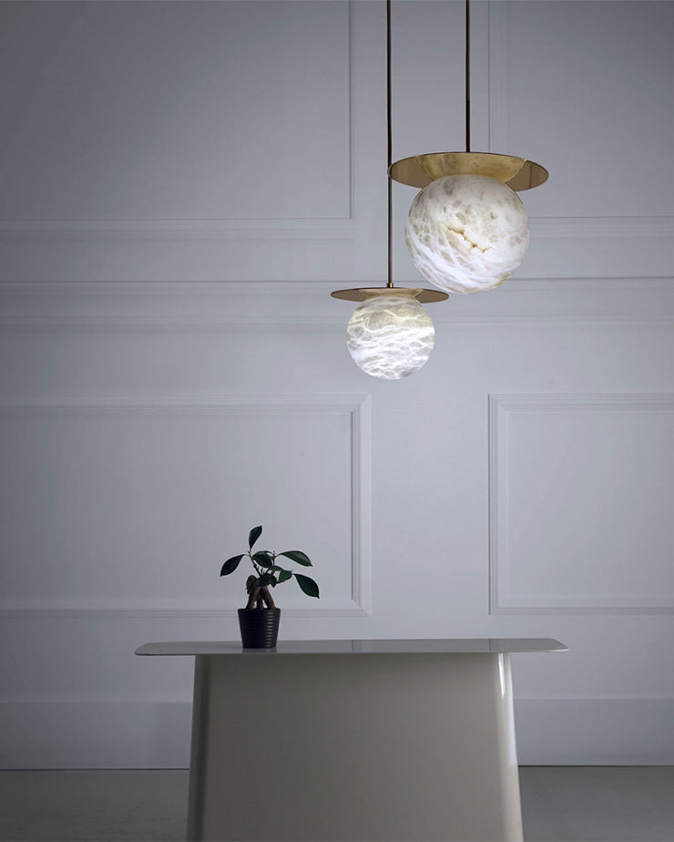 WOMO Alabaster Globe Disc Pendant Light-WM2921