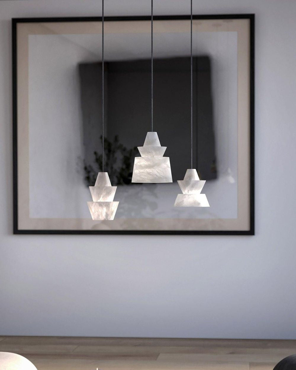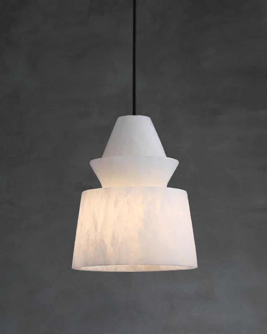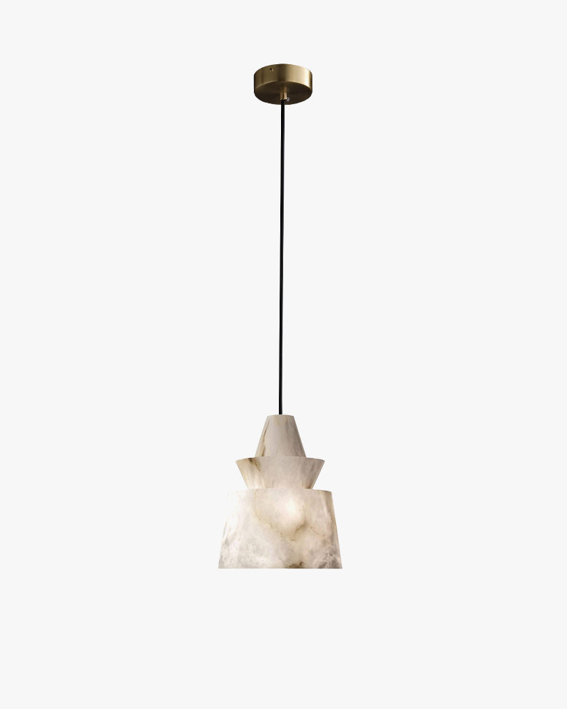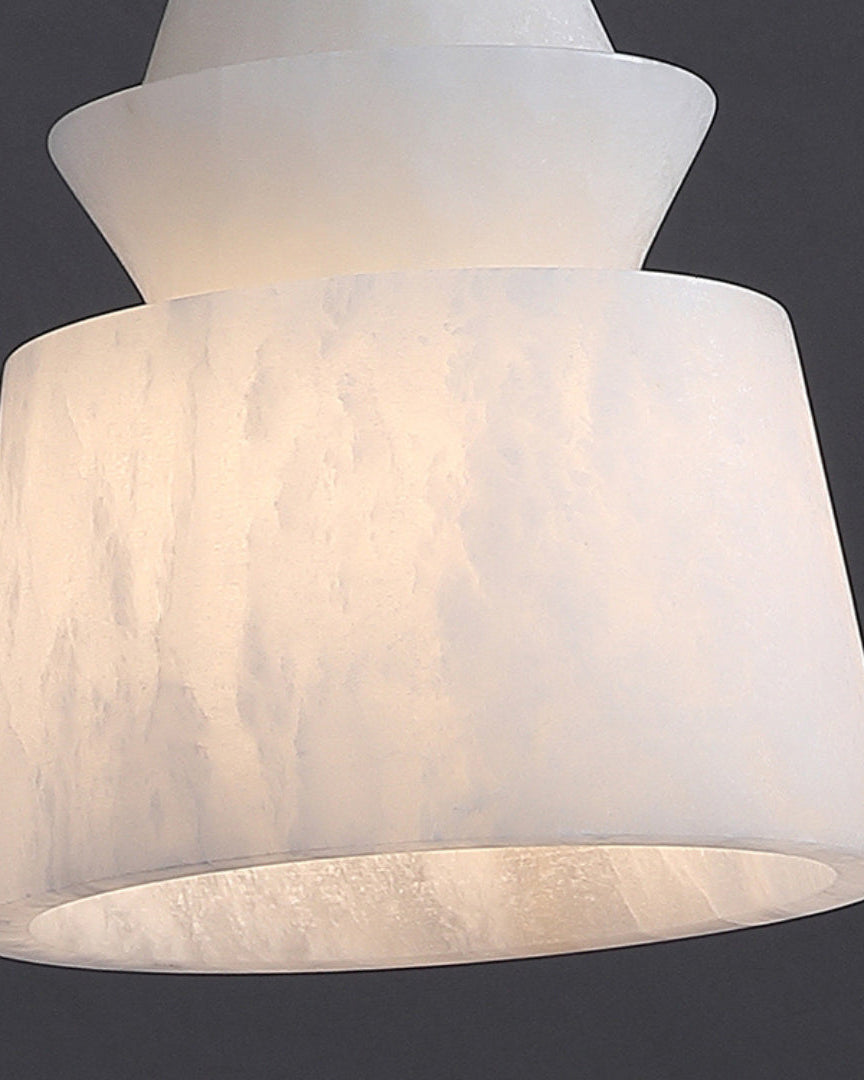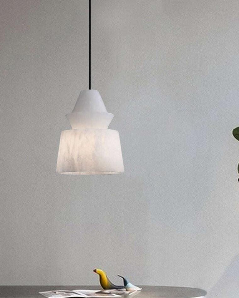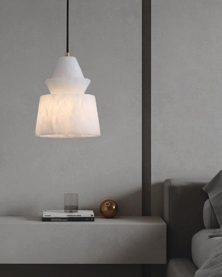 Illuminate your bedroom with the contemporary and luxurious WOMO Alabaster Pendant Light-WM2897. Made with genuine alabaster and a beautiful gold finish, this pendant light adds a touch of elegance to any room. Create a warm and inviting atmosphere with its soft and natural lighting.