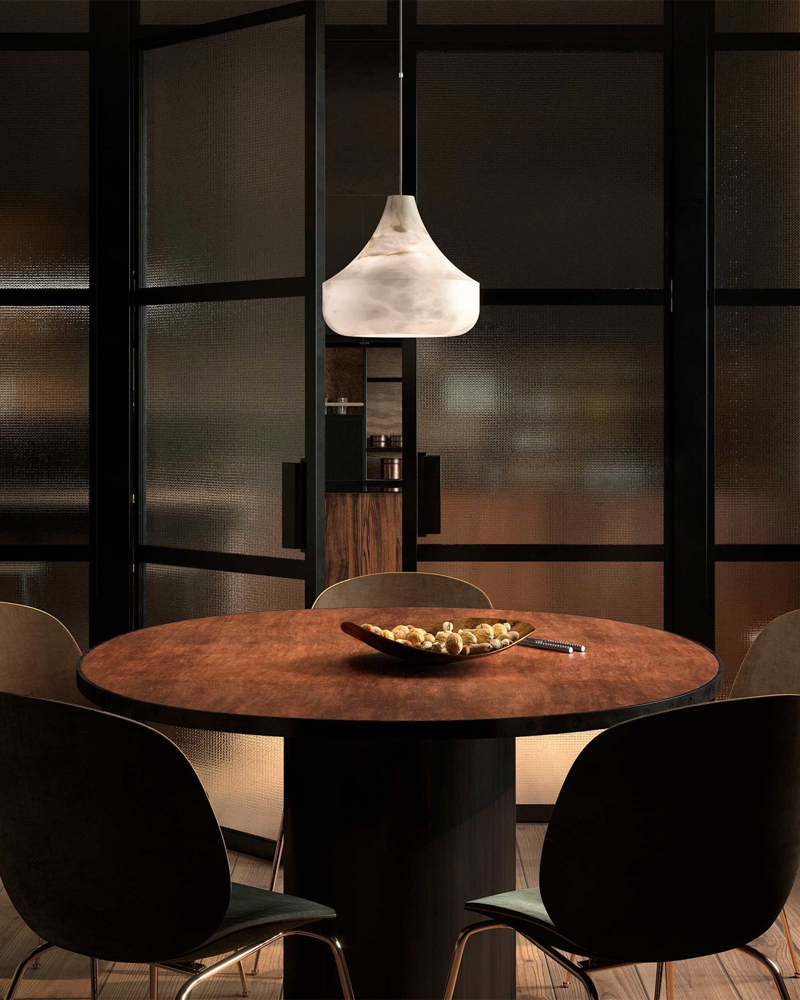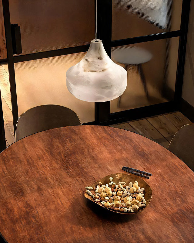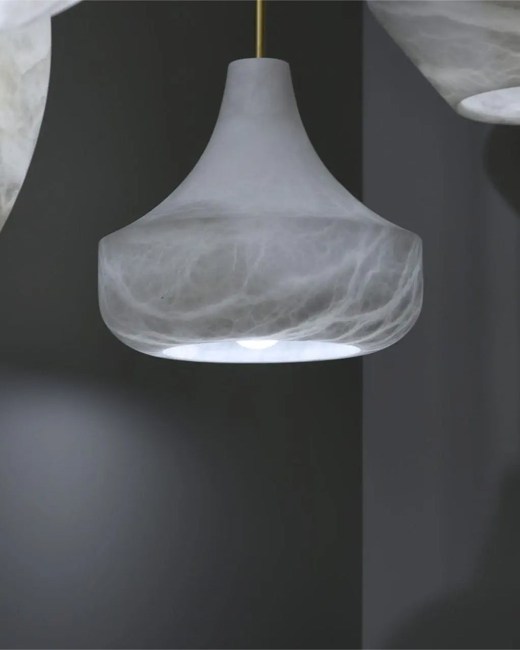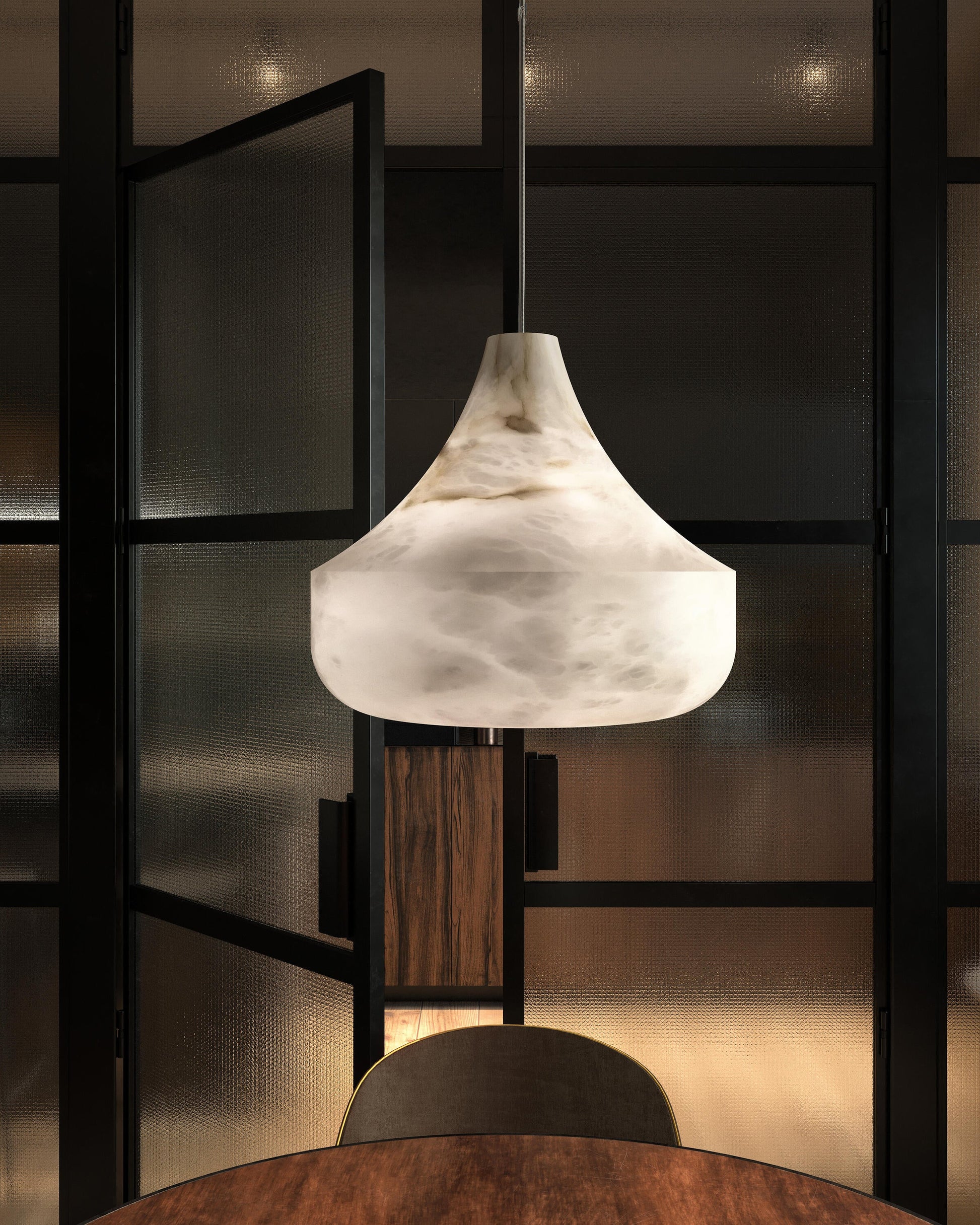 Elevate the ambiance of any room with our contemporary WOMO Unique Alabaster Pendant Light! Crafted with stunning Alabaster and a touch of Gold, this oval-shaped light adds a touch of sophistication to any bedroom or dining room. Experience luxurious lighting and elevate your space.