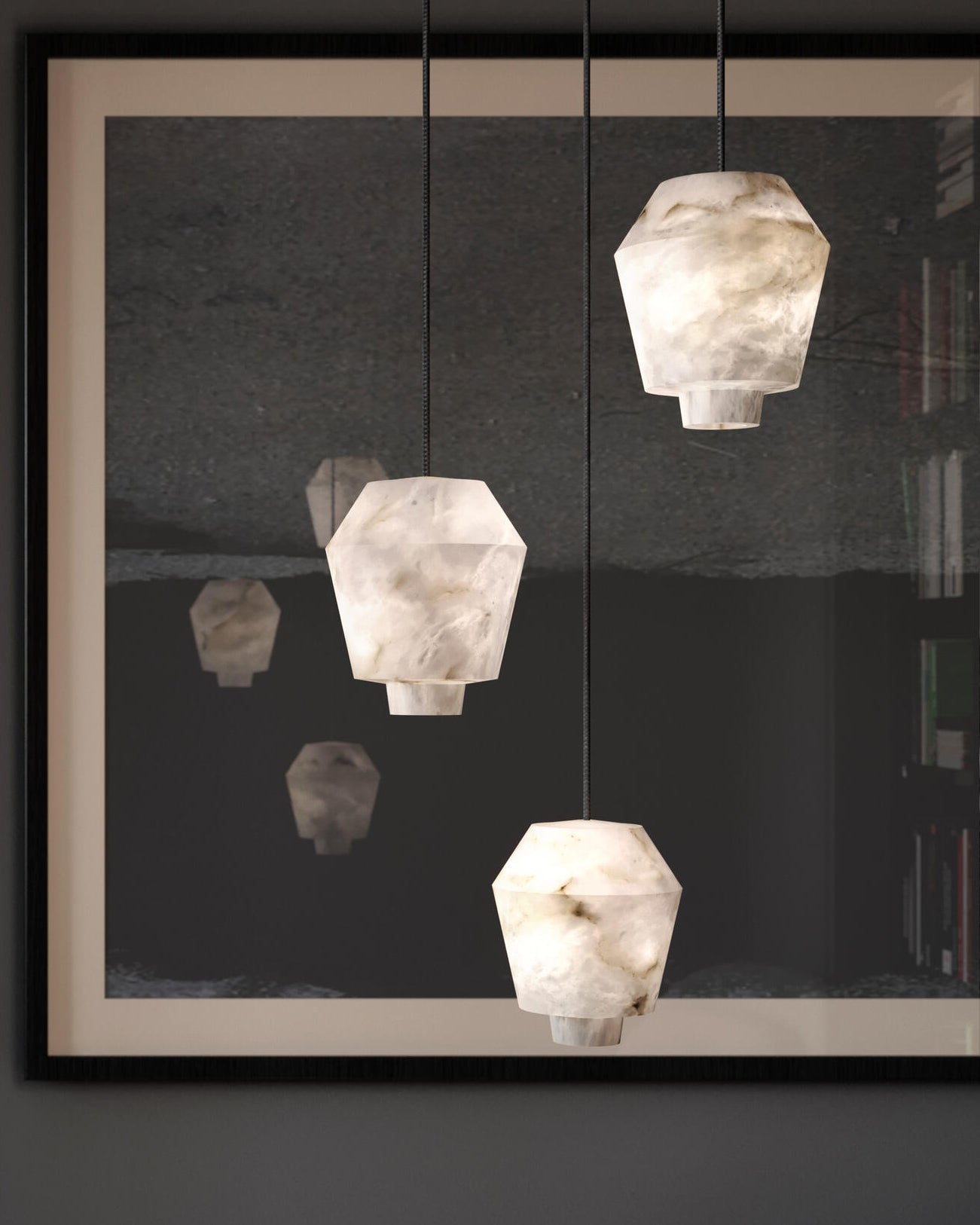 Illuminate your home with the contemporary elegance of the WOMO Alix Alabaster Pendant Light. Its stunning gold accents and alabaster shade bring a touch of luxury to any bedroom or dining room. Elevate your space with this stylish and sophisticated lighting option.
