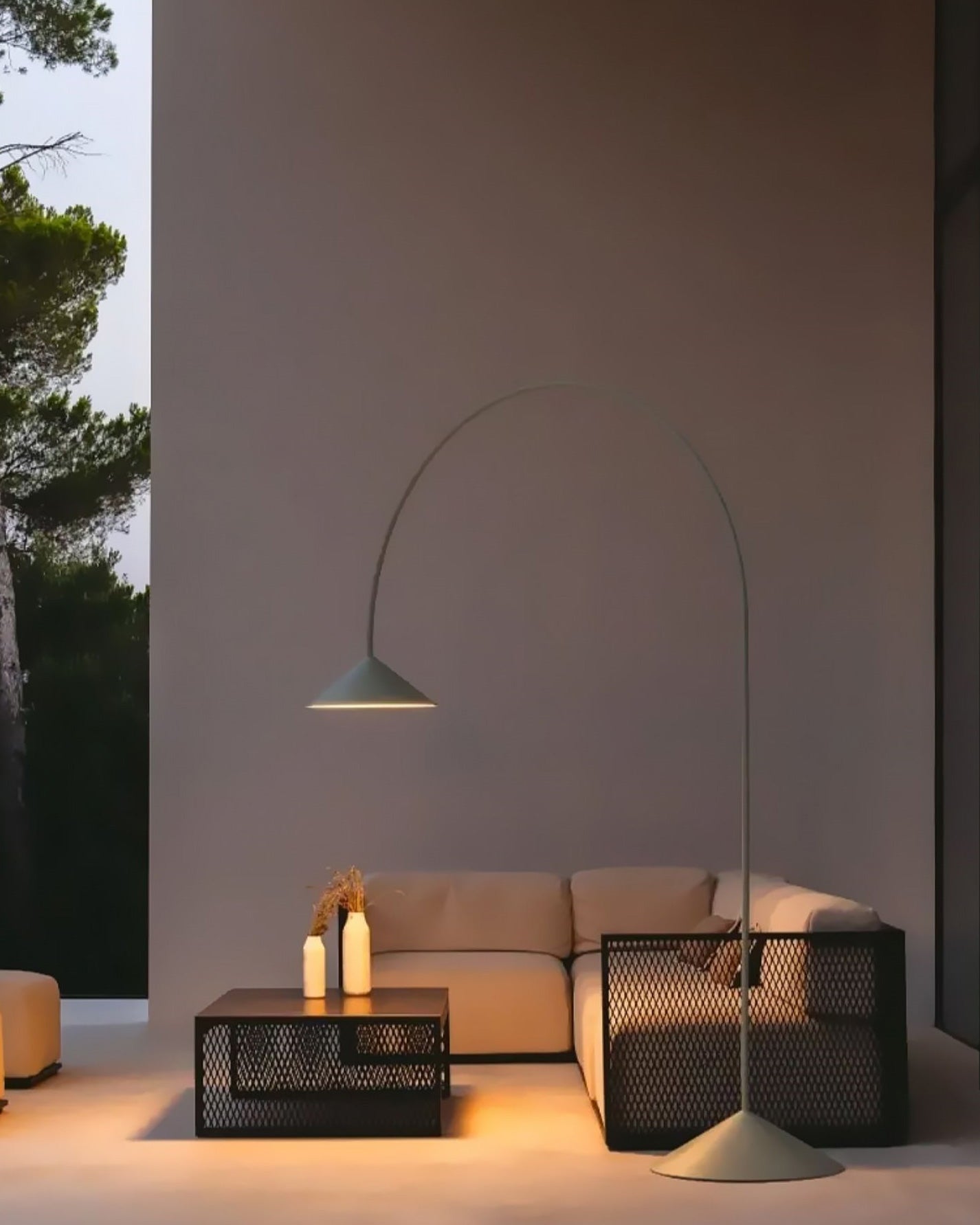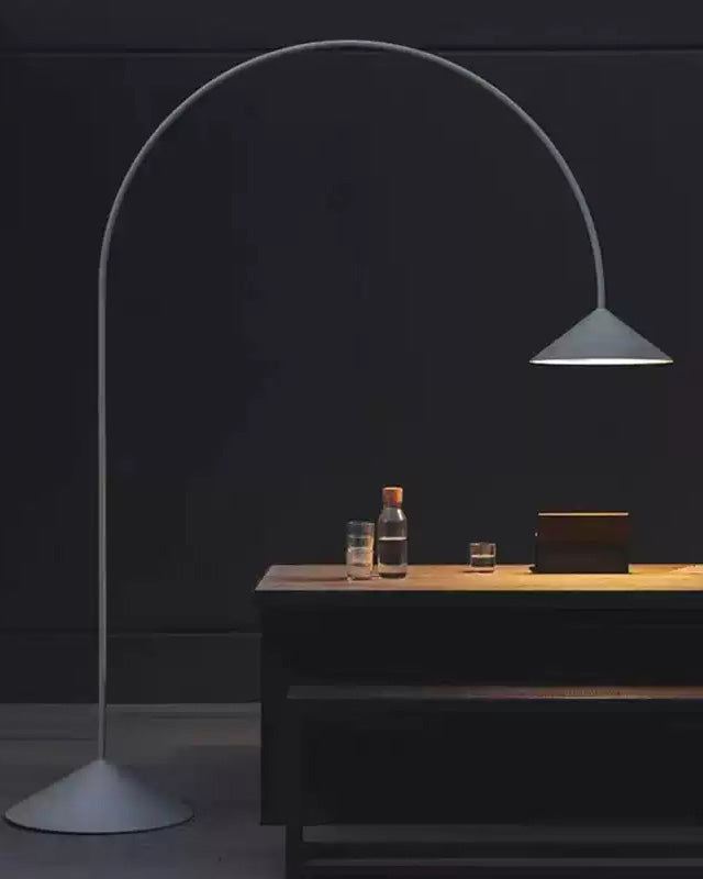 Elevate your space with the sleek and modern WOMO Floor Lamp-WM7139. Featuring a minimalist design with a sturdy metal base, this lamp is available in white, black, gray, and red to match any decor. The elegant arc and cone-shaped shade make it a perfect addition to your living room or bedroom.