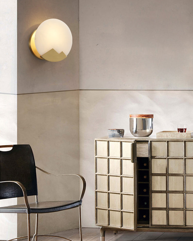 Elevate your living room or bedroom with the WOMO Globe Alabaster Wall Sconce-WM6156. Crafted with a sleek gold metal finish and a smooth alabaster globe, this elegant fixture delivers warm, diffused lighting that enhances any space with sophistication and comfort. Its timeless design adds a luxurious touch while providing soft illumination, perfect for creating a cozy and inviting atmosphere.