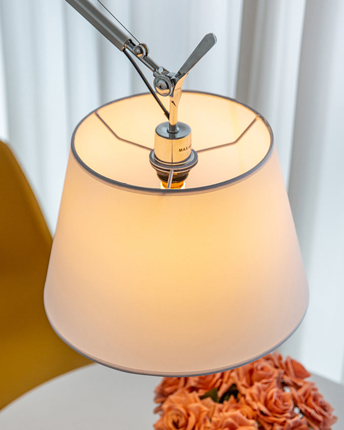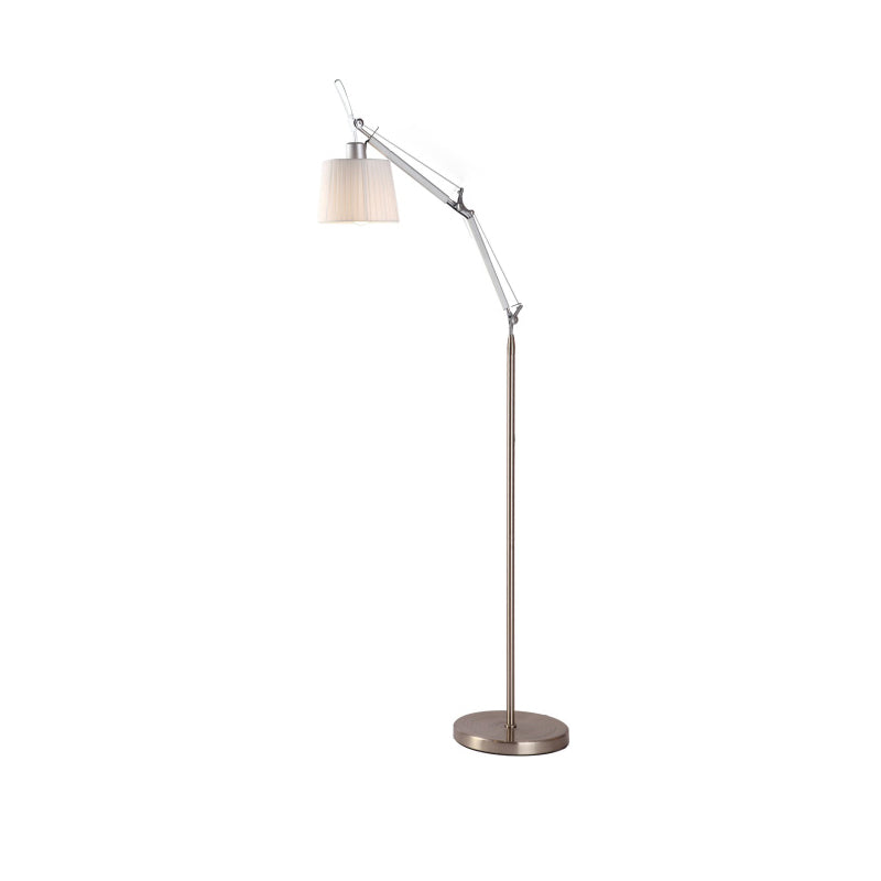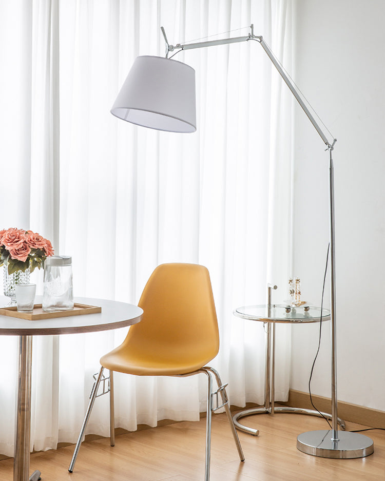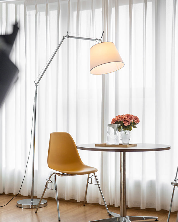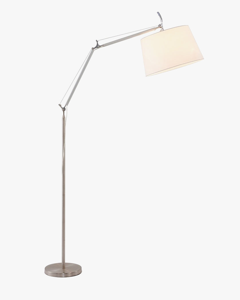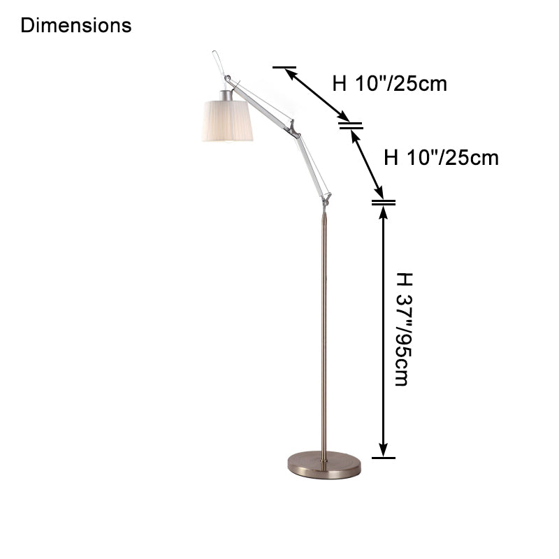 Elevate your living room or bedroom with the sleek and industrial design of the WOMO Articulating Floor Lamp. Made with high-quality fabric and chrome, this lamp adds a touch of sophistication to any space. Bring a warm and inviting ambiance to your home with its soft silver glow.