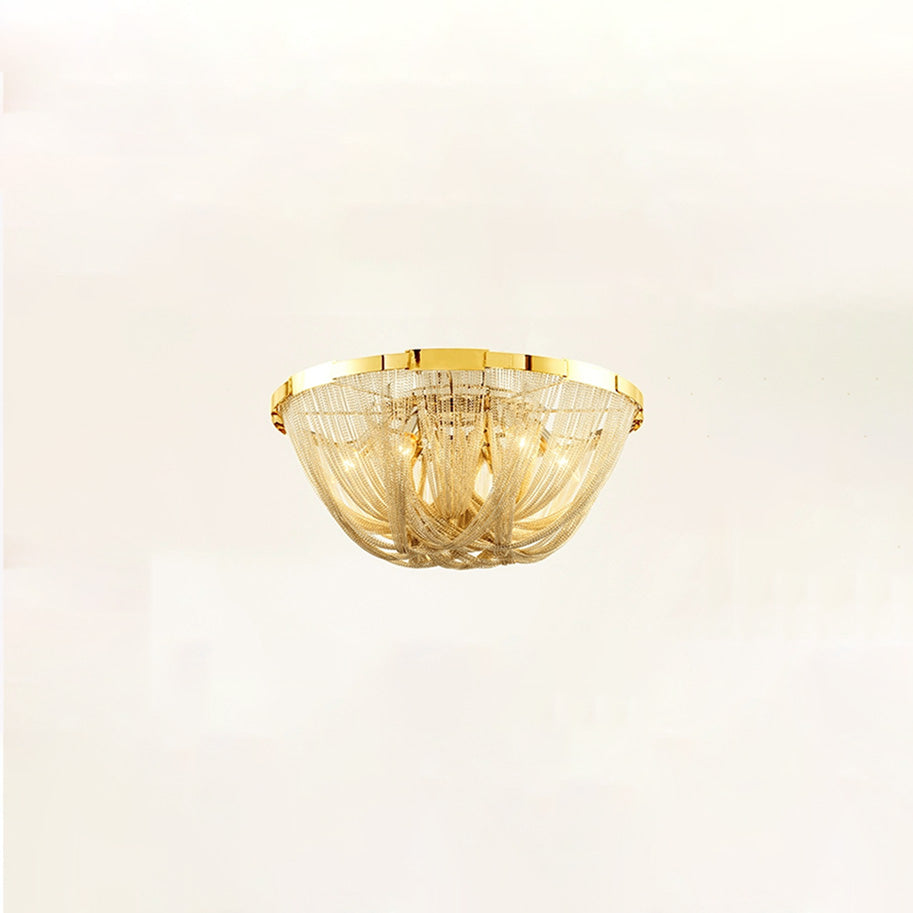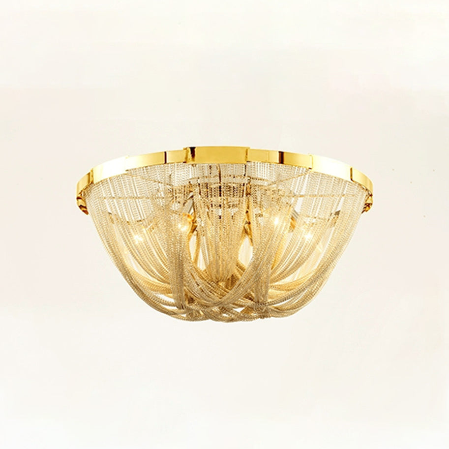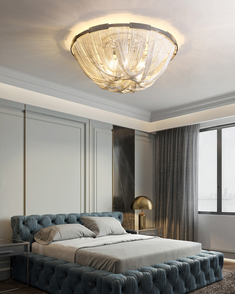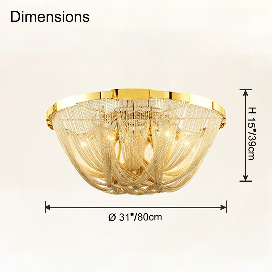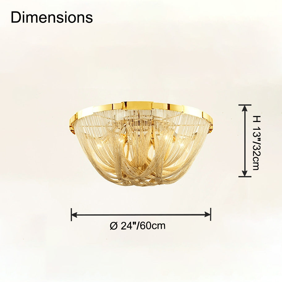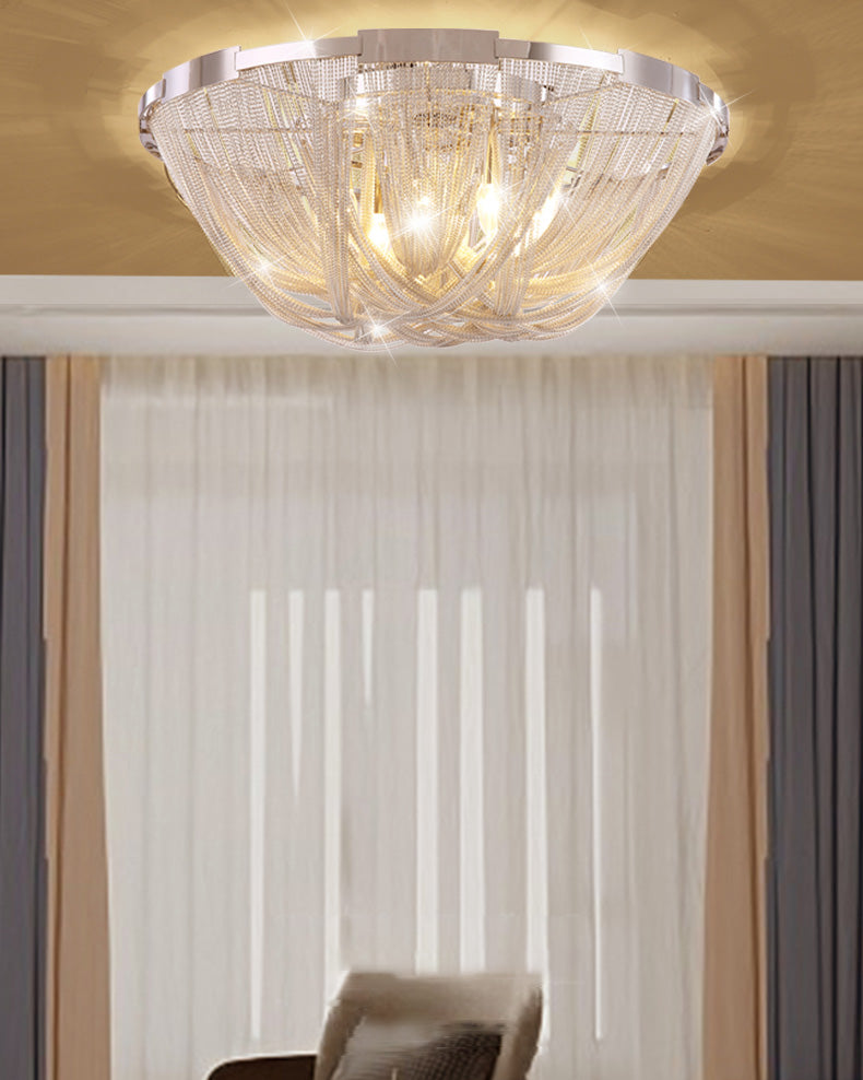 Bring a touch of luxury to your home with the WOMO Luxury Chain Tassel Ceiling Light. The Art Deco design and metal construction of this light fixture exude elegance and sophistication. The chrome and gold finish adds a glamorous touch to any bedroom or living room. Elevate your space with this stunning ceiling light!
