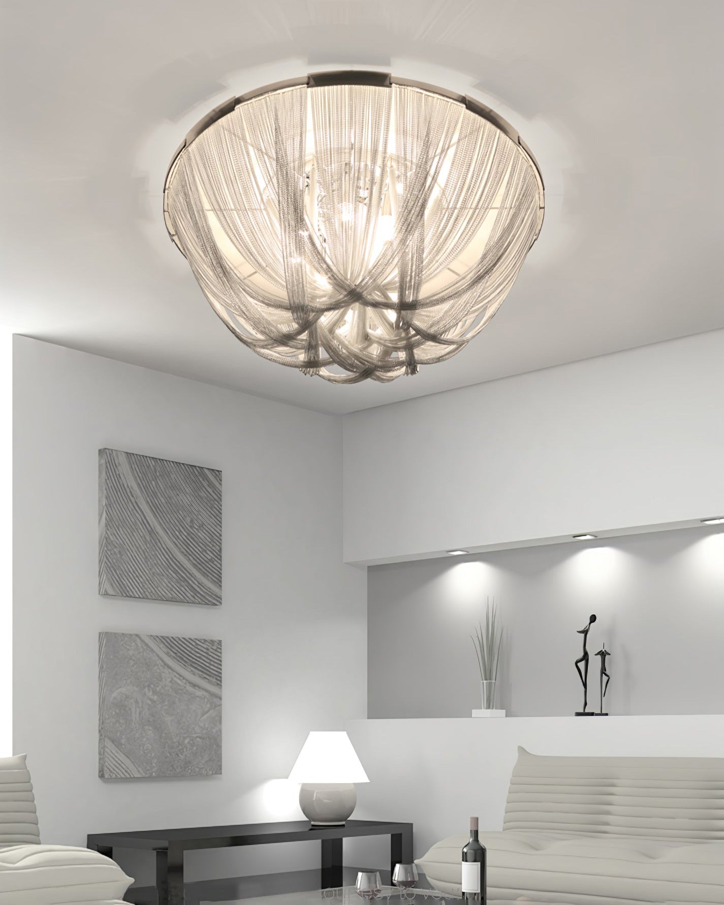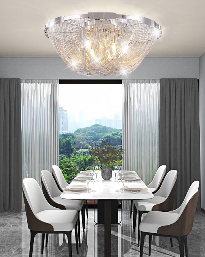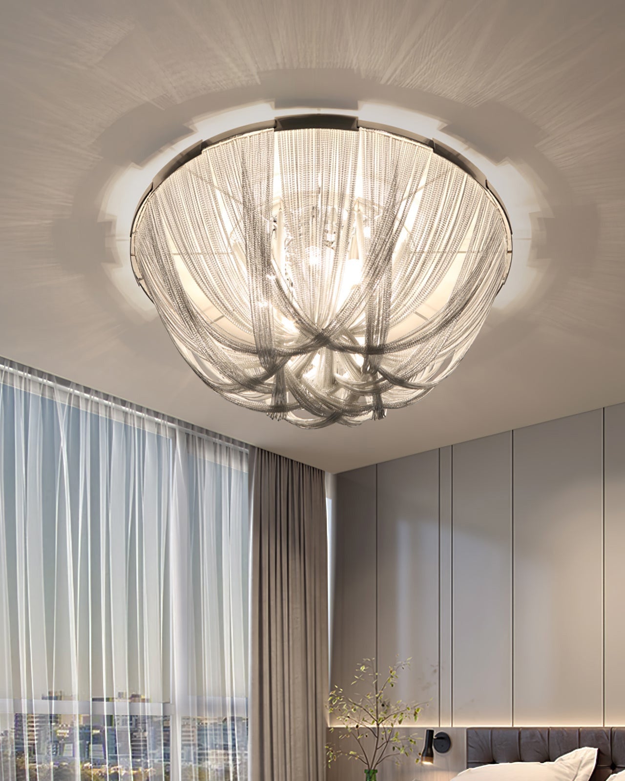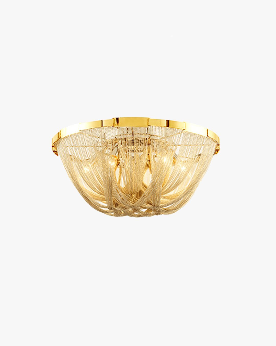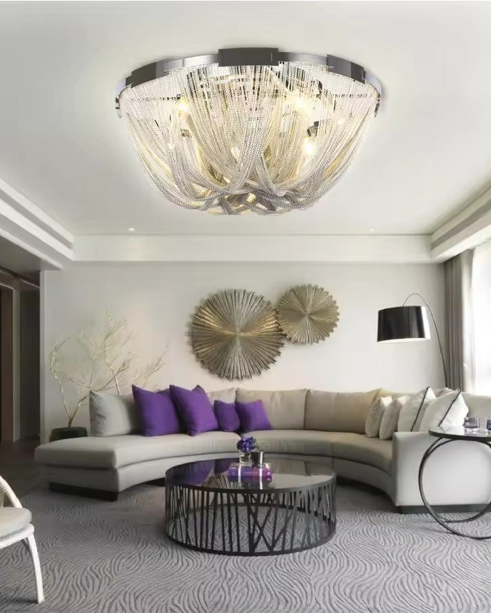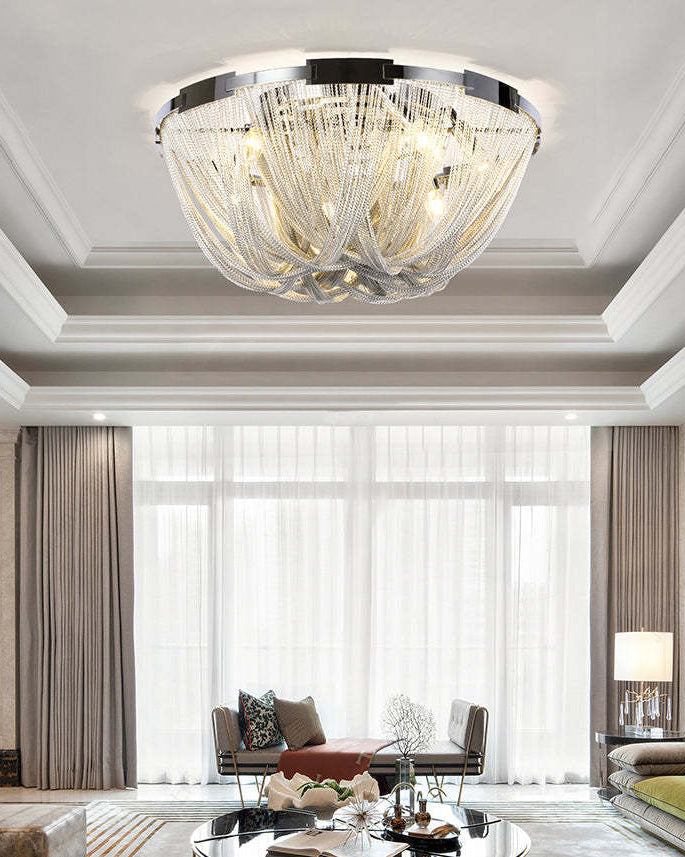 Bring a touch of luxury to your home with the WOMO Luxury Chain Tassel Ceiling Light. The Art Deco design and metal construction of this light fixture exude elegance and sophistication. The chrome and gold finish adds a glamorous touch to any bedroom or living room. Elevate your space with this stunning ceiling light!
