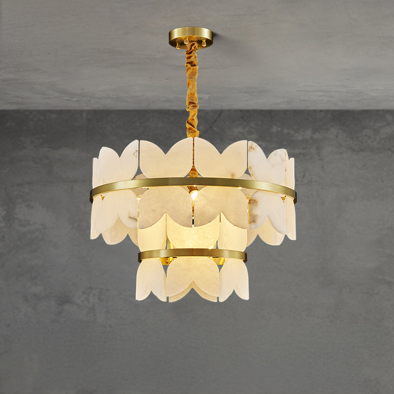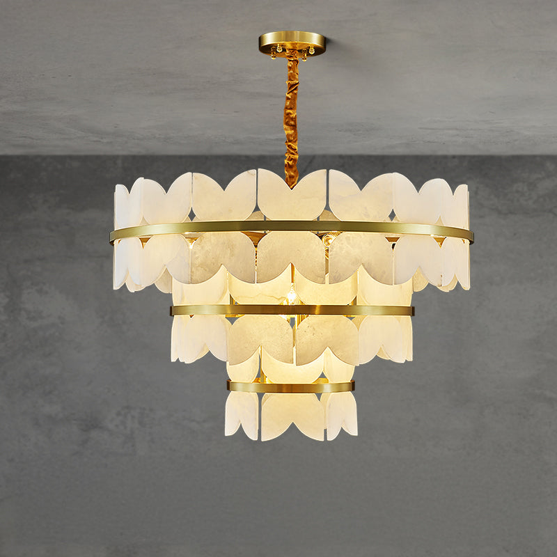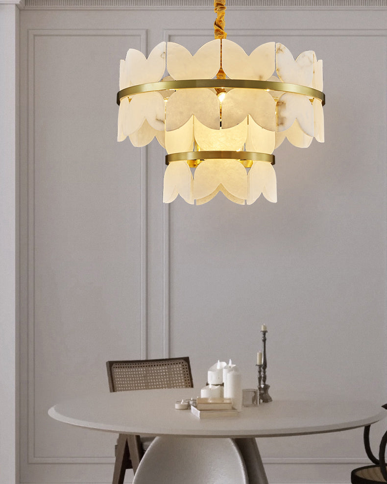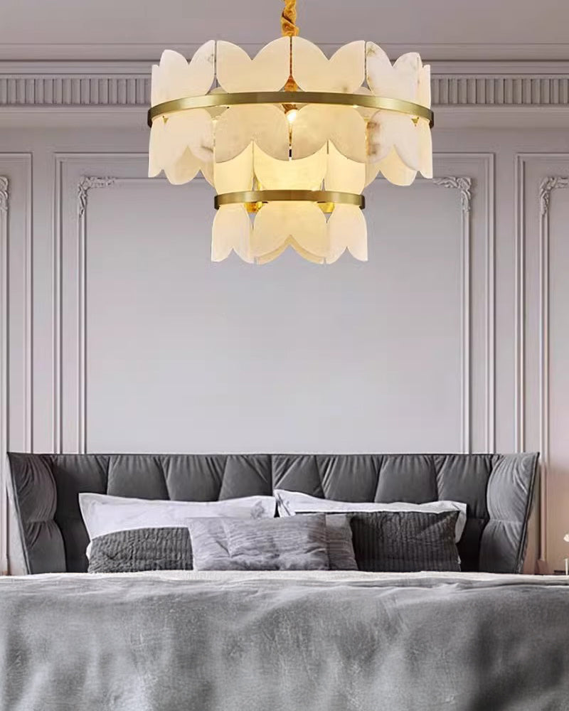 Elevate the elegance of your living and dining rooms with our WOMO Artistic Design Alabaster Chandelier-WM2851. The tiered design, crafted with luxurious alabaster and gold, adds a touch of Art Deco style to any space. Illuminate your home with sophistication and grace.