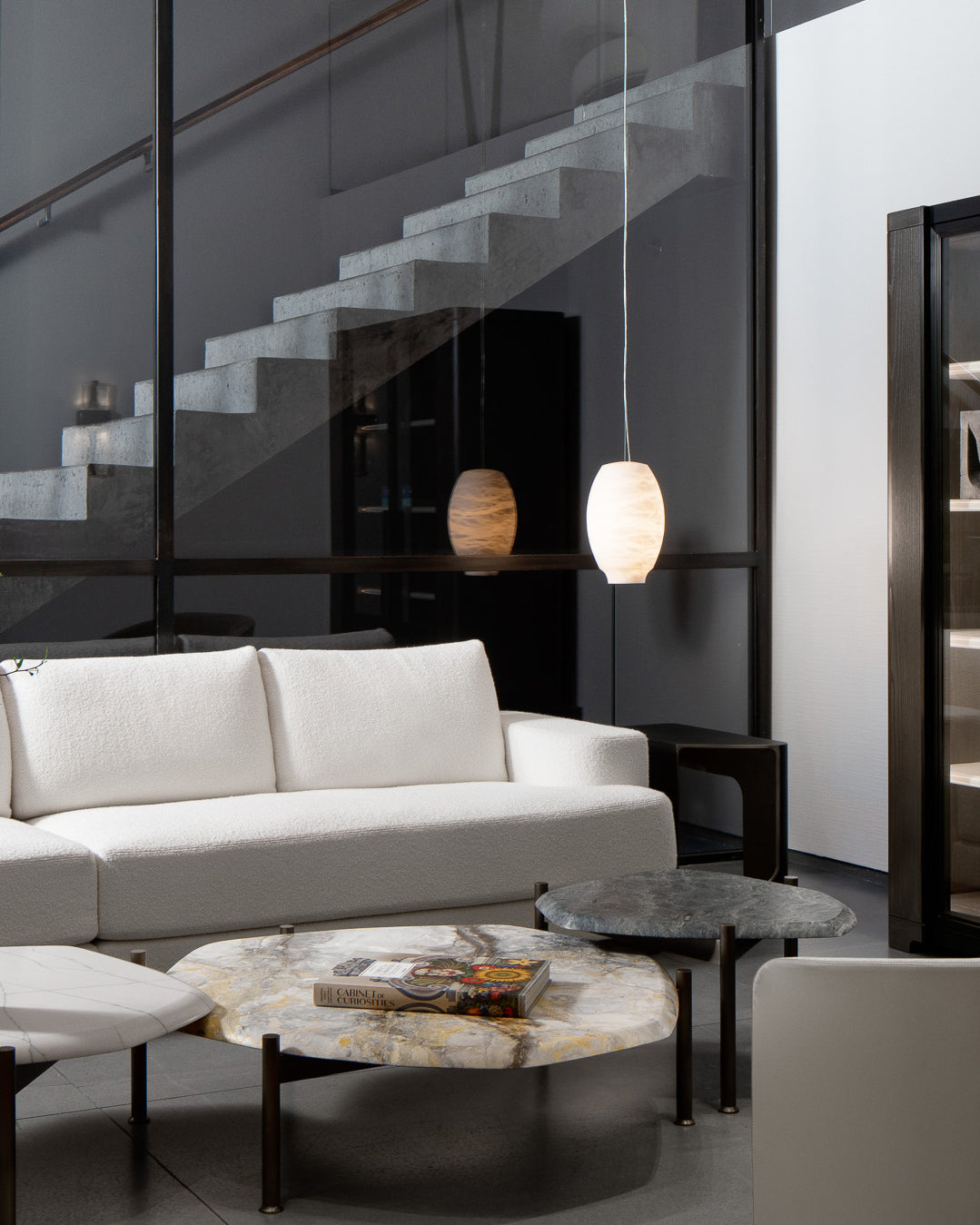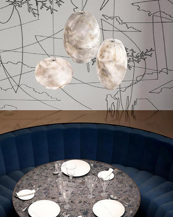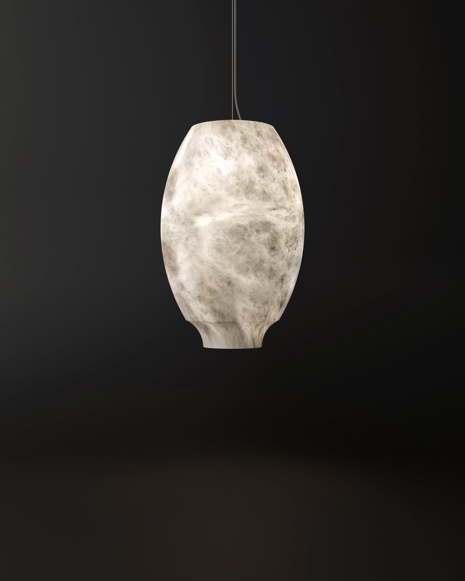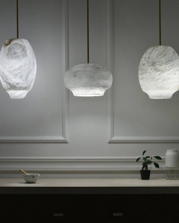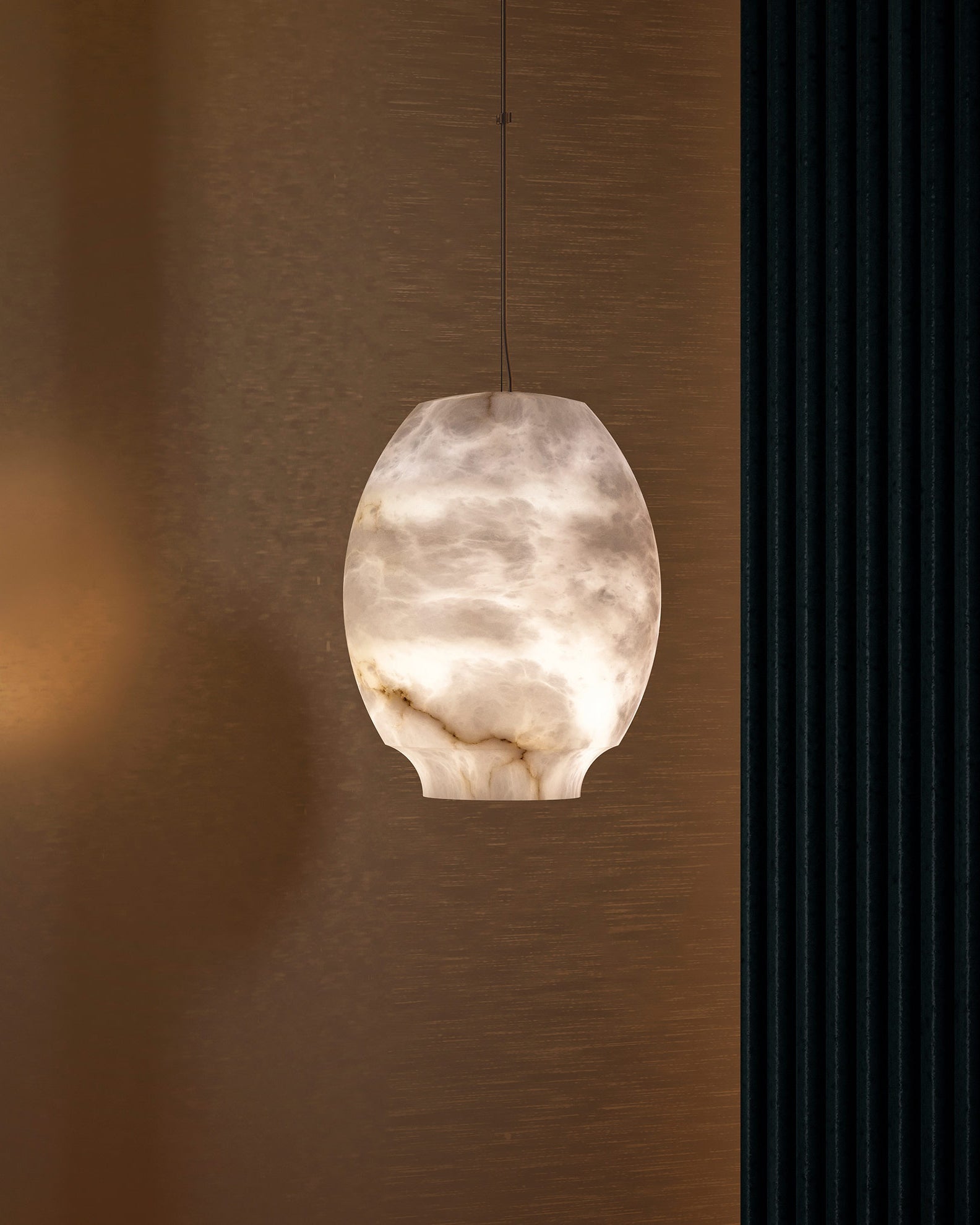 Elevate your space with the sleek and sophisticated WOMO Camille Pendant Light. Its contemporary design and luxurious gold finish add a touch of elegance to any dining room or bedroom. The alabaster shade provides a warm and inviting glow, making it the perfect addition to your home. Upgrade your lighting game with this stunning pendant light!
