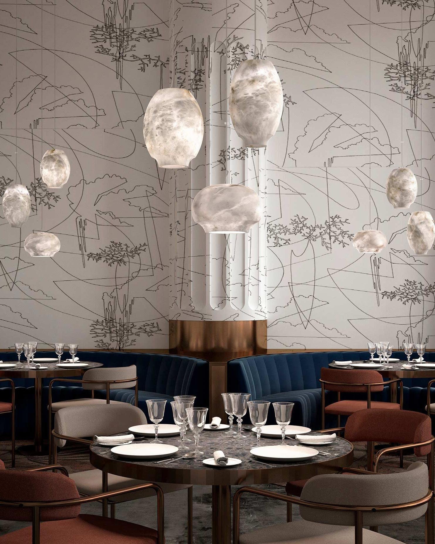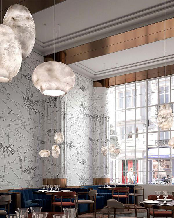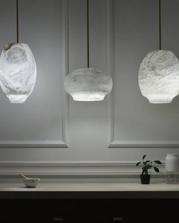 Elevate your dining room with the contemporary and luxurious WOMO Camille Alabaster Pendant Light. Crafted with gold accents, this pendant light adds a touch of elegance to any space. The alabaster shade creates a warm and inviting ambiance, perfect for entertaining guests. Bring sophistication and style to your home with this stunning pendant light.