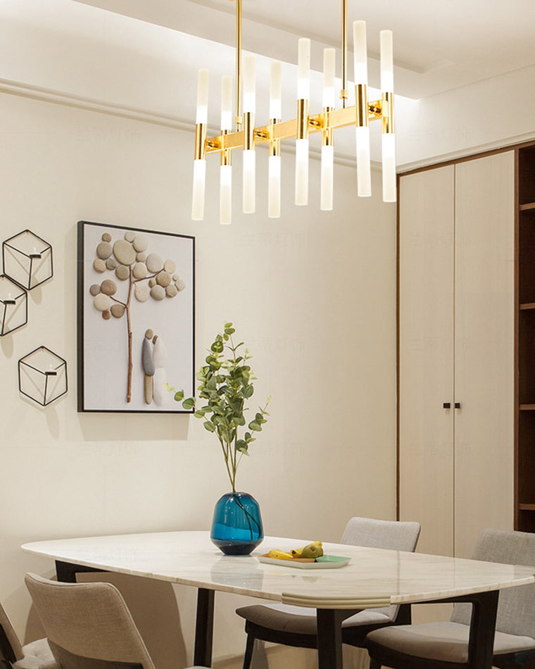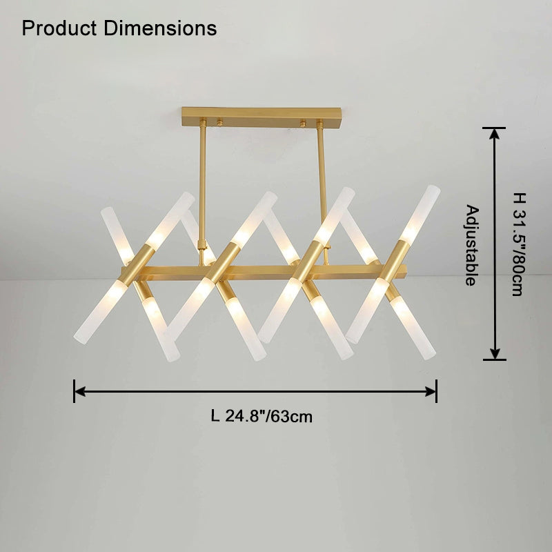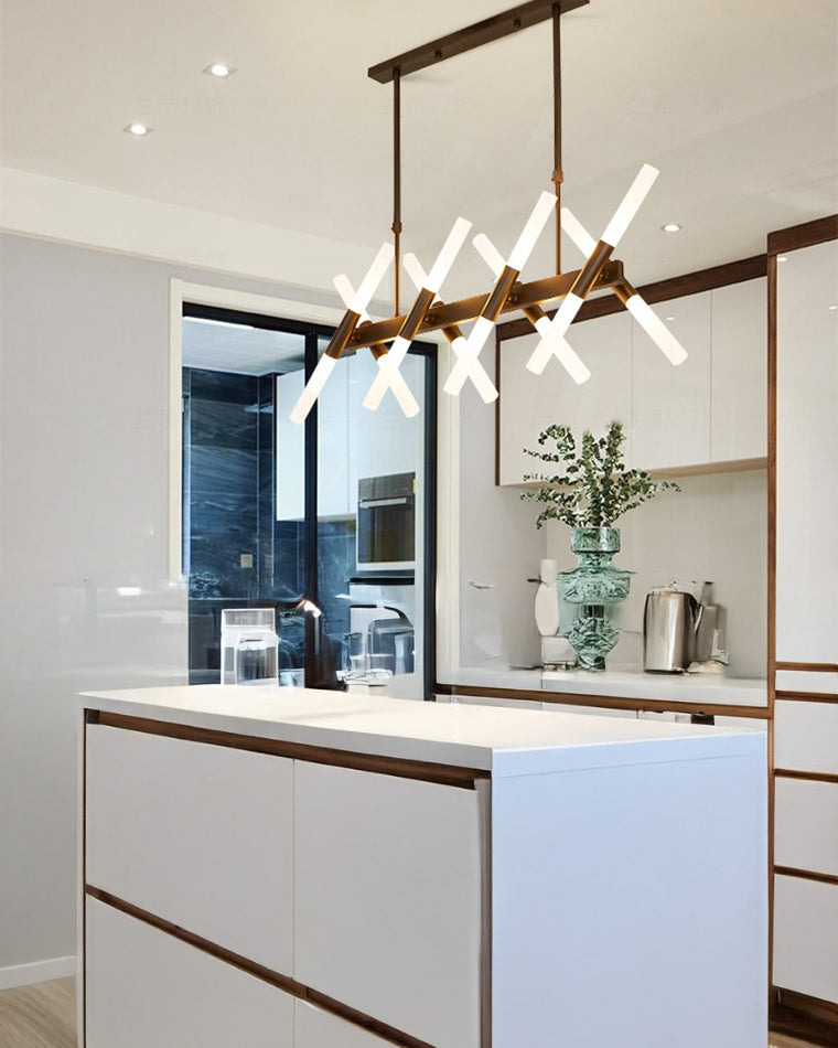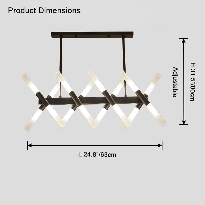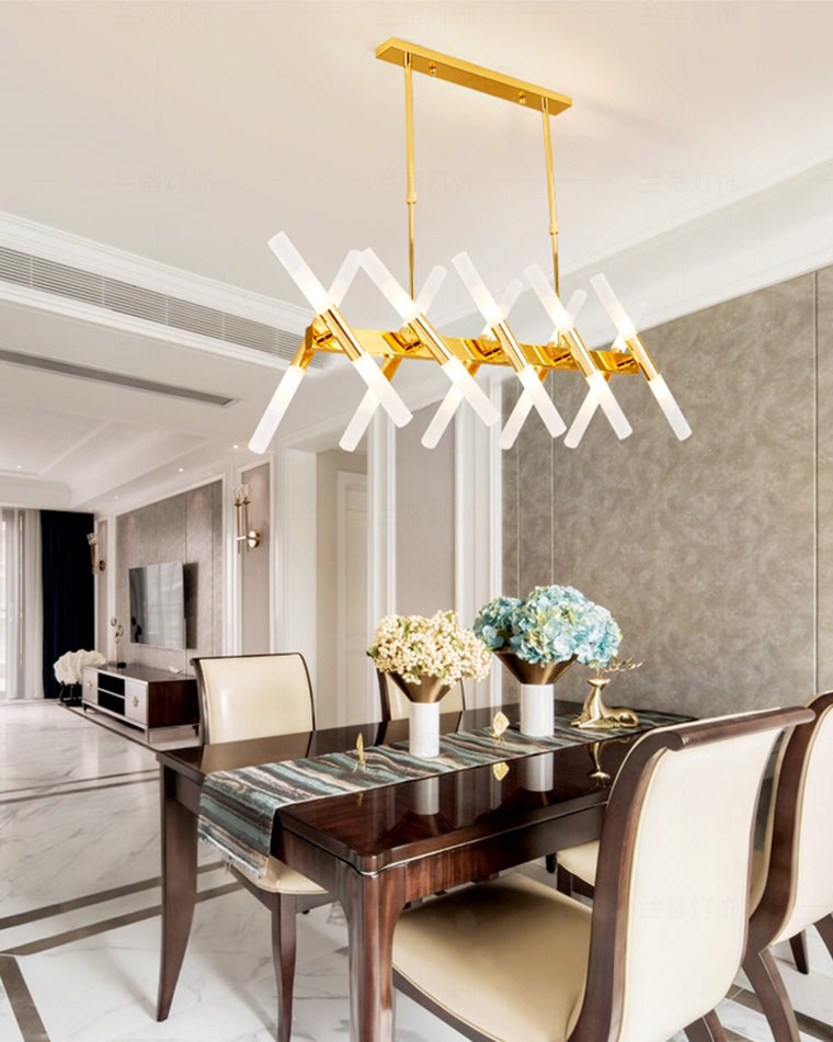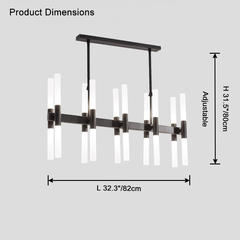 Transform your dining room or kitchen with the sleek and modern design of the WOMO candle linear Chandelier. Crafted from black and gold metal, this chandelier adds a touch of elegance to any space. Its unique candle design creates a stunning visual that will impress your guests and elevate your decor.