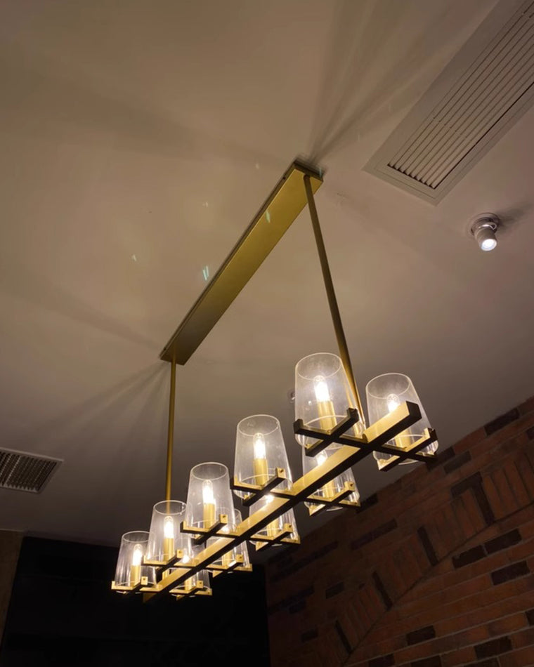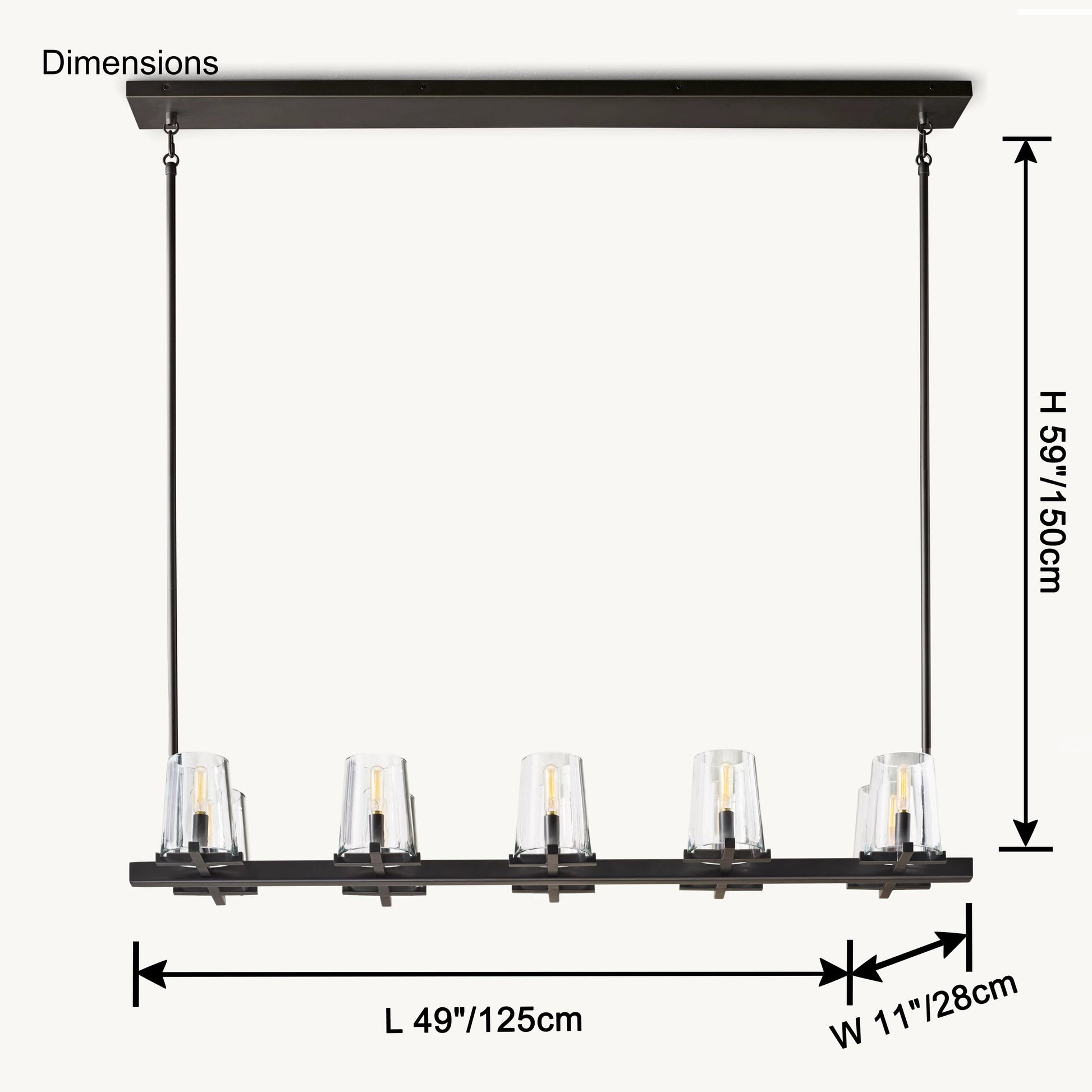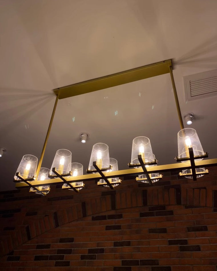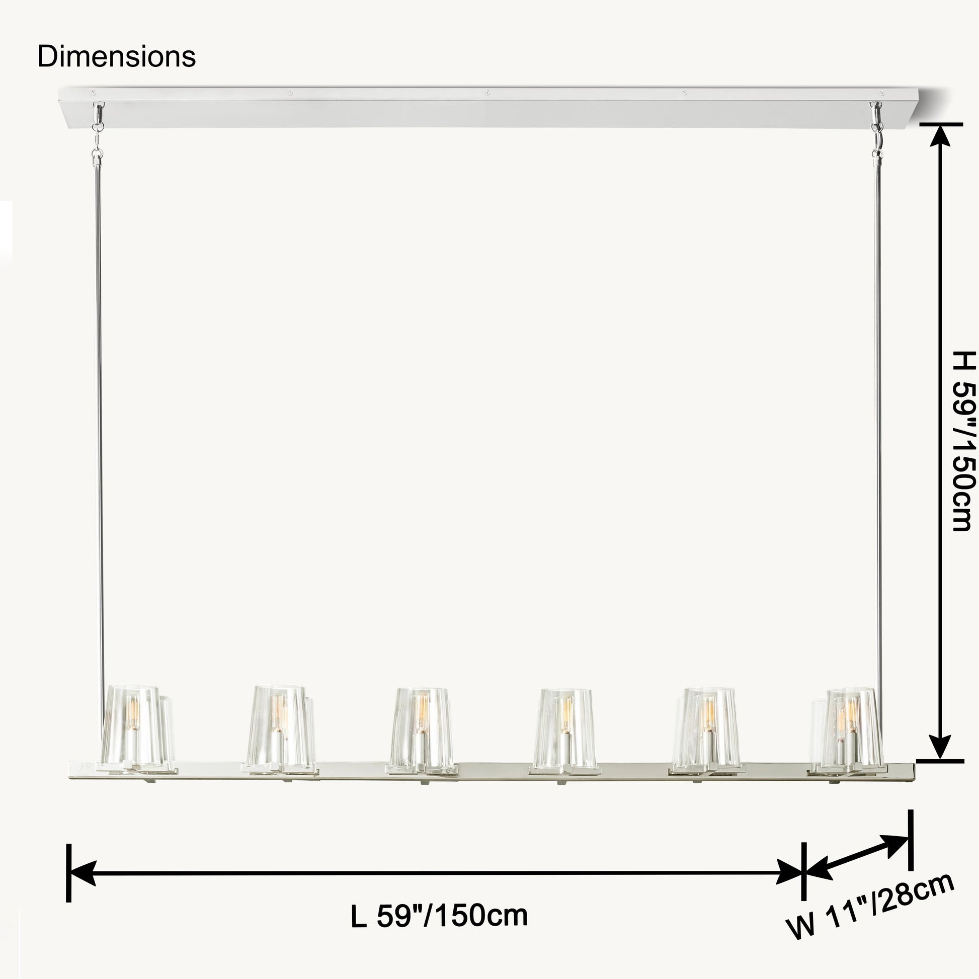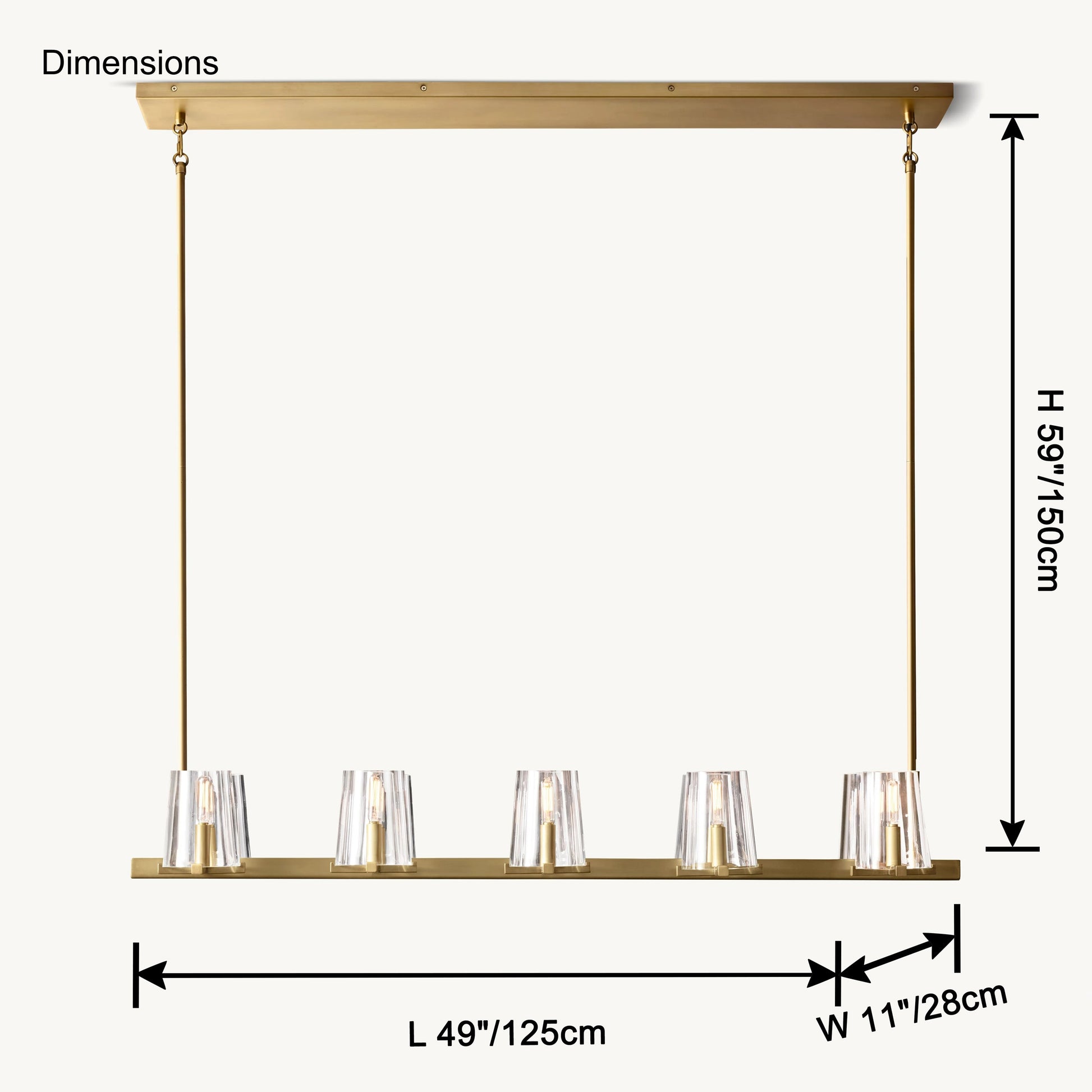 Elevate your dining room with our stunning WOMO Glass Pillar Candle Linear Chandelier. Embodying Art Deco style and available in gold, silver, or black, this chandelier features linear design and elegant glass detailing. Create a warm and inviting ambiance with the glow of pillar candles.