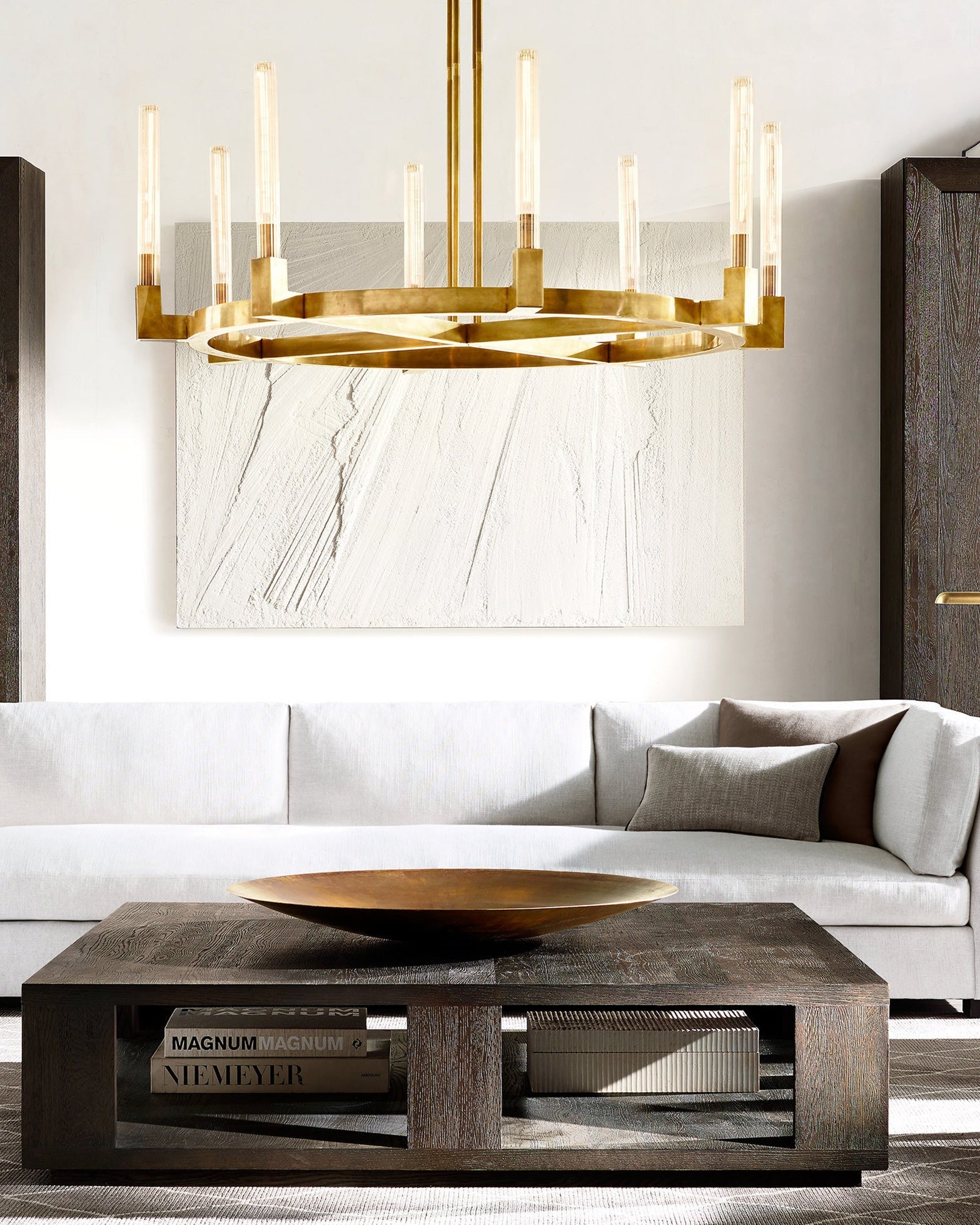 Upgrade your home decor with the WOMO Modern Round Metal Chandelier-WM2815. Perfect for dining or living rooms, this circular chandelier adds elegance and style to any space. Made with high-quality metal in silver, brass, and black finishes, it provides a sophisticated and versatile lighting option.