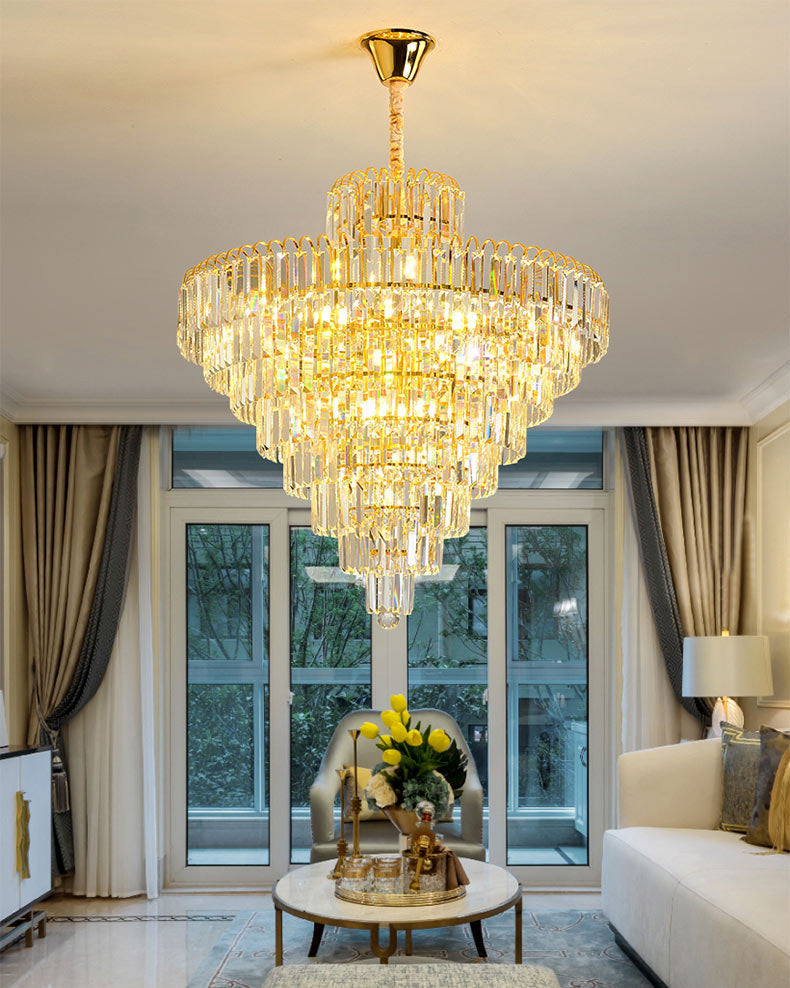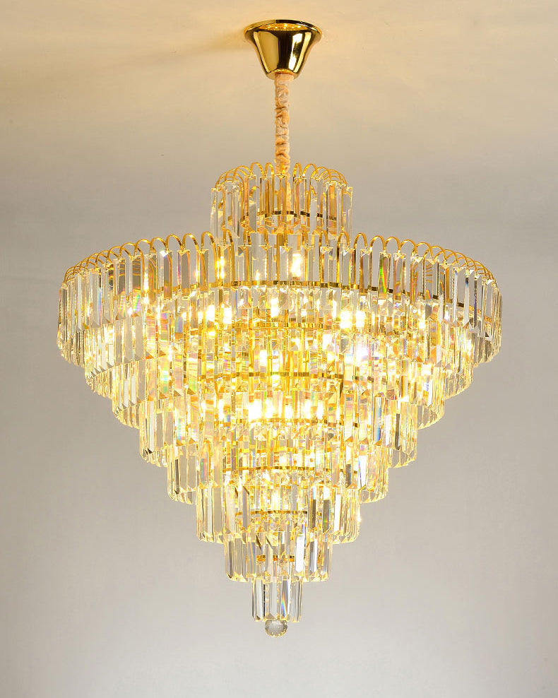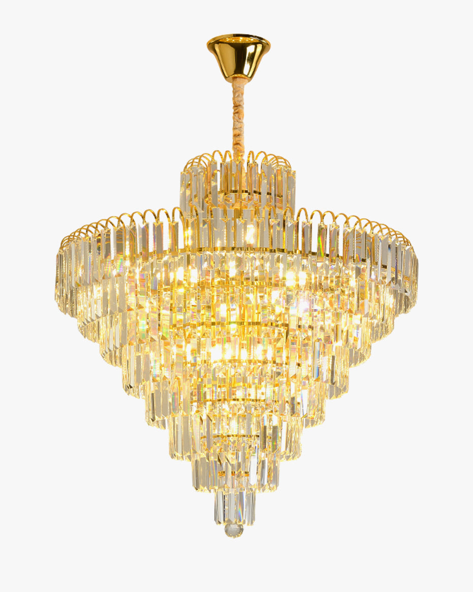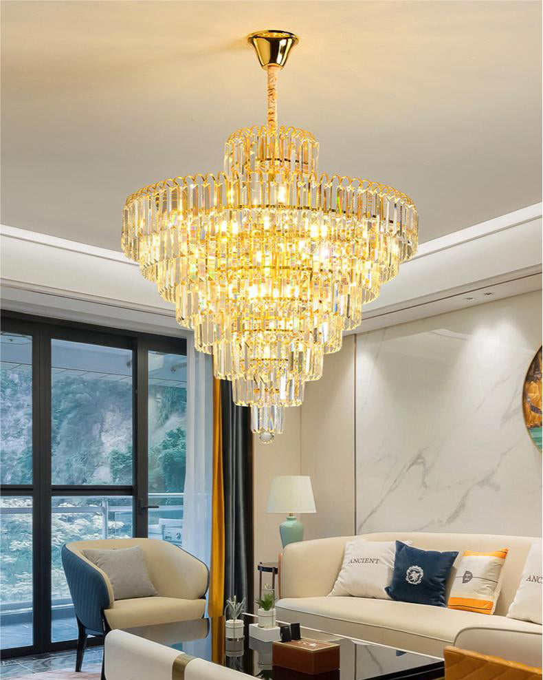 Transform your living room into a glamorous space with our WOMO Cascading Crystal Chandelier-WM2917. Adorned with sparkling crystals and a luxurious gold finish, this tiered Art Deco chandelier adds a touch of elegance to any room. Experience the beauty and charm of cascading light, perfect for creating a stunning visual display.