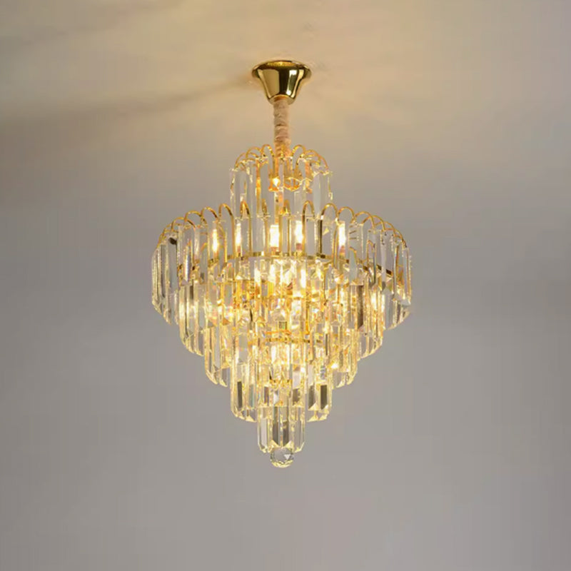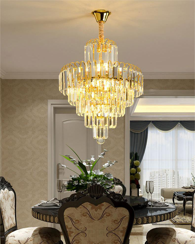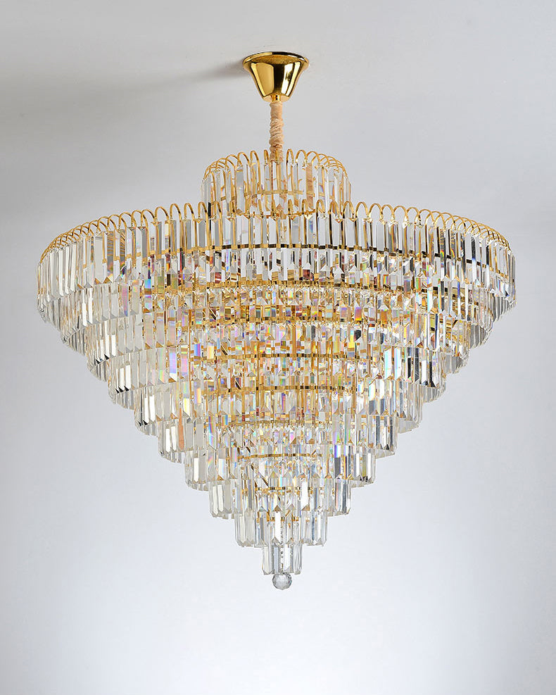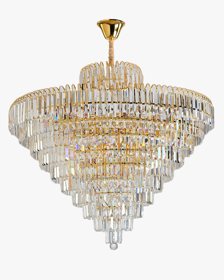 Transform your living room into a glamorous space with our WOMO Cascading Crystal Chandelier-WM2917. Adorned with sparkling crystals and a luxurious gold finish, this tiered Art Deco chandelier adds a touch of elegance to any room. Experience the beauty and charm of cascading light, perfect for creating a stunning visual display.