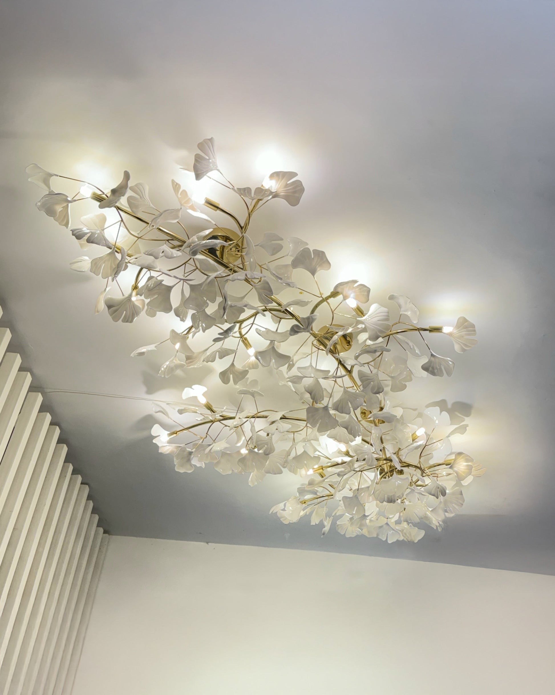 Introduce a touch of natural elegance to your home with our WOMO Modern Ceramic Gingko Ceiling Light! The unique gingko design, paired with the luxurious and gold finish, makes a bold statement in any room. Elevate your living room, kitchen, or bedroom with this stunning piece.
