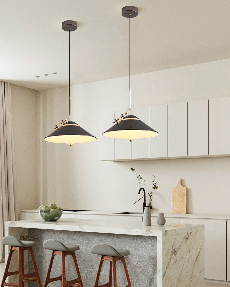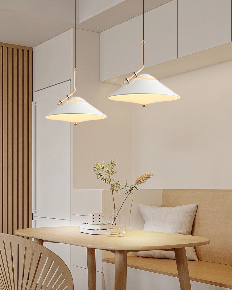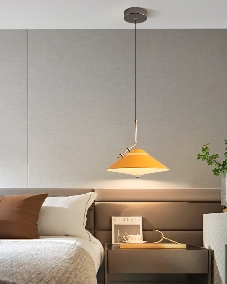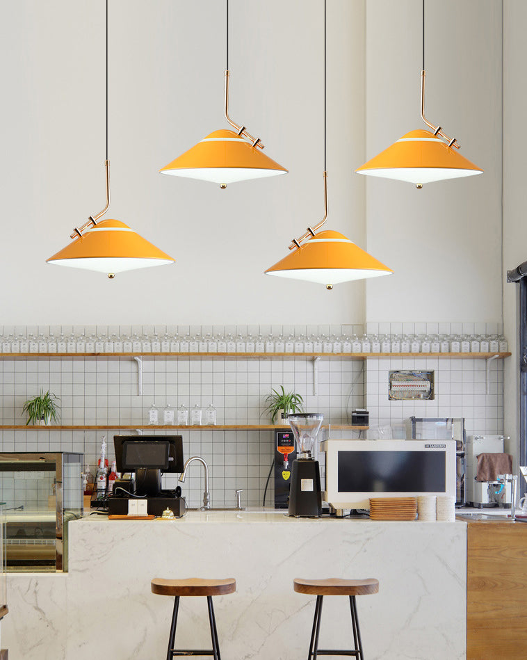 Experience modern elegance with the WOMO Cone Pendant Light. Made of sleek metal, this pendant light adds a contemporary touch to any room. The cone-shaped shade comes in bold colors of red, yellow, green, black, and white, adding a pop of vibrancy to your dining room. Elevate your space with this stylish and versatile piece!