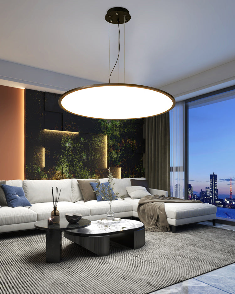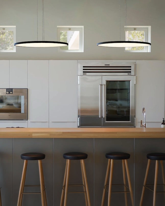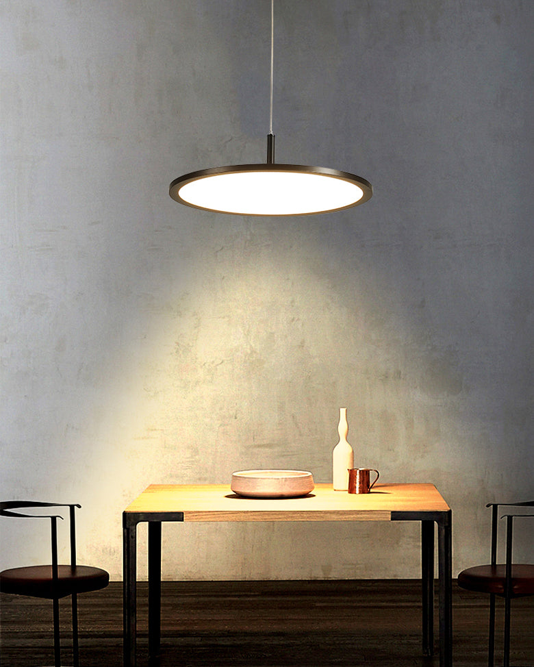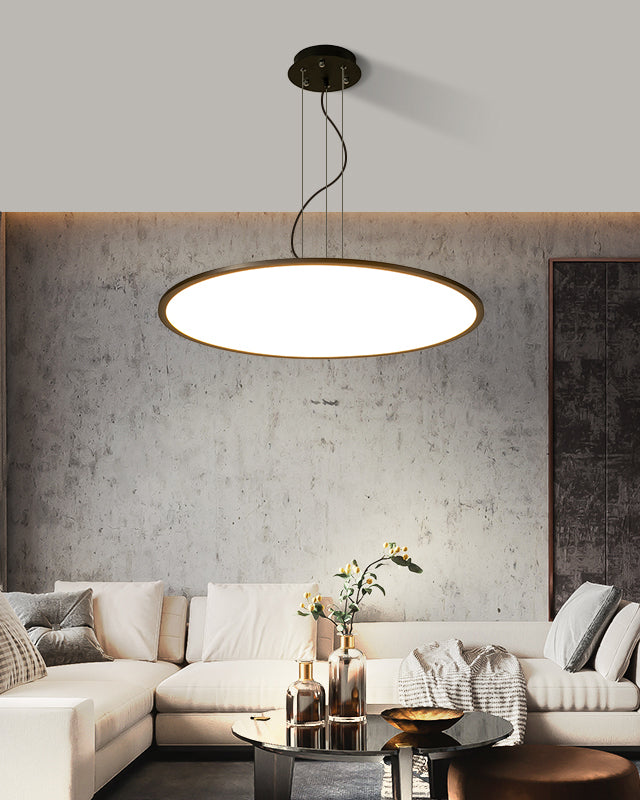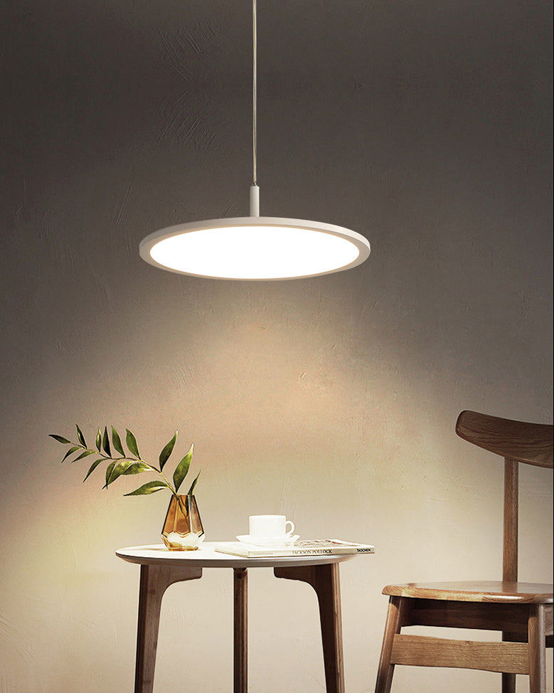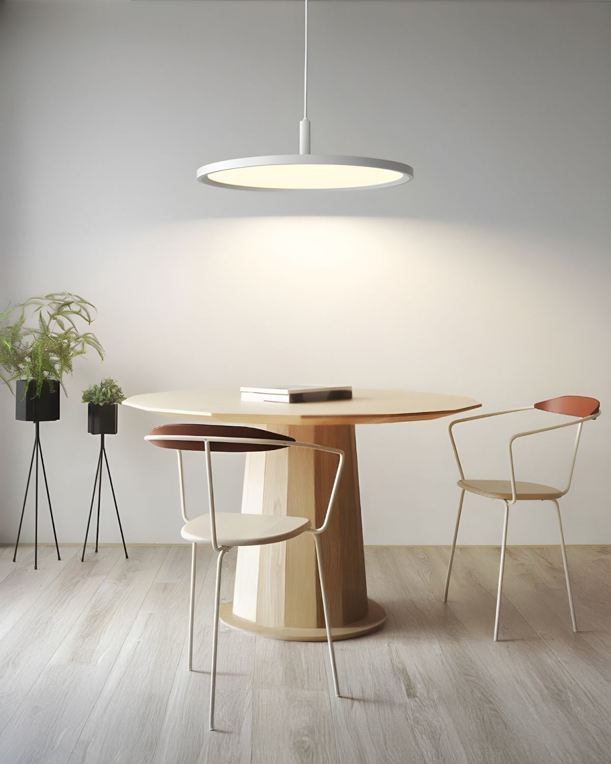 Introducing the WOMO Round Thin Led Pendant Light. This minimalist yet sleek design features a metal frame in black or white, perfect for adding a touch of elegance to any dining room. The round shape adds a modern twist while providing ample lighting. Elevate your dining experience with this must-have pendant light!