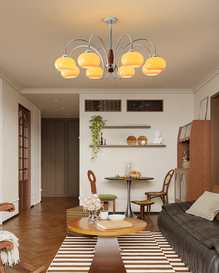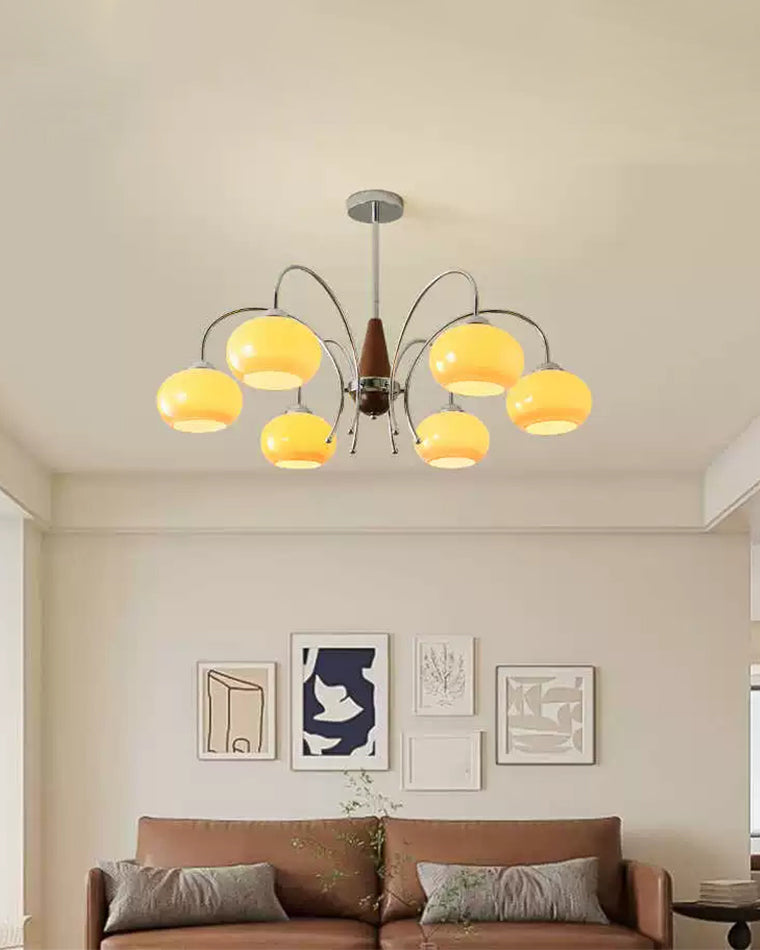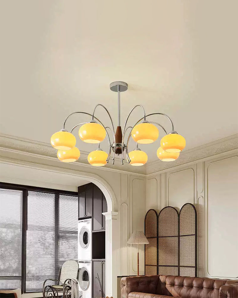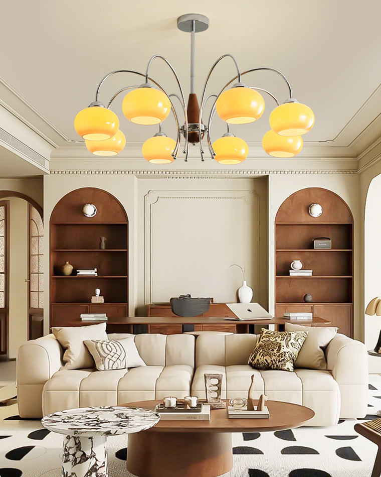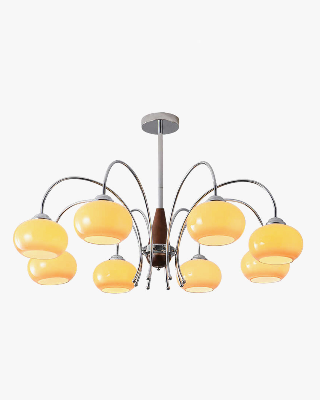 Upgrade your living room or bedroom with the striking WOMO Dome Glass Shaded Chandelier-WM2943. Featuring a sleek mid-century modern design, this chandelier adds a touch of sophistication to any space. The silver finish and glass dome create a warm and inviting ambiance for a cozy night in.