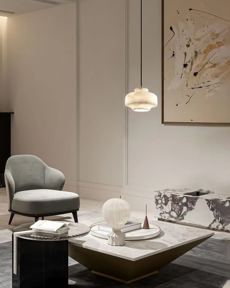 Transform your space with the exquisite beauty of our WOMO Modern Personality Alabaster Pendant Light-WM2841. Made of luxurious alabaster, this pendant light is perfect for both dining and living rooms, adding a touch of elegance and warmth with its gold accents. Elevate your kitchen and create a stunning ambiance with this must-have piece.