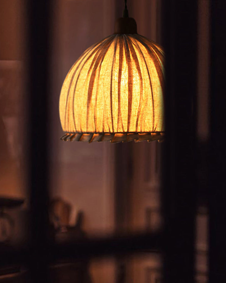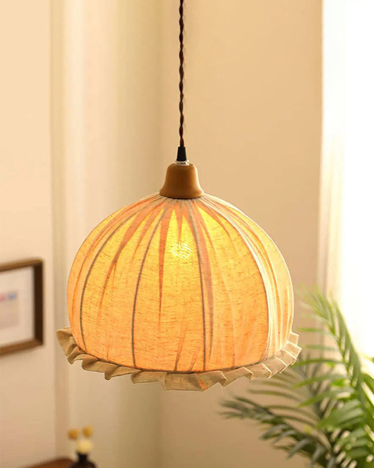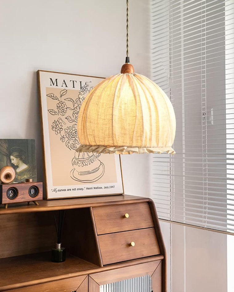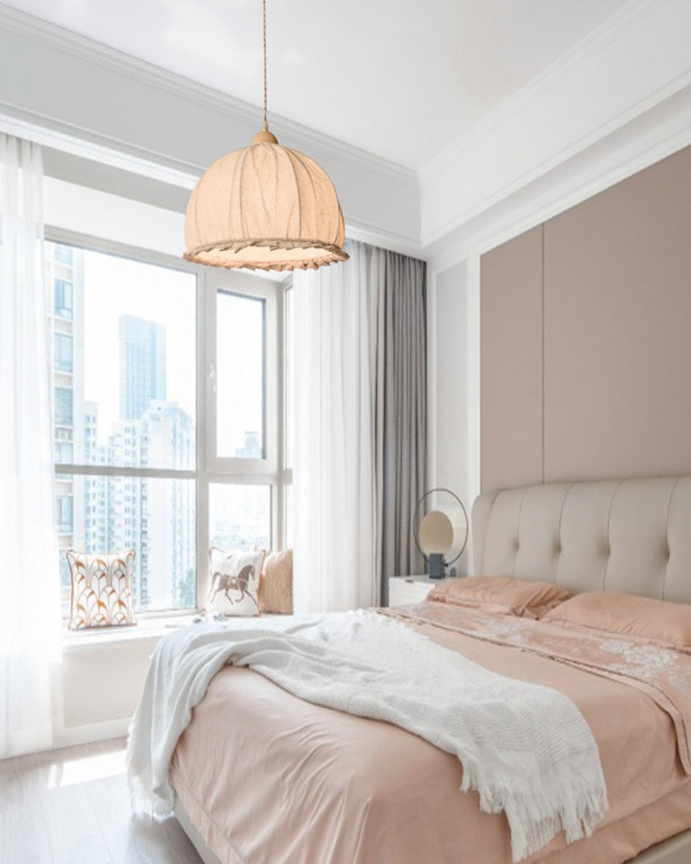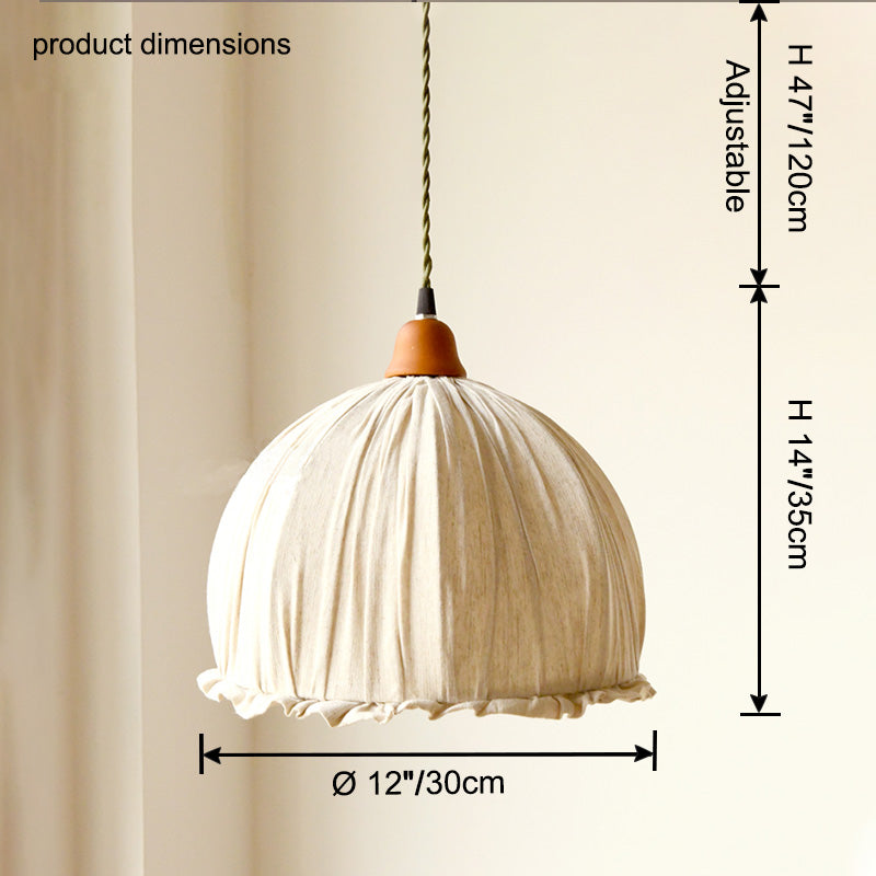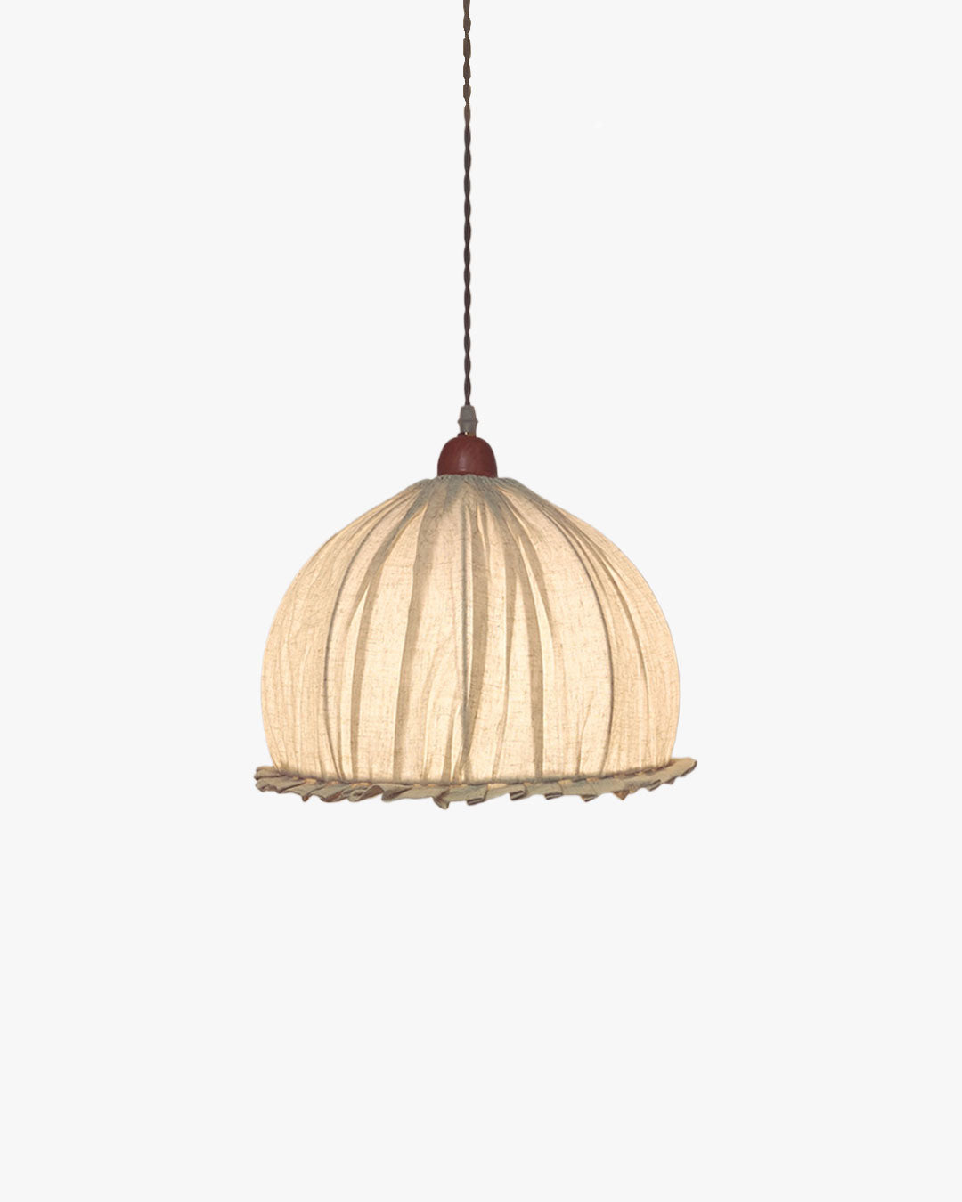 Elevate your dining room with the WOMO Fabric Dome Pendant Light. Inspired by Japandi design, this light features a fabric dome in white, beige, and green. Experience the perfect balance of minimalist elegance and natural warmth. Get yours now!