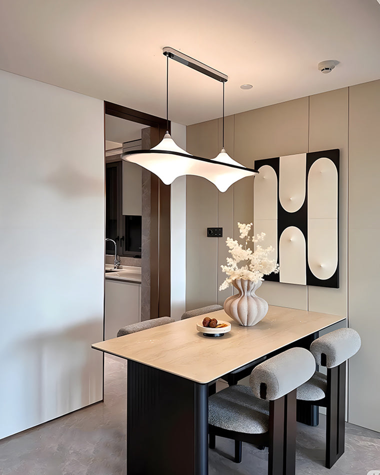 Elevate your home decor with the sleek and modern WOMO Mid Century Acrylic Chandelier. Perfect for dining rooms and kitchens, this statement piece features elegant black acrylic accents that add a touch of sophistication to any space. Make a bold statement with this eye-catching chandelier!