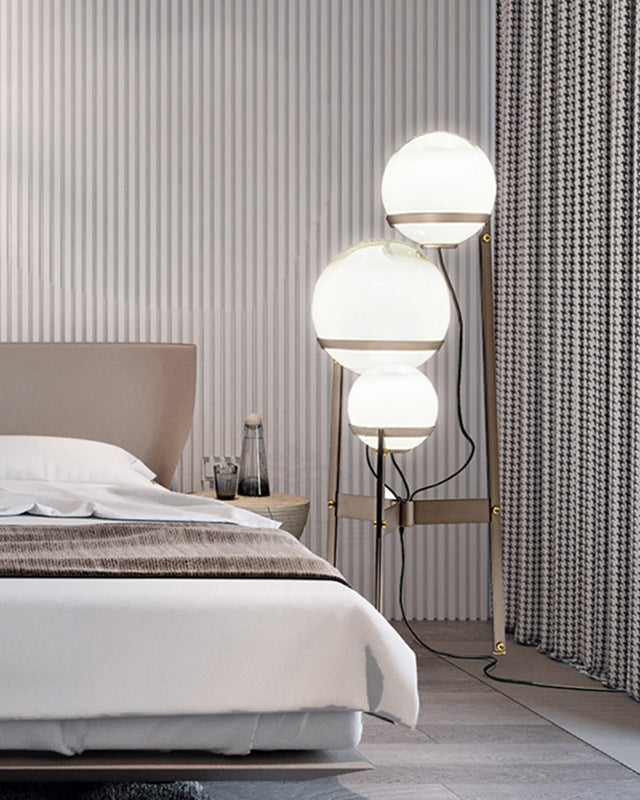 Introducing the WOMO Bubble Floor Lamp - the perfect modern addition to your living room or bedroom! Made with sleek metal and delicate glass bubbles, this lamp will add a touch of elegance and warmth to any space. Light up your home with a subtle and luxurious golden glow.