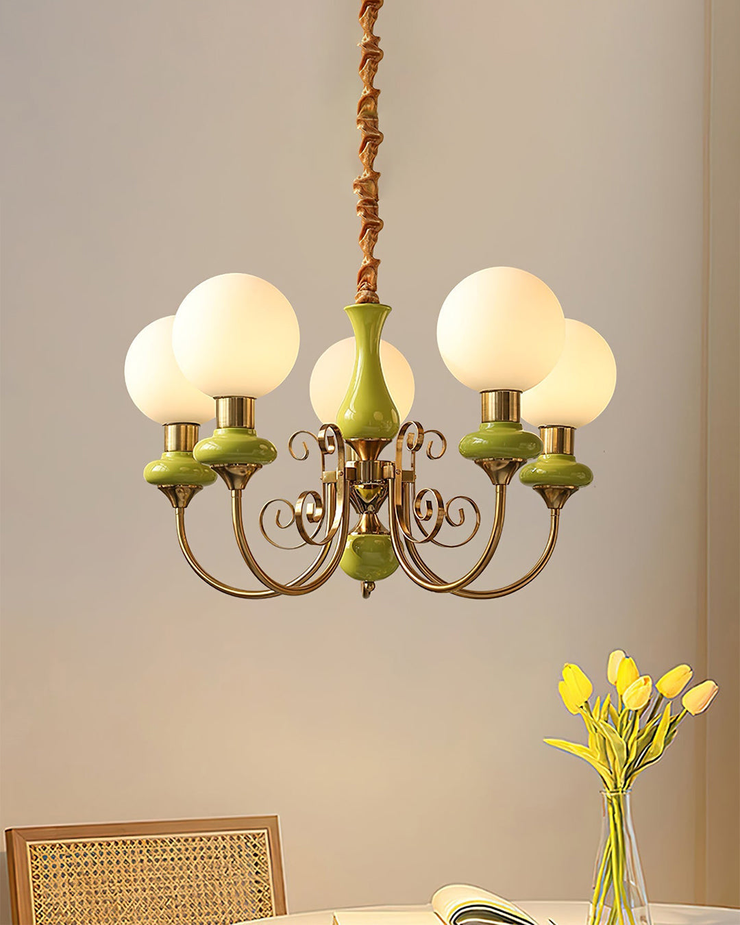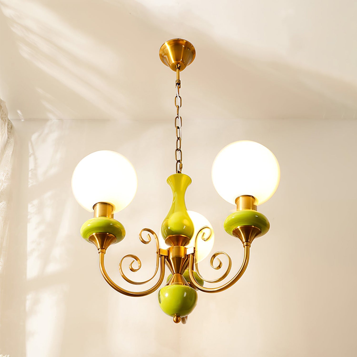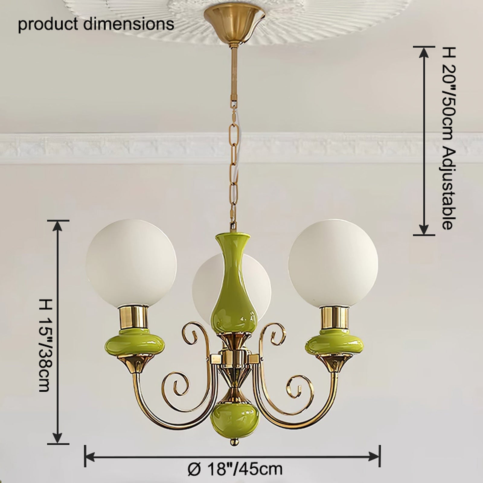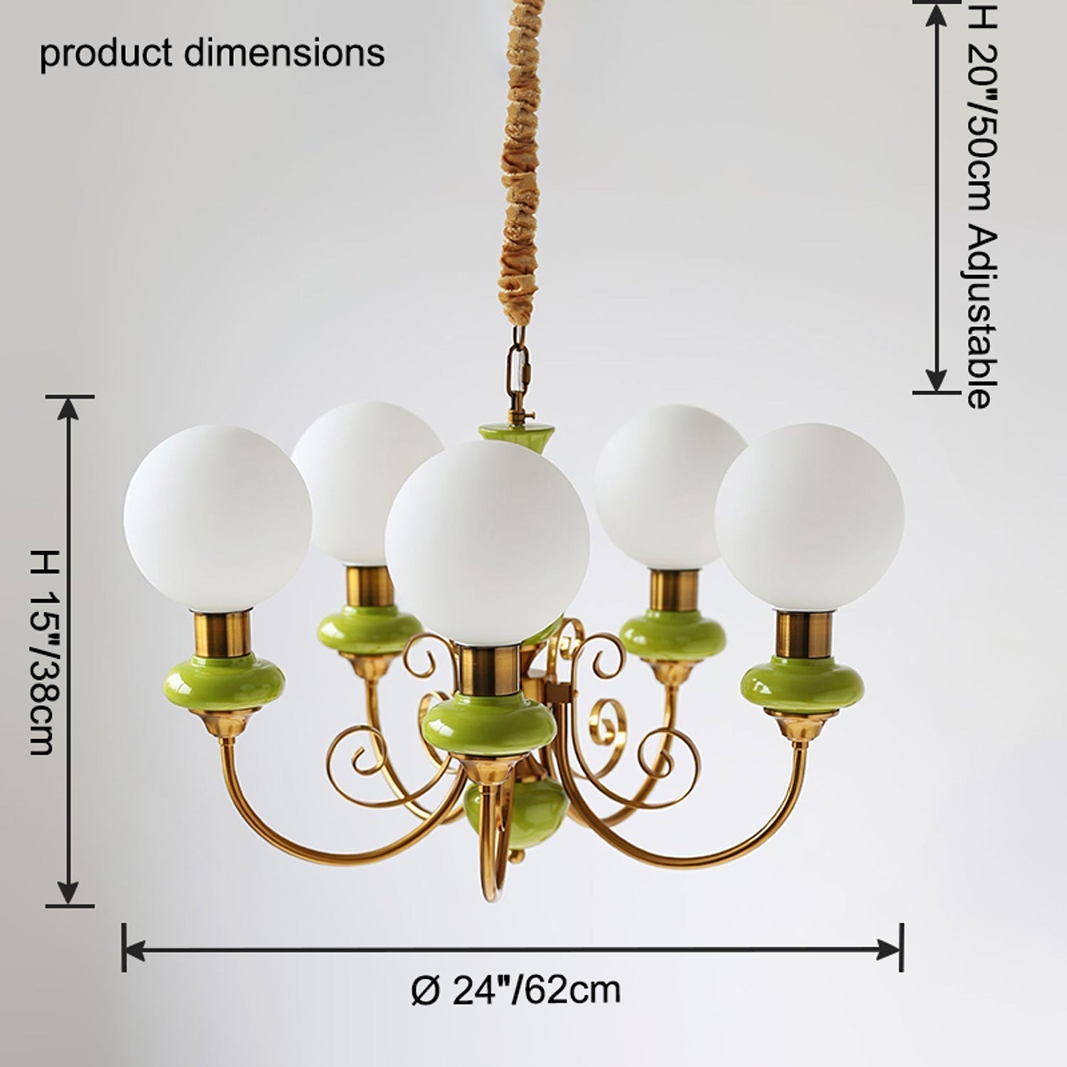 Add a touch of French elegance to your home with our WOMO Glass Globe Arm Chandelier. Made of sturdy metal and beautiful glass, this chandelier will elevate any dining or living room decor. The sleek globe design in a vibrant green color will bring a fresh and modern feel to your space.