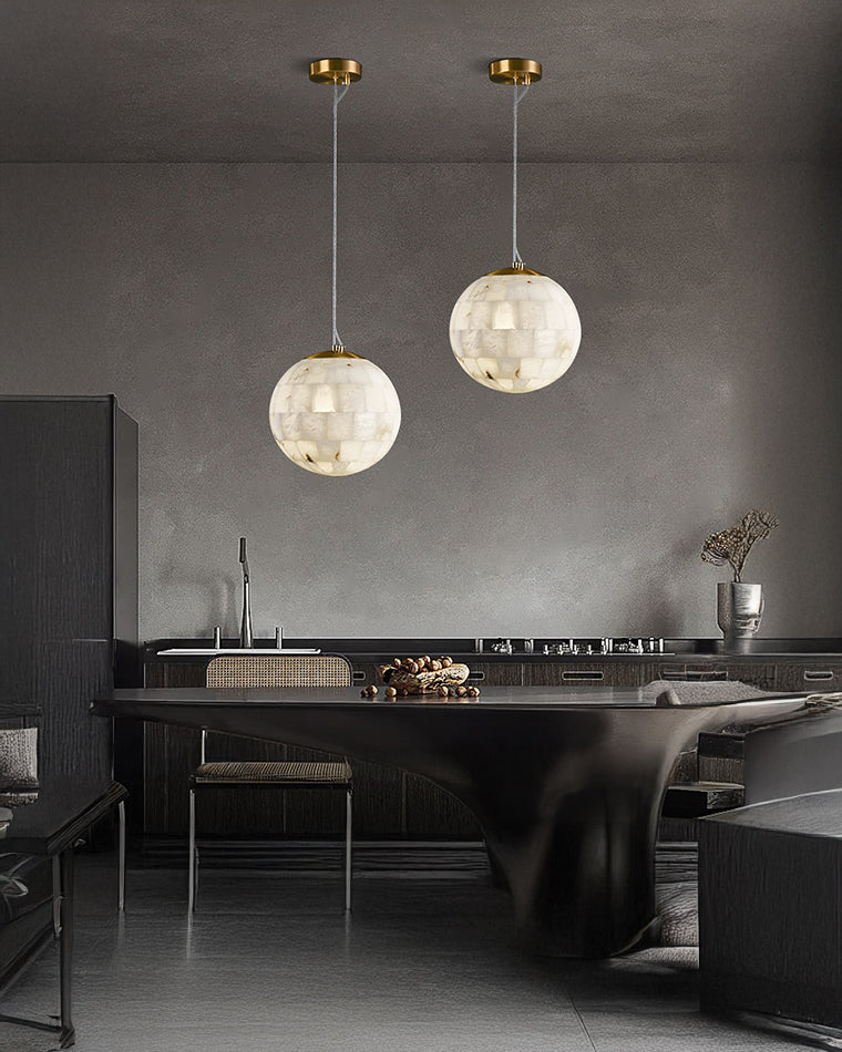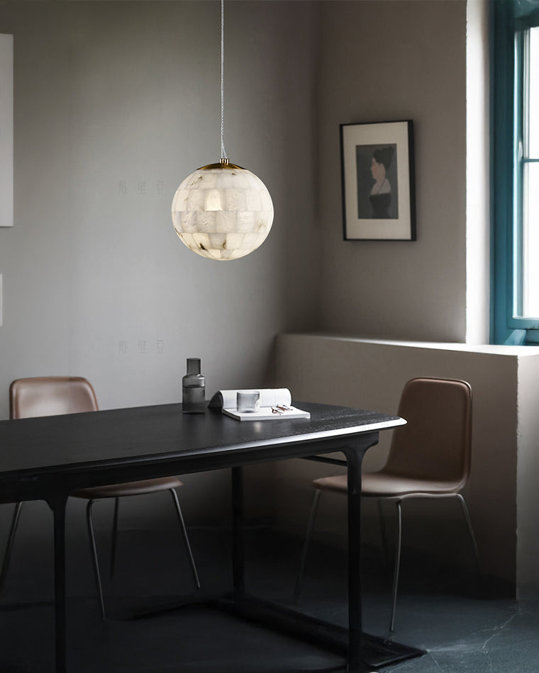 Elevate your dining room or kitchen with the stunning WOMO Modern Globe White Alabaster Pendant Light! The elegant globe design and crisp white alabaster material add a touch of sophistication to any space. Make a statement with this must-have fixture that will enhance the ambience of your home.
