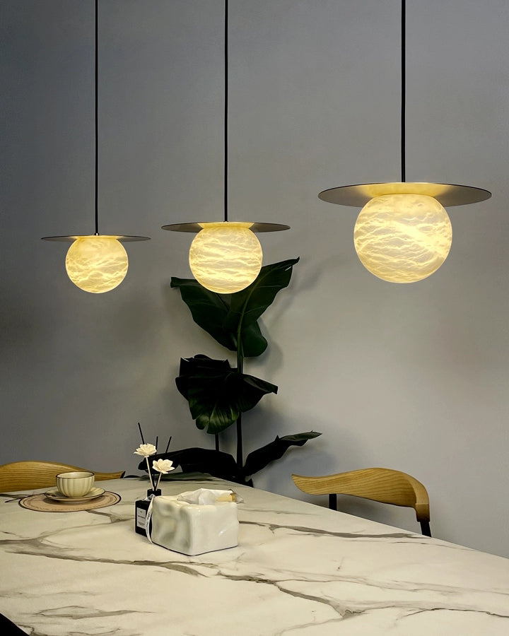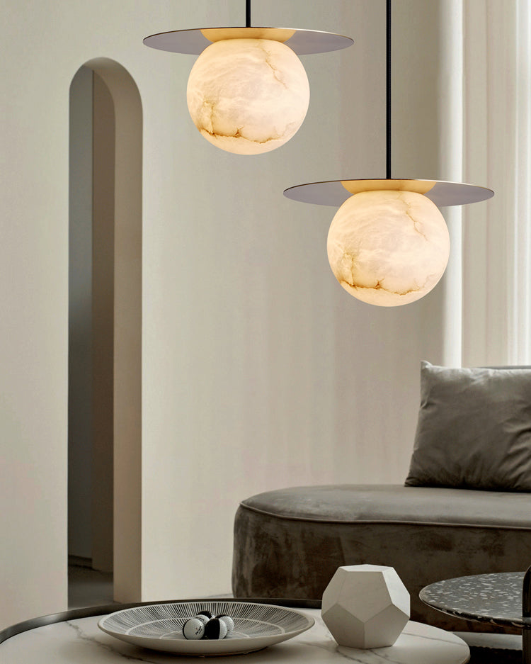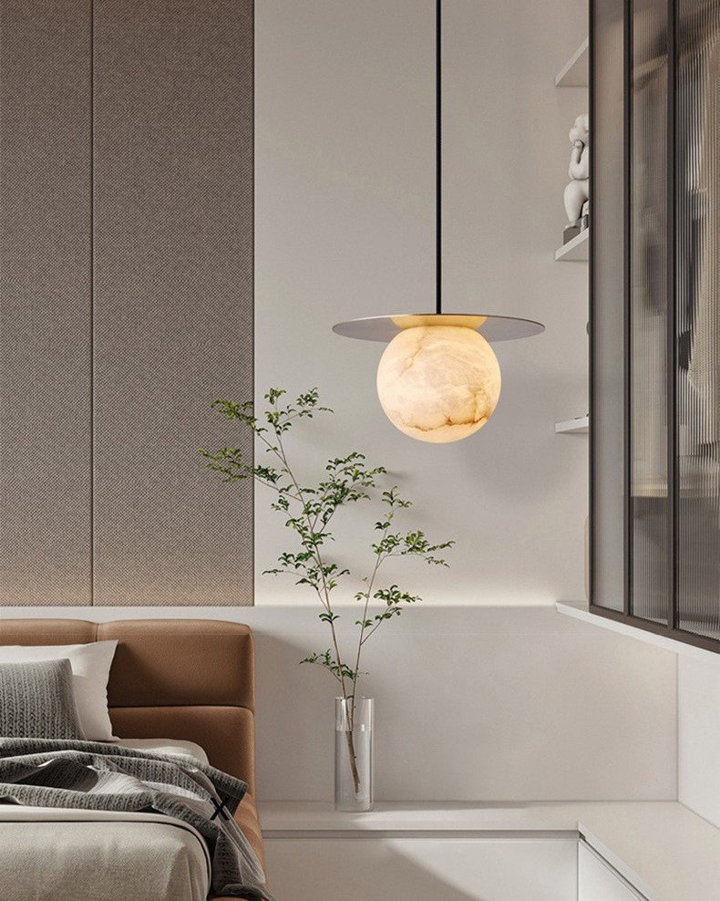 WOMO Disc Globe Alabaster Pendant Light-WM2836