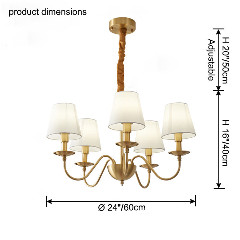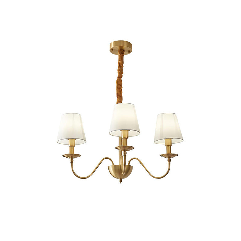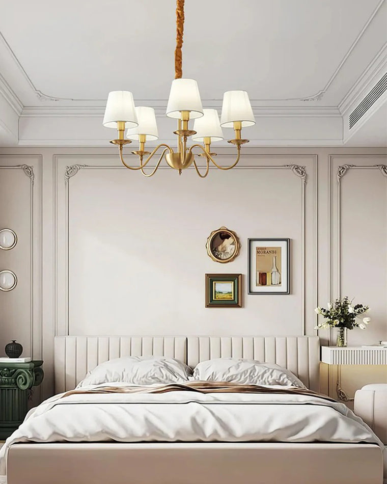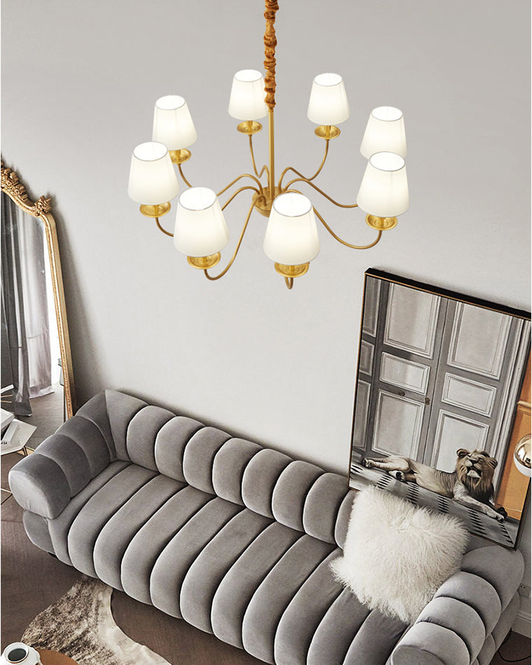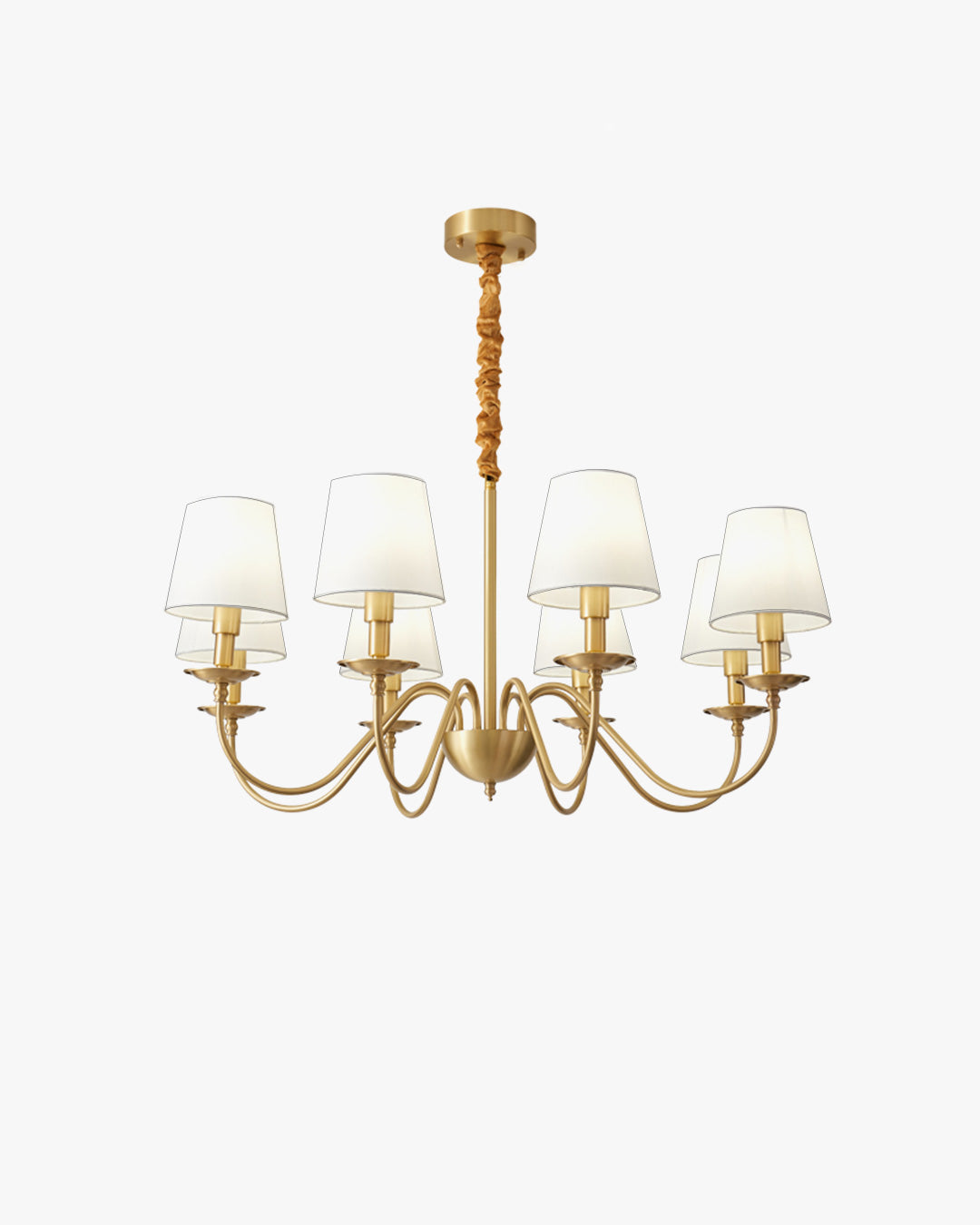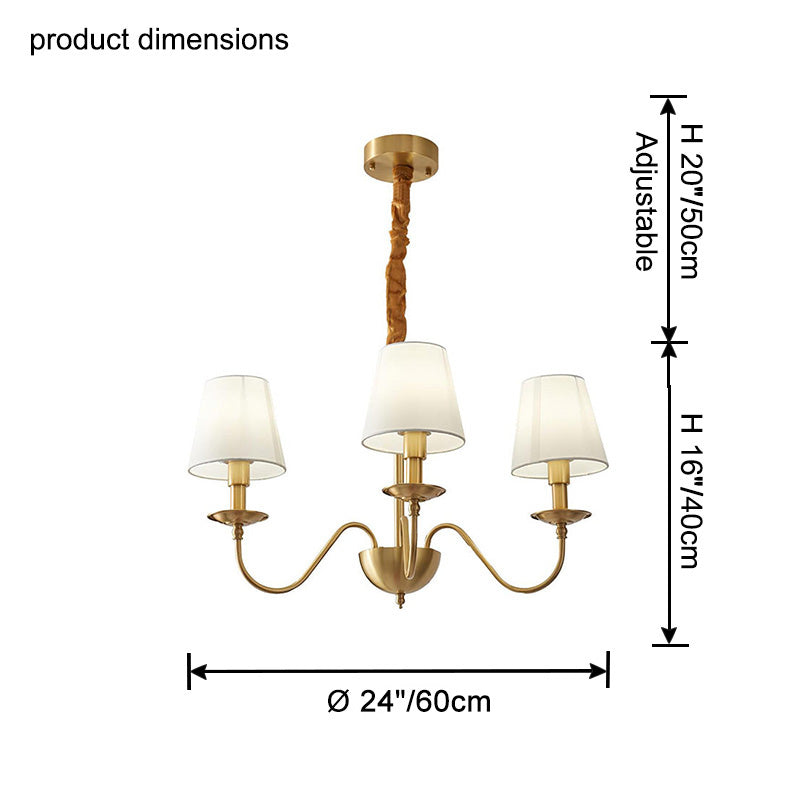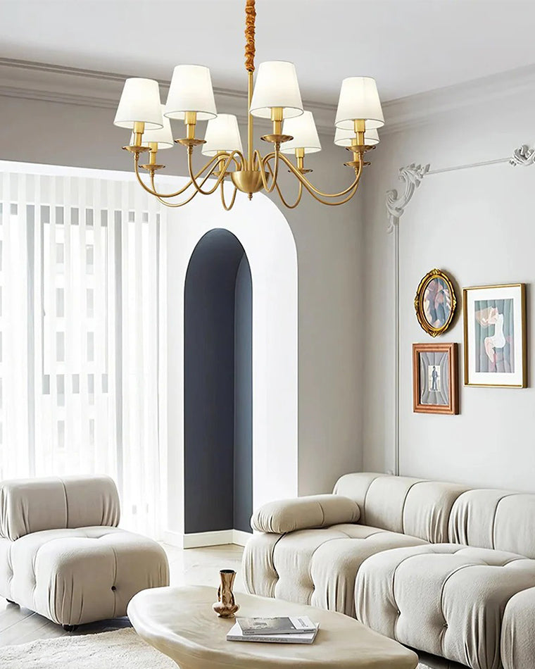 Transform your living room or bedroom into a vintage-inspired oasis with the WOMO Vintage Fabric Arm Chandelier-WM2951. The elegant gold finish and soft fabric shades add a touch of luxury and warmth to any space. Illuminate your home with style and charm!