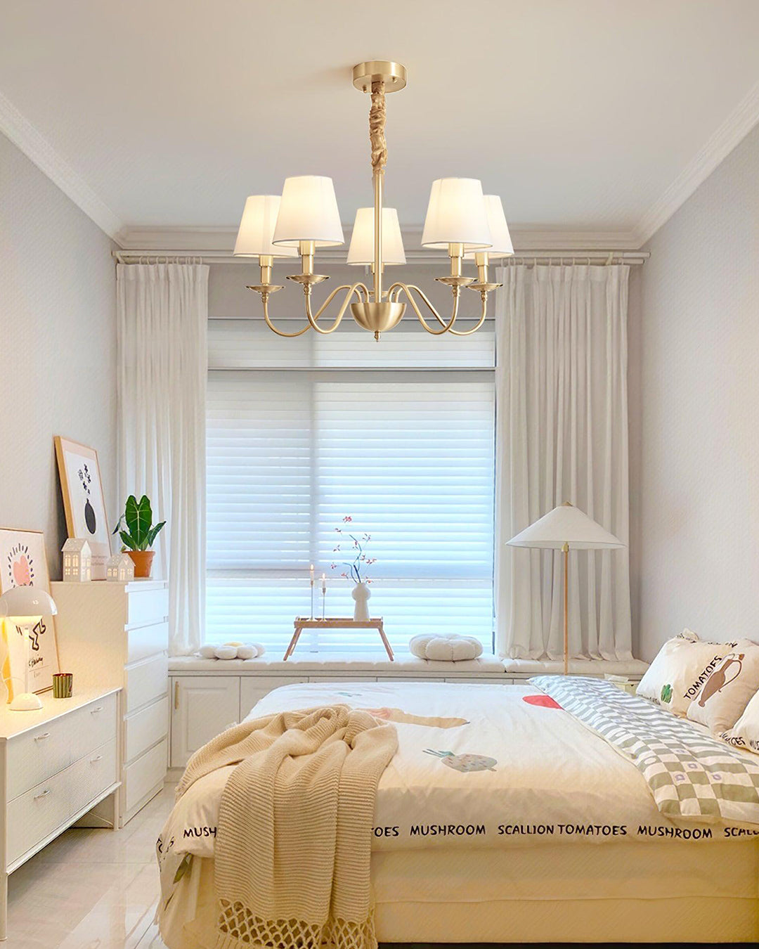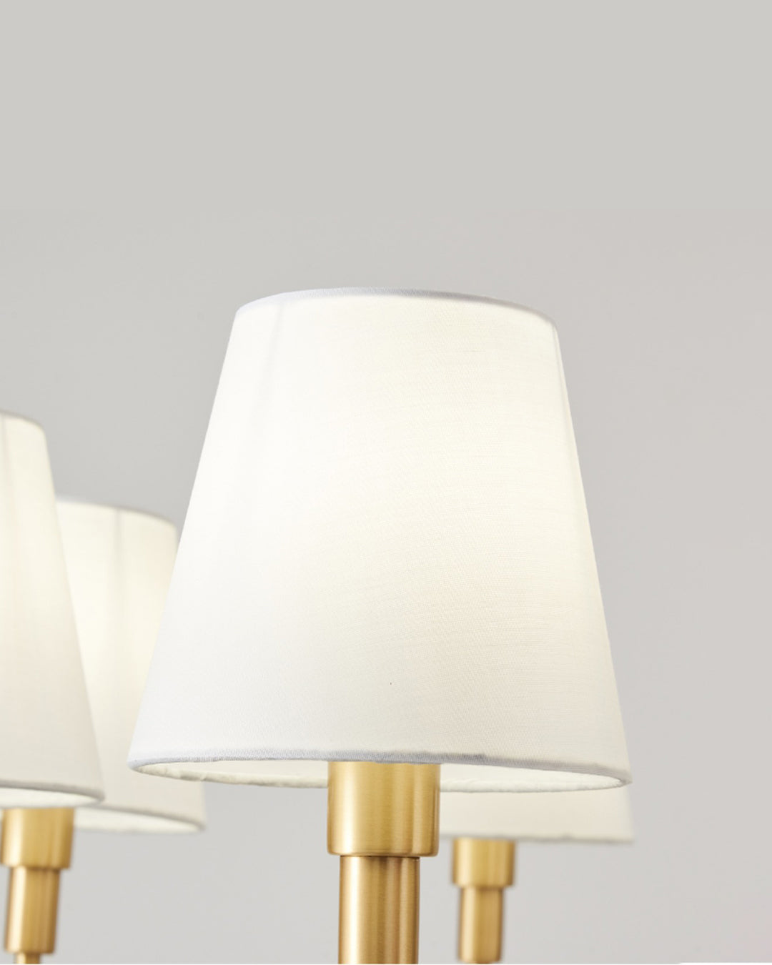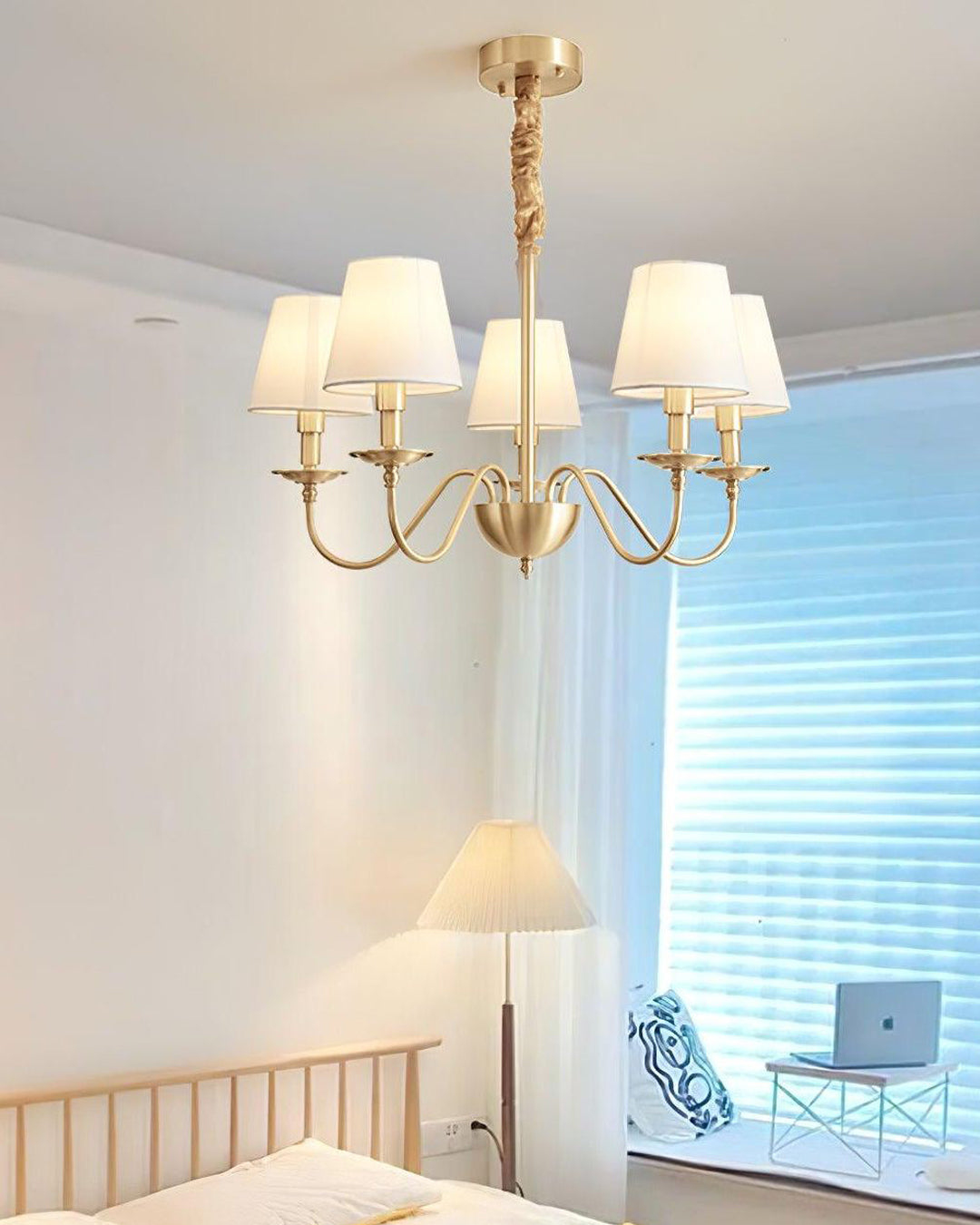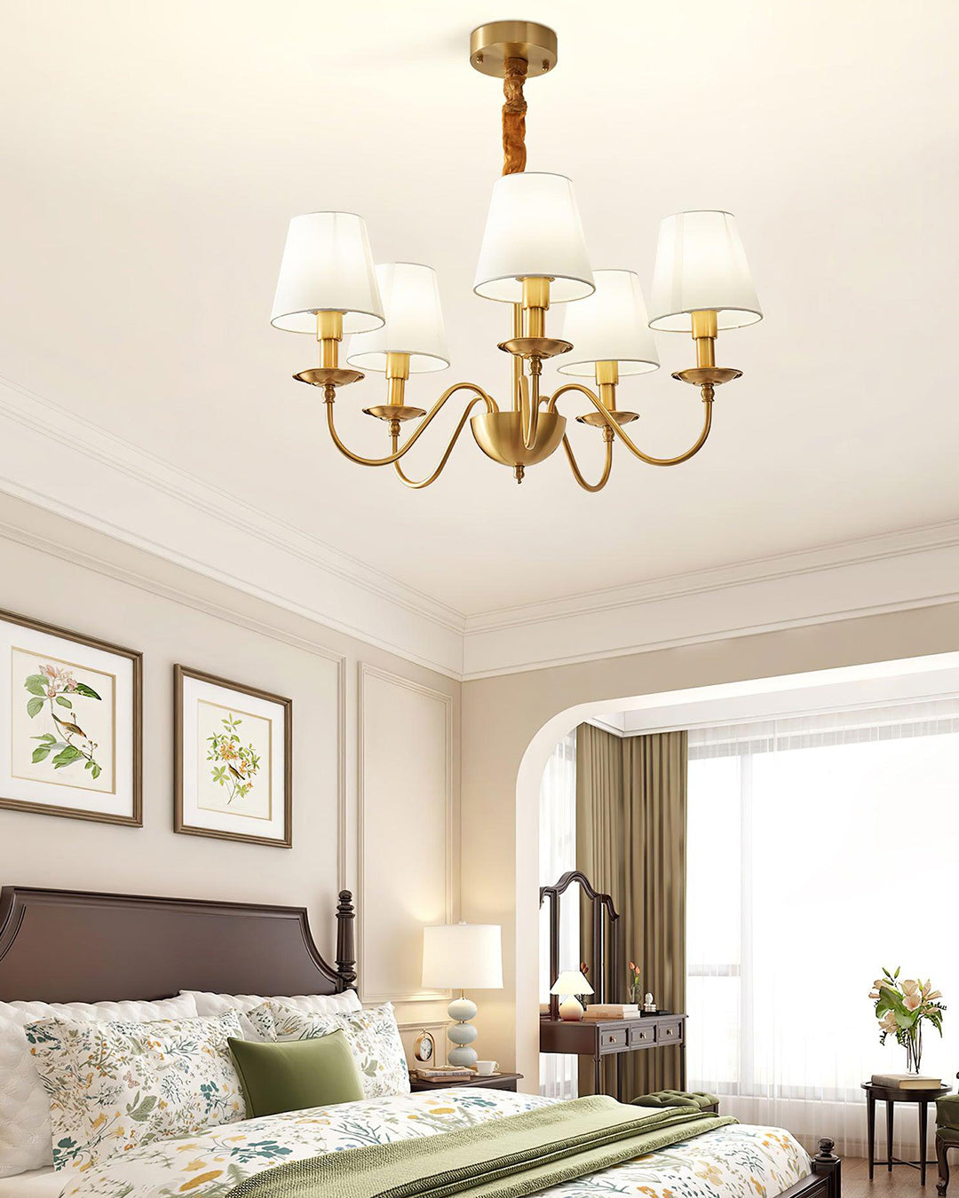 Transform your living room or bedroom into a vintage-inspired oasis with the WOMO Vintage Fabric Arm Chandelier-WM2951. The elegant gold finish and soft fabric shades add a touch of luxury and warmth to any space. Illuminate your home with style and charm!