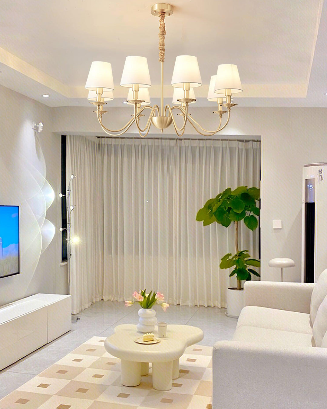 WOMO Gold Fabric Shaded Chandelier-WM2951