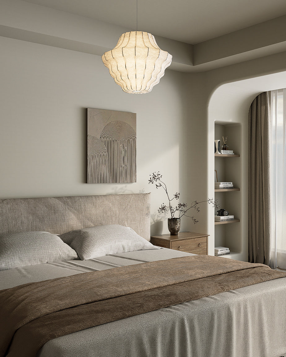 Introduce Japandi elegance into your home with the WOMO Silk Pendant Light-WM2950. Crafted with luxurious silk, this stunning light fixture adds a touch of sophistication and warmth to any bedroom or living room. Elevate your space with the perfect combination of Japanese and Scandinavian design.