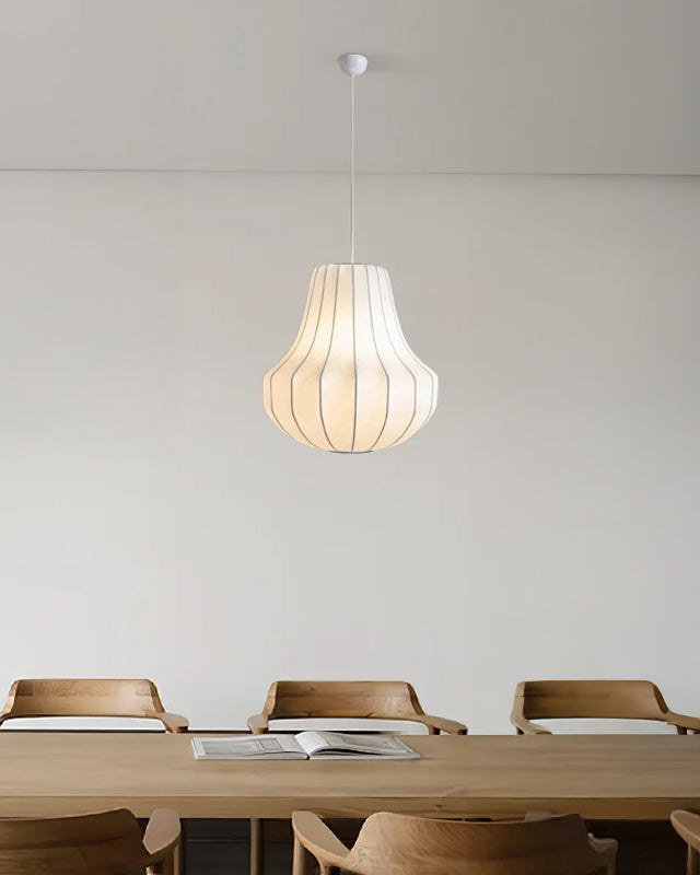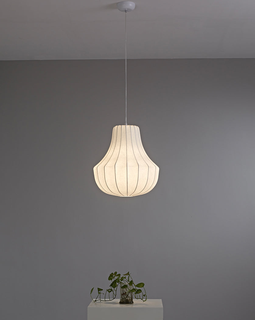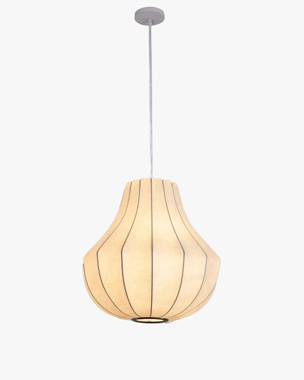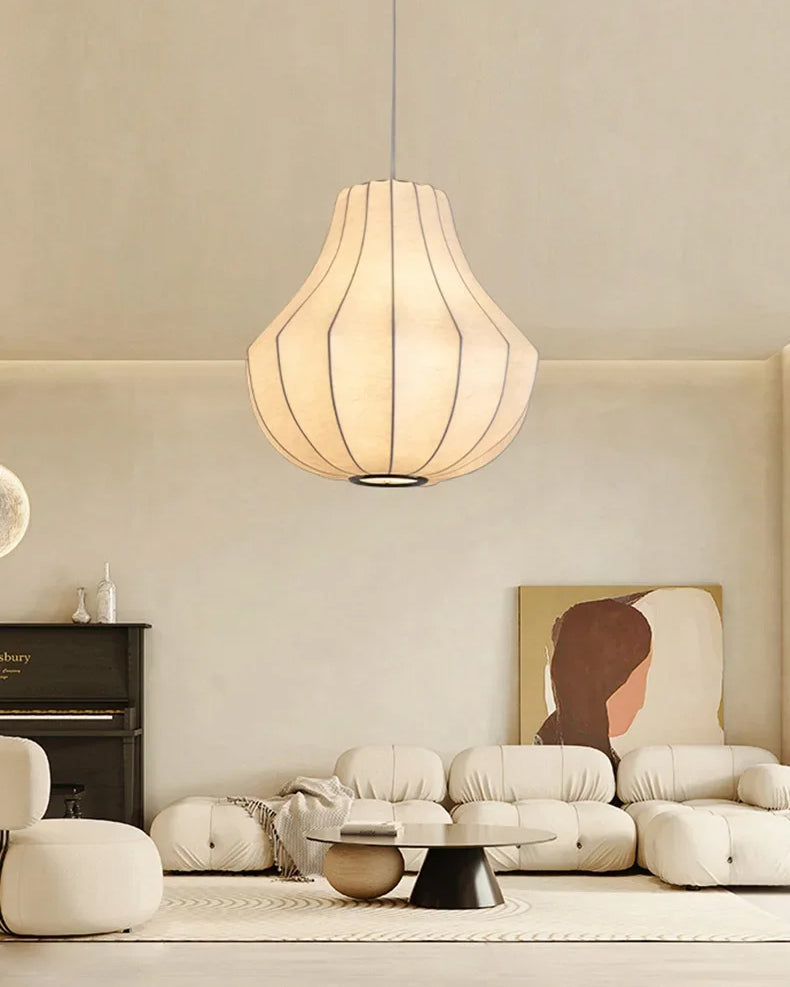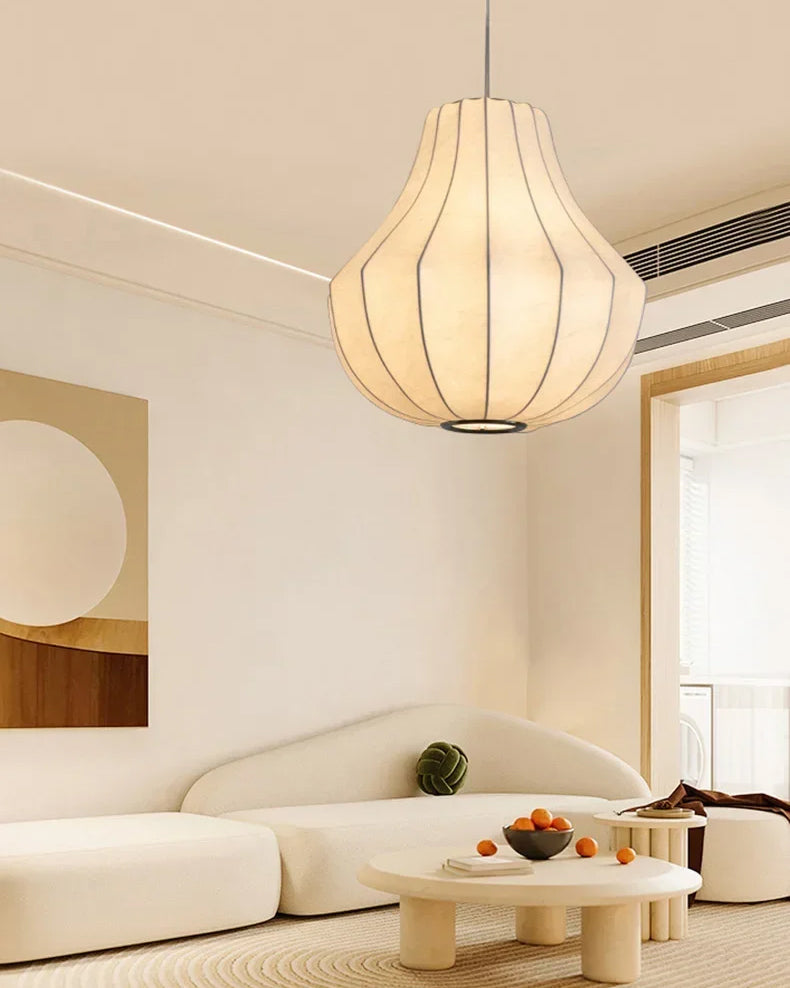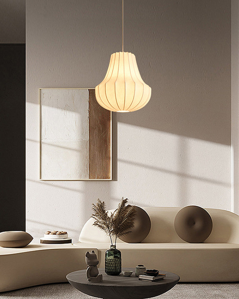 Elevate your home with the beautifully crafted WOMO Japandi Silk Pendant Light. Made with luxurious silk and featuring a sleek white design, it's the perfect addition to any dining or living room. Enhance your space with the minimalist Japandi style and bask in the warm and inviting glow.