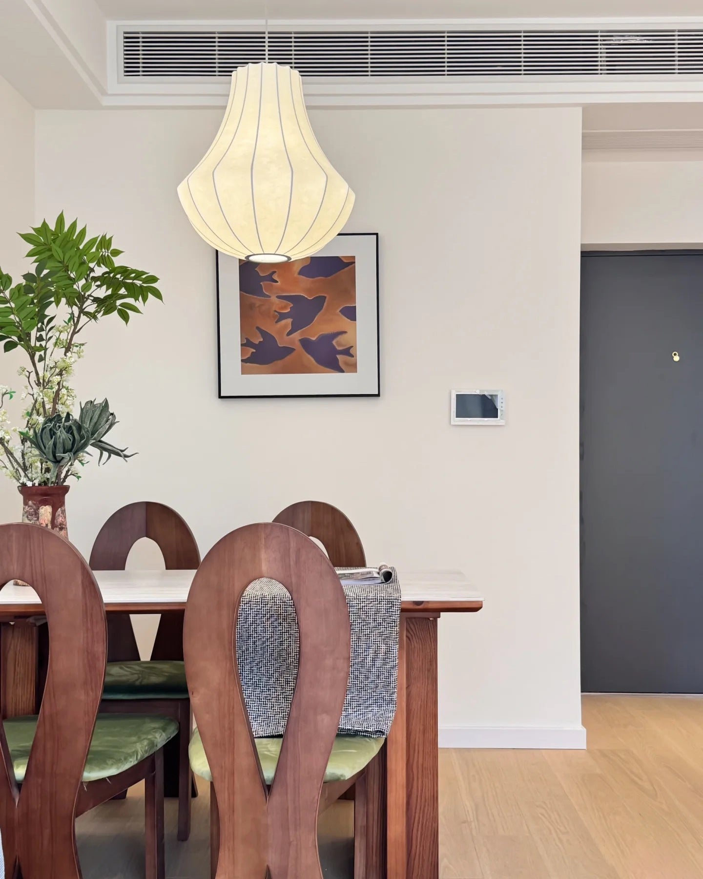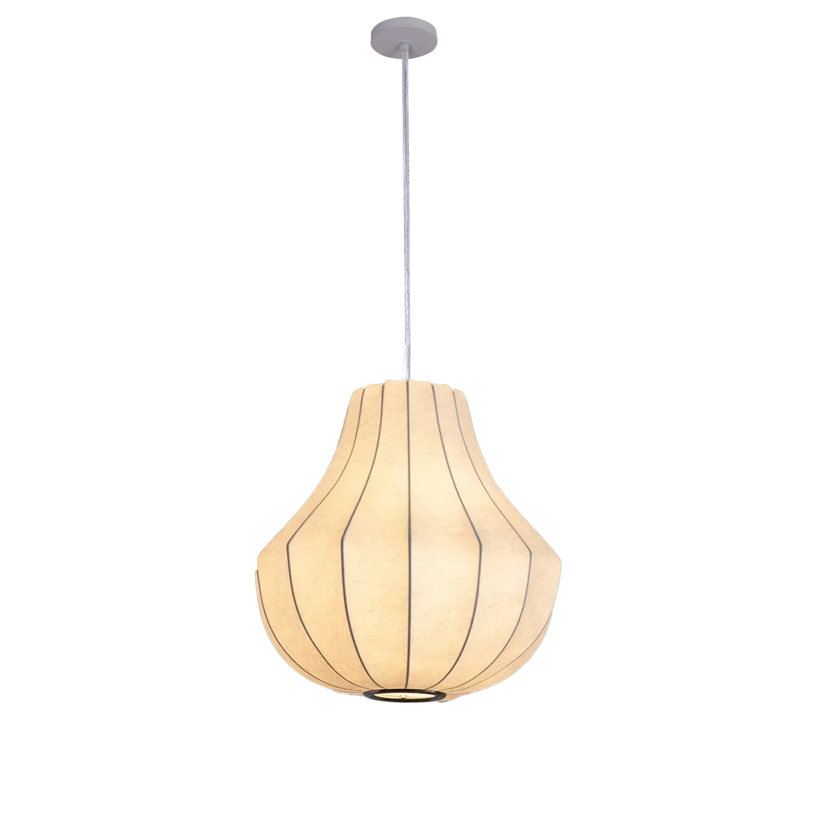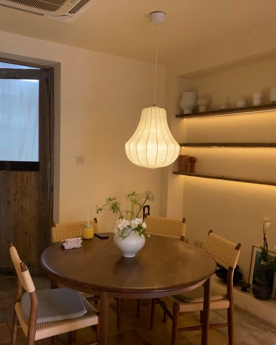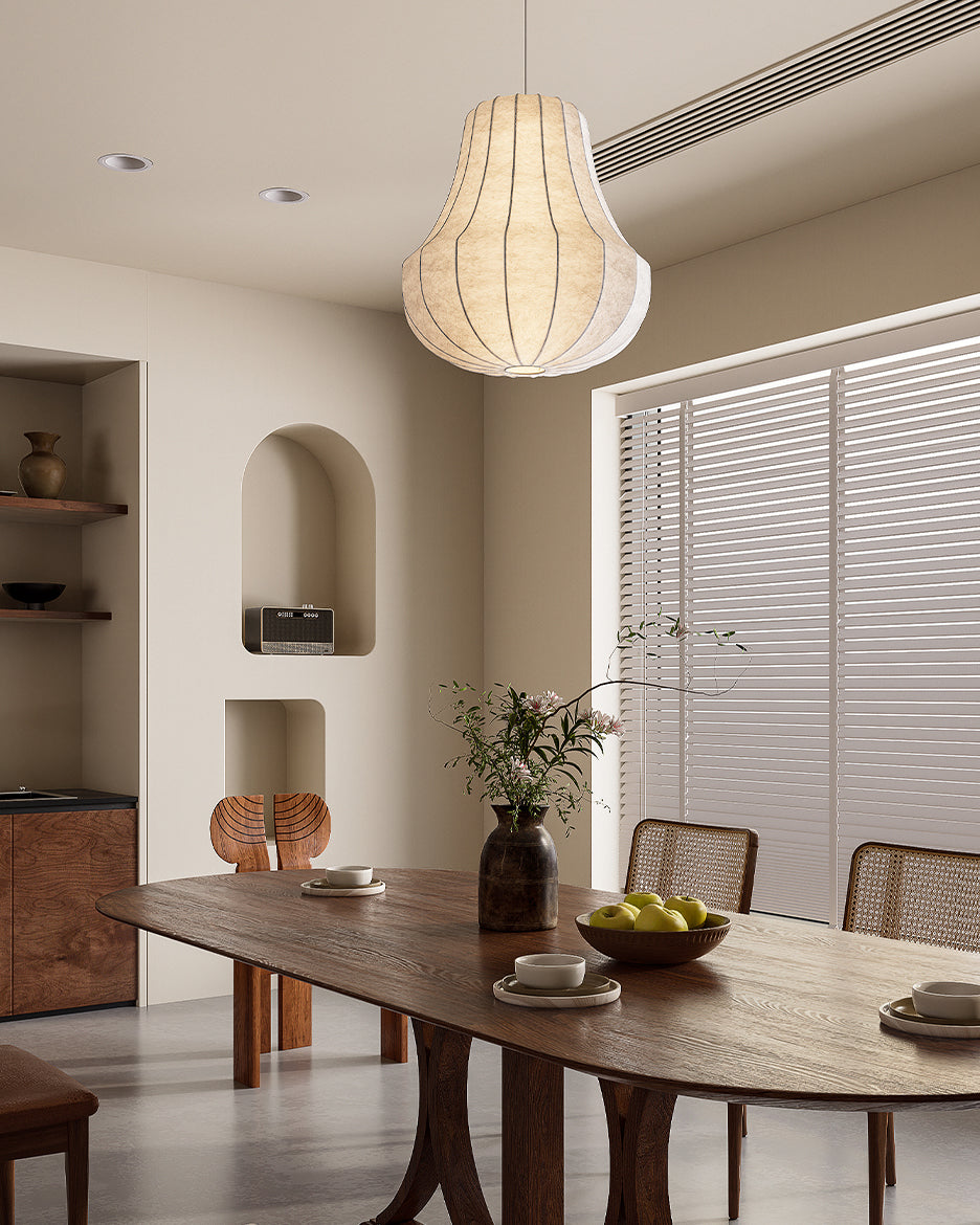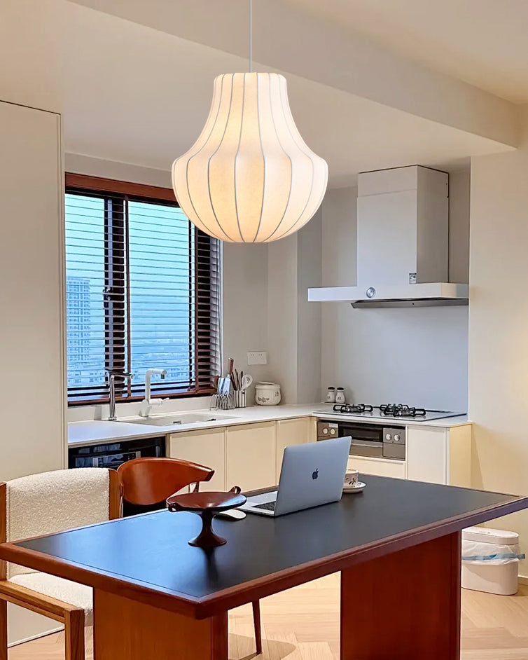 Elevate your home with the beautifully crafted WOMO Japandi Silk Pendant Light. Made with luxurious silk and featuring a sleek white design, it's the perfect addition to any dining or living room. Enhance your space with the minimalist Japandi style and bask in the warm and inviting glow.