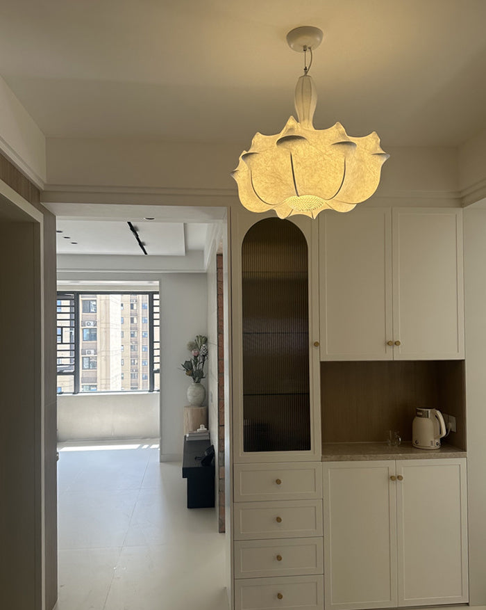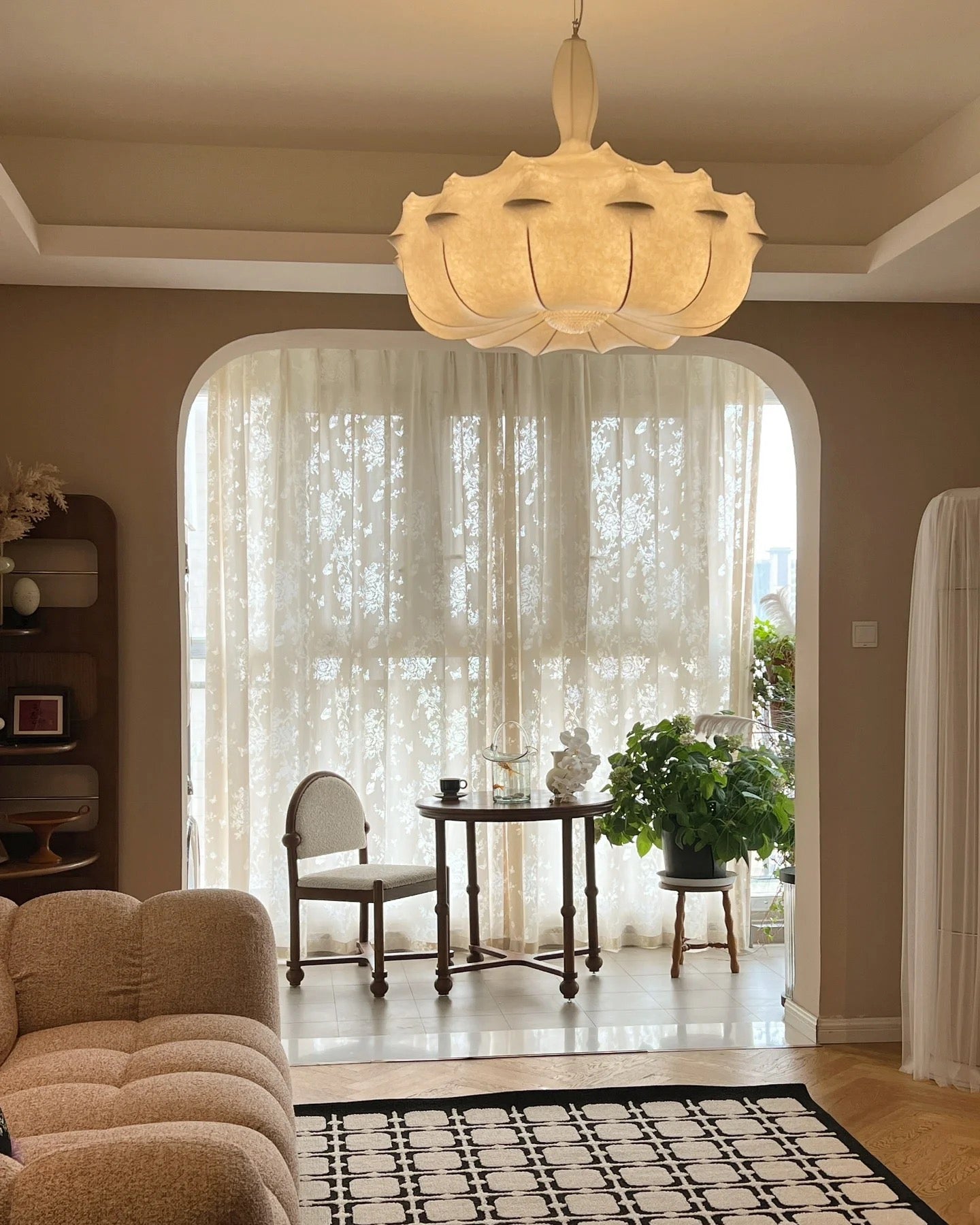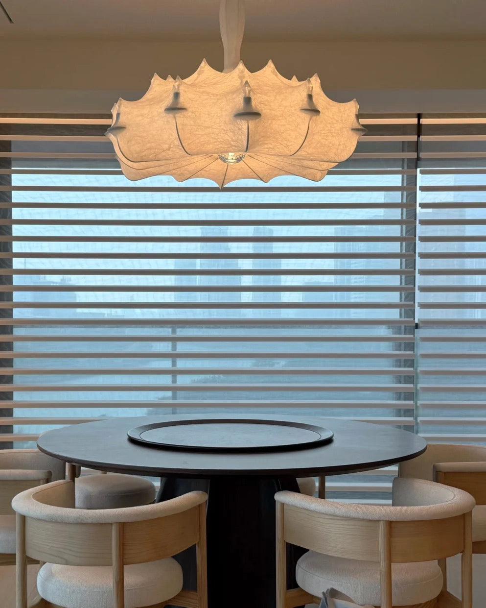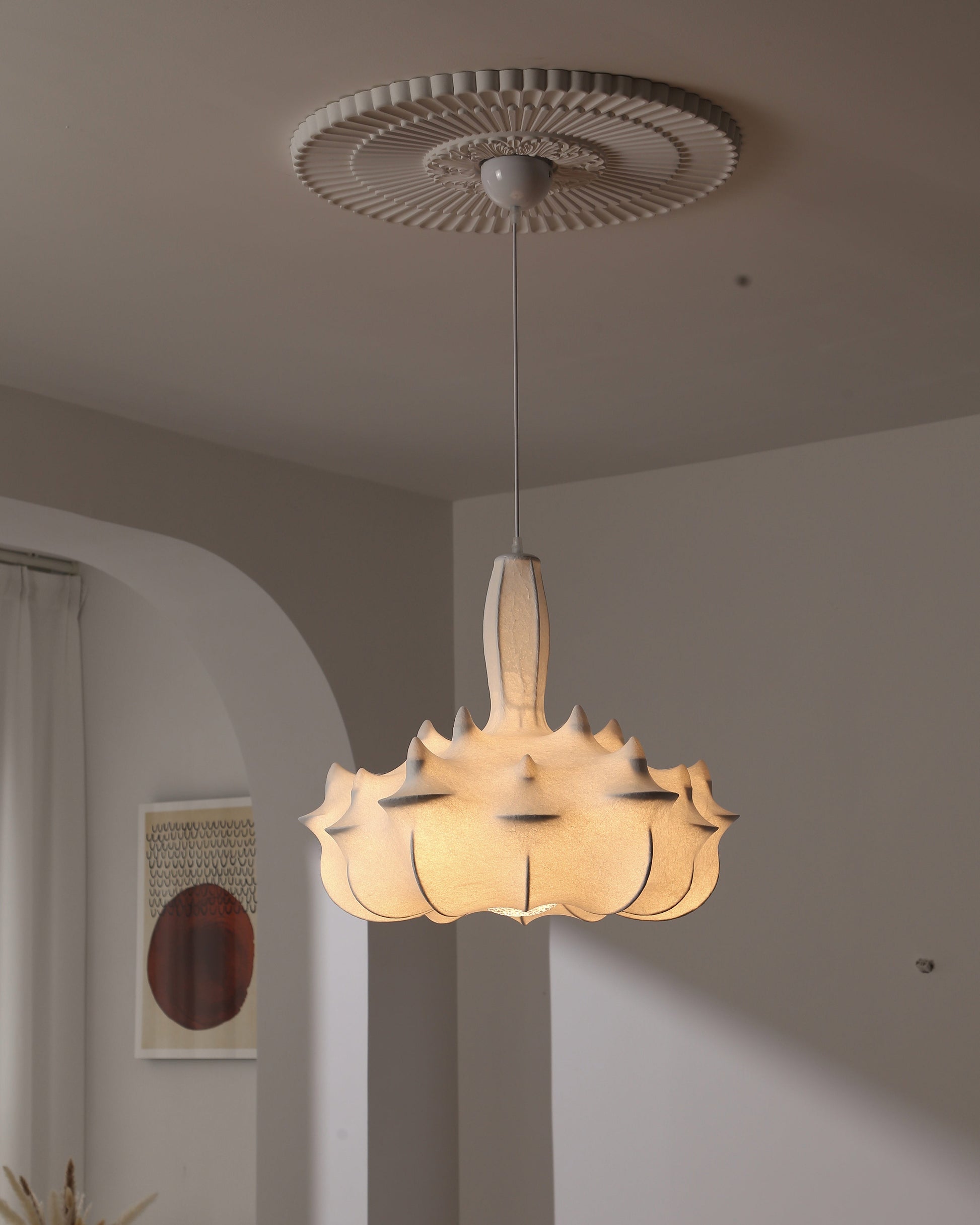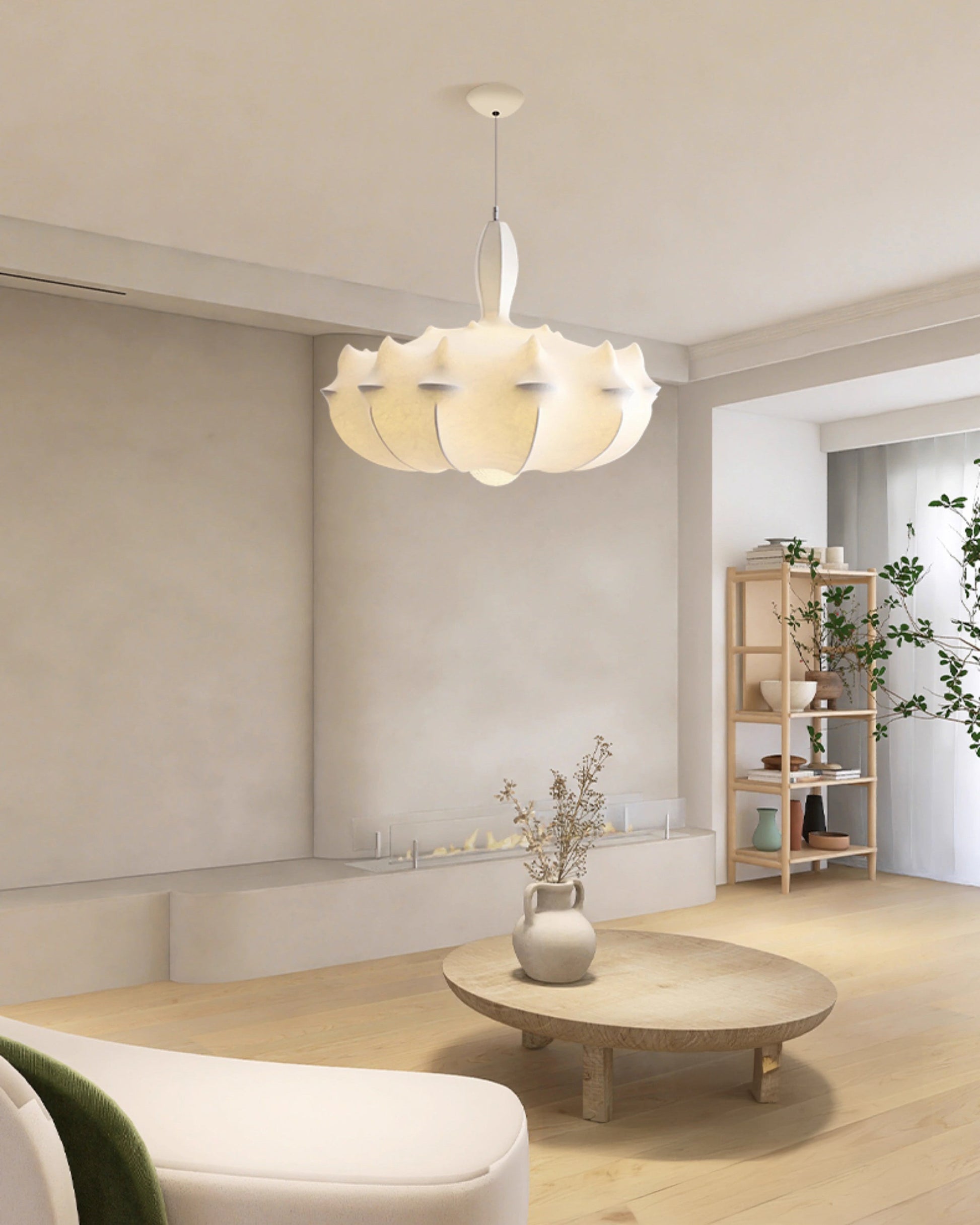 Introduce a touch of the modern and minimalistic Japandi design into your living room or dining room with the WOMO Japandi Silk Pendant Light. The white silk material adds an elegant and luxurious touch to any space, creating a serene and tranquil atmosphere. Elevate your home decor with this sophisticated pendant light.