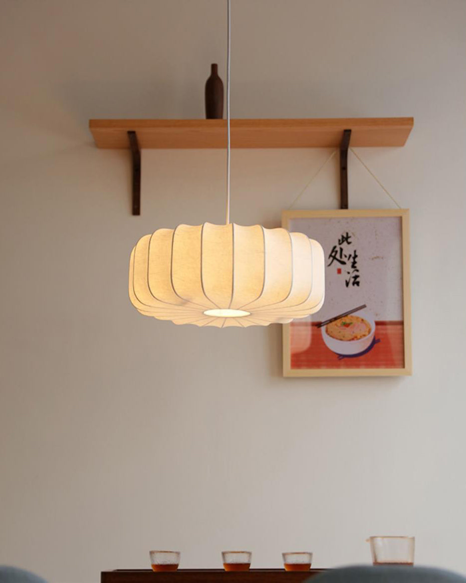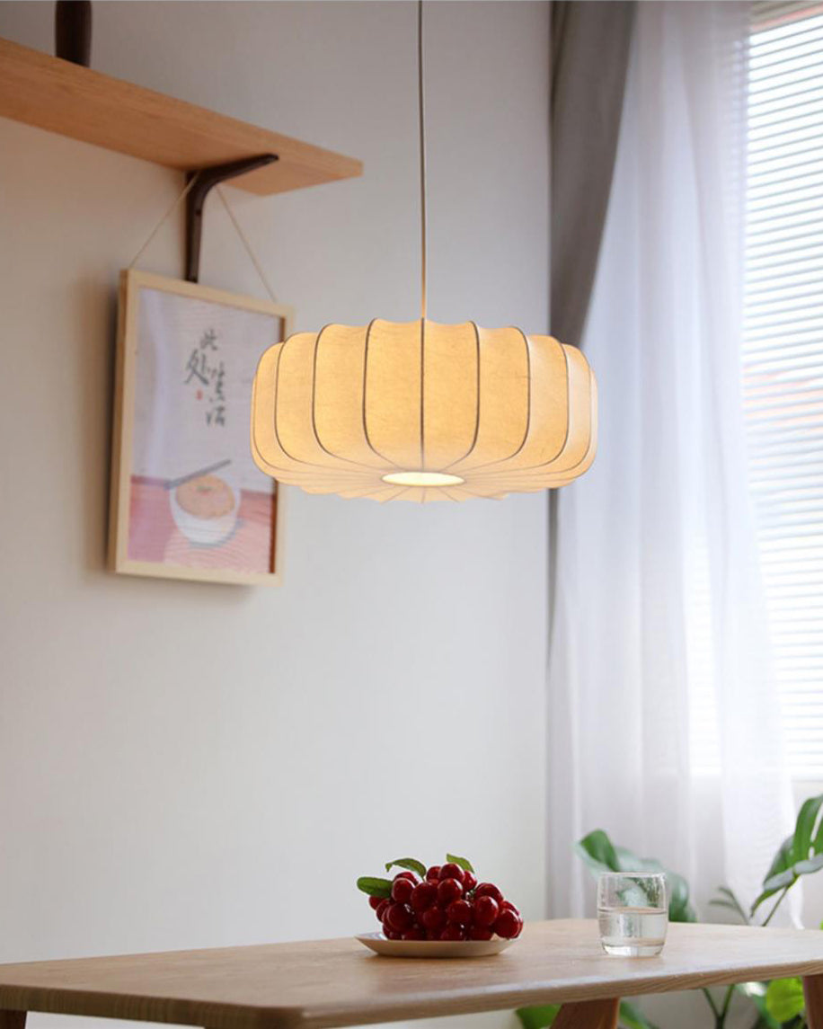 Introducing the WOMO Japandi Silk Pendant Light-WM2962! Elevate your dining room with the perfect blend of Japandi design and luxurious silk material. Enjoy the peaceful balance of Japanese and Scandinavian styles while adding a touch of elegance with the crisp, white finish. Upgrade your space and create a serene and inviting atmosphere.