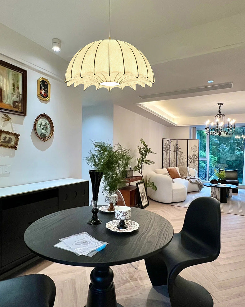 Introduce a touch of elegance and artistry to your home with the WOMO Artistic Designed Silk LED Pendant Light-WM2974. The intricate silk design, inspired by the Japandi aesthetic, adds a unique touch to any dining room or bedroom. Experience the soft glow of white LED light while enjoying the beauty of this pendant light.