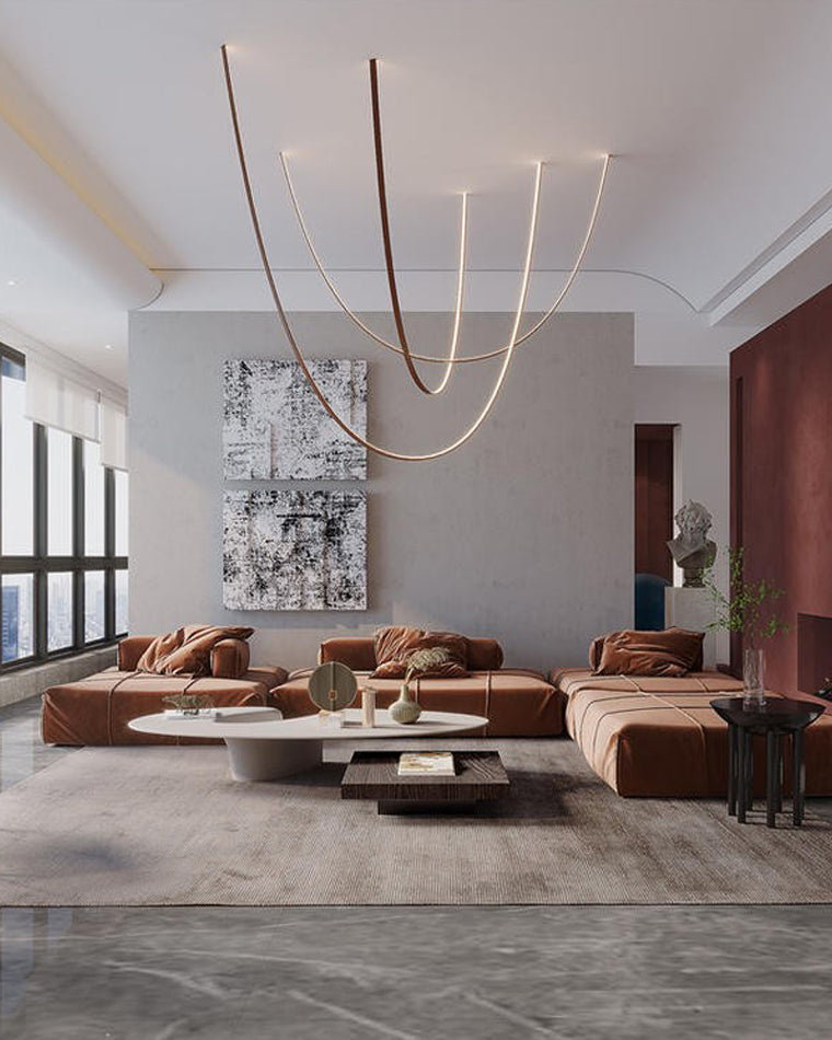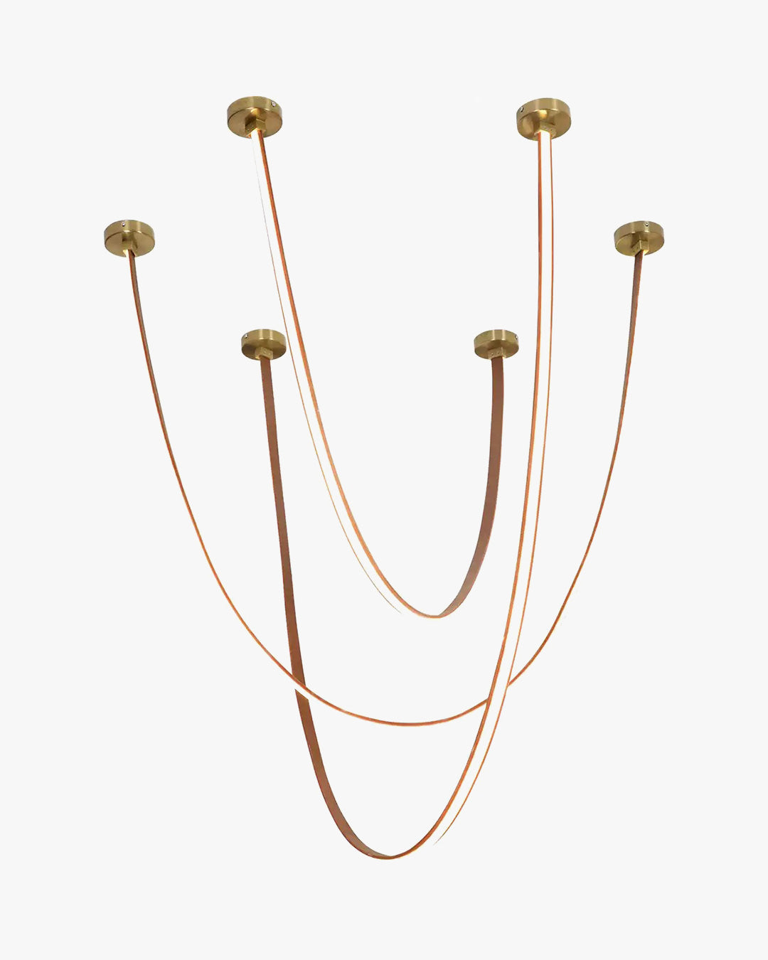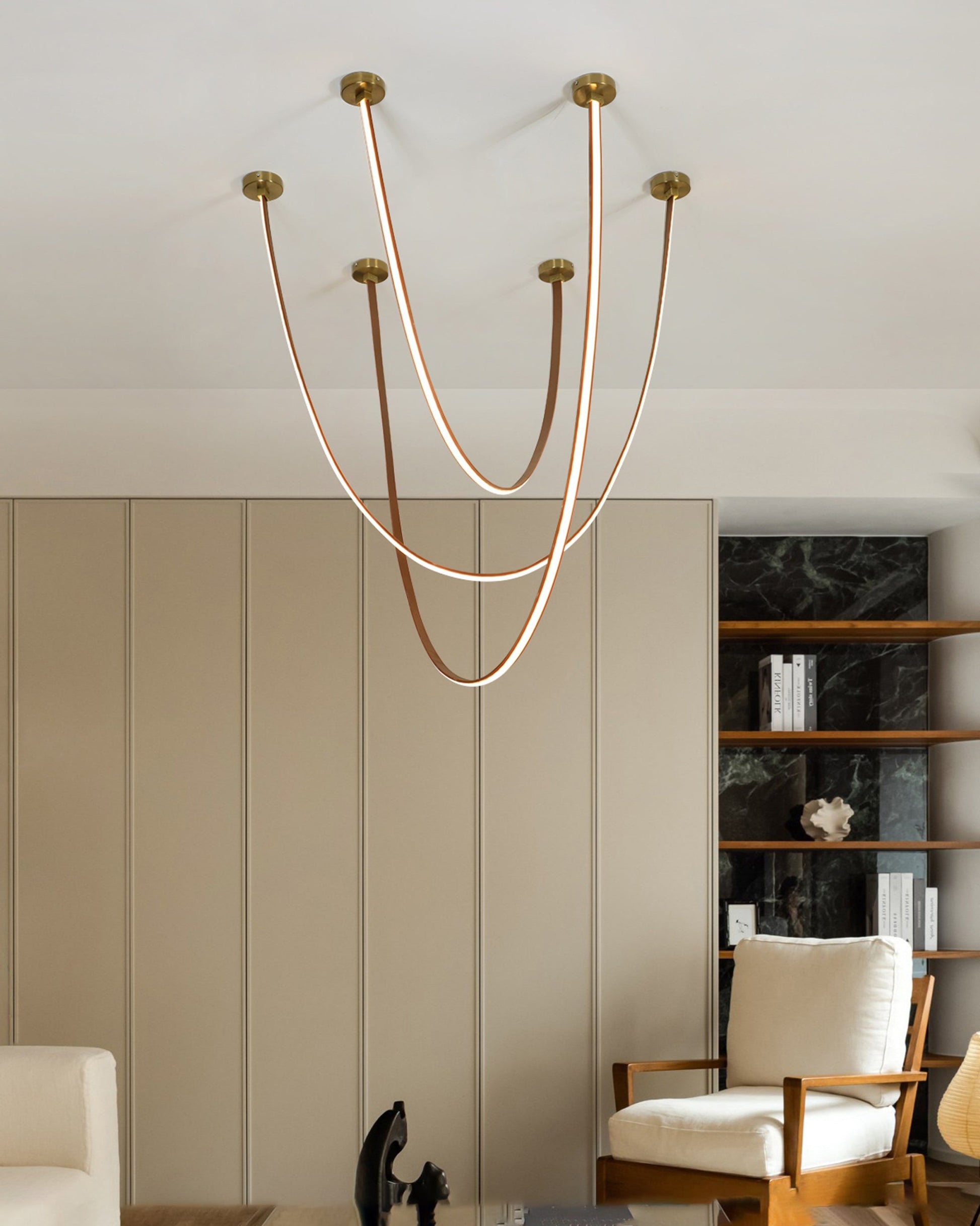 Elevate your living room or foyer with our elegant WOMO Leather Chandelier-WM2941. Its minimalist design and rich coffee hue creates a warm and inviting ambiance, perfect for entertaining or relaxing. Handcrafted with genuine leather, this timeless piece adds a touch of luxury to any space.