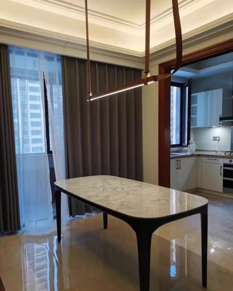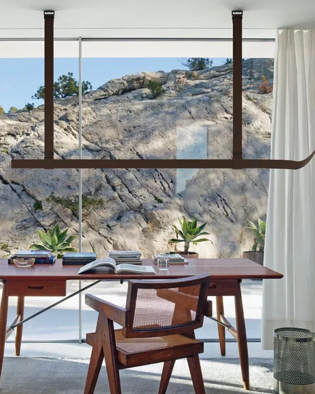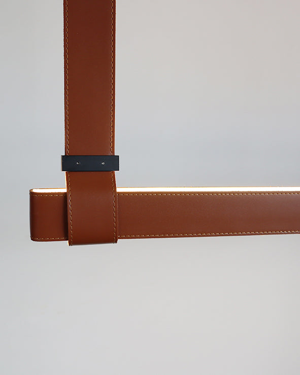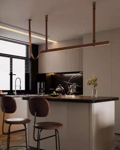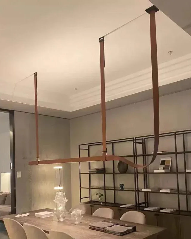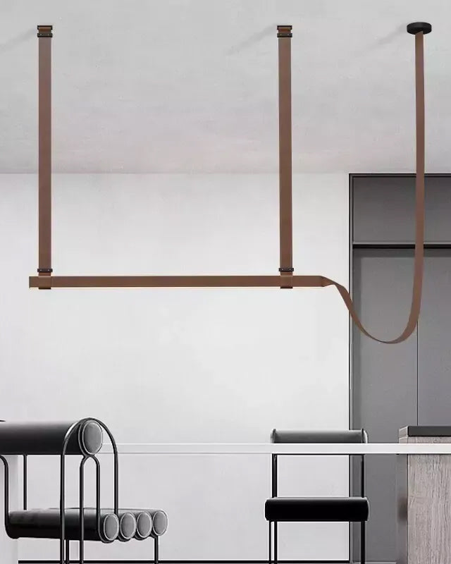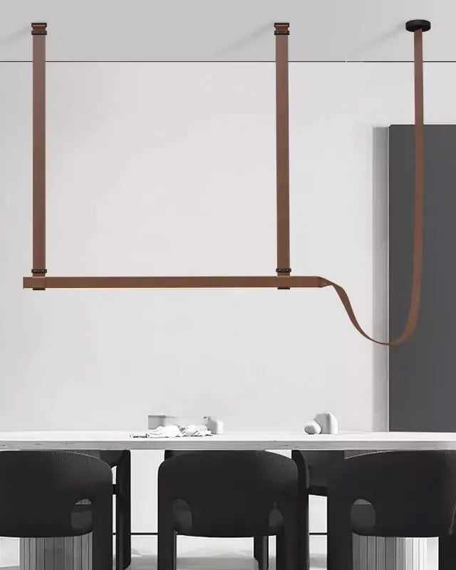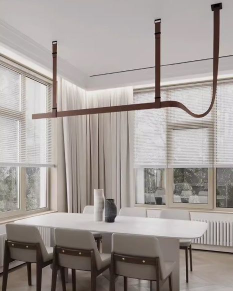 Elevate your dining room design with our sleek WOMO Leather Linear Chandelier! Made with minimalist design and high-quality leather, this coffee-toned chandelier adds a touch of sophistication to any space. Upgrade your home decor with this elegant and unique statement piece.