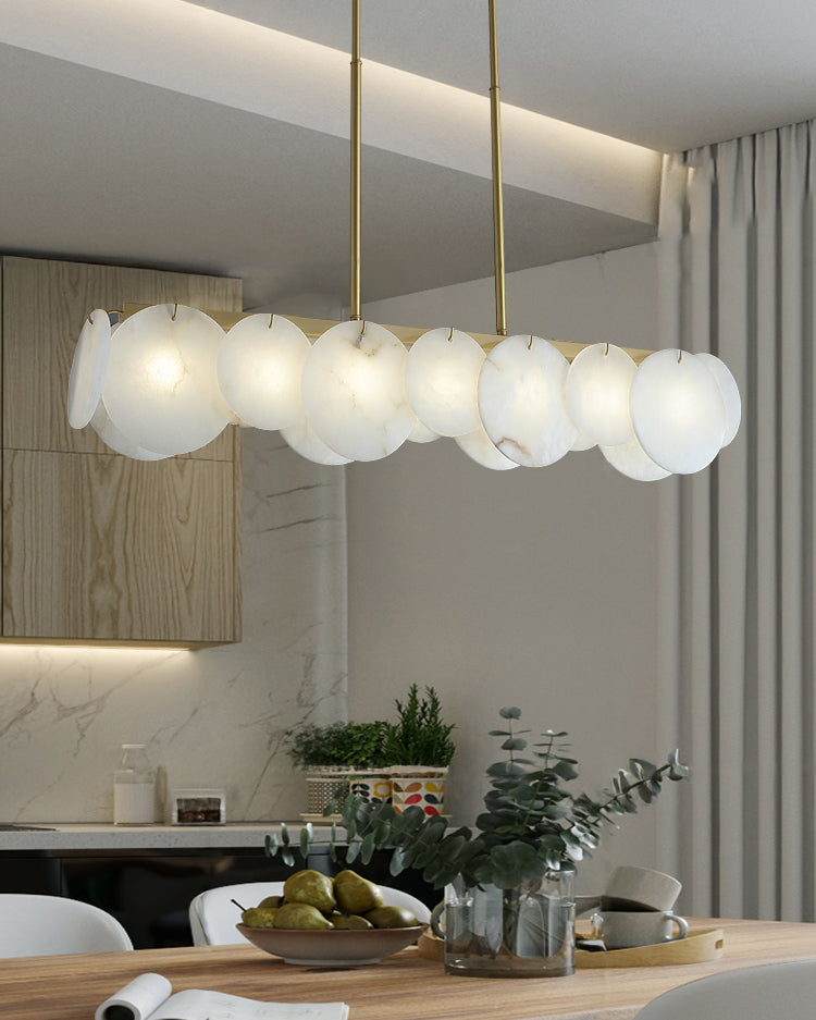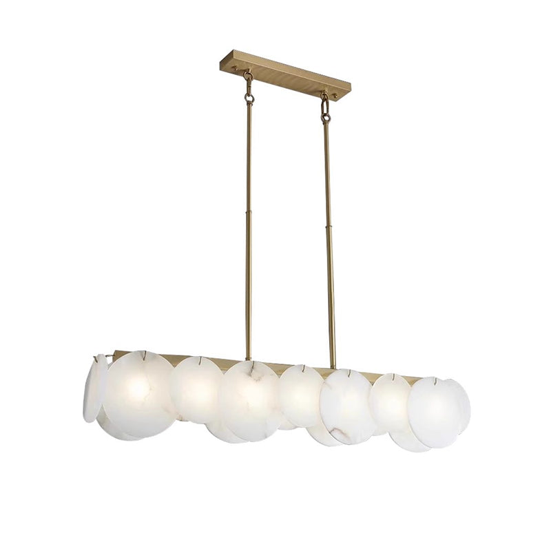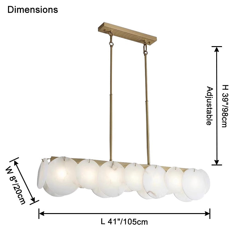 Experience luxury and sophistication with the WOMO Linear Alabaster Chandelier! Perfect for any dining or living room, this chandelier boasts a stunning round design made of high-quality alabaster. Its sleek gold finish adds a touch of elegance to any space. Elevate your home decor today!
