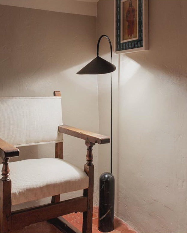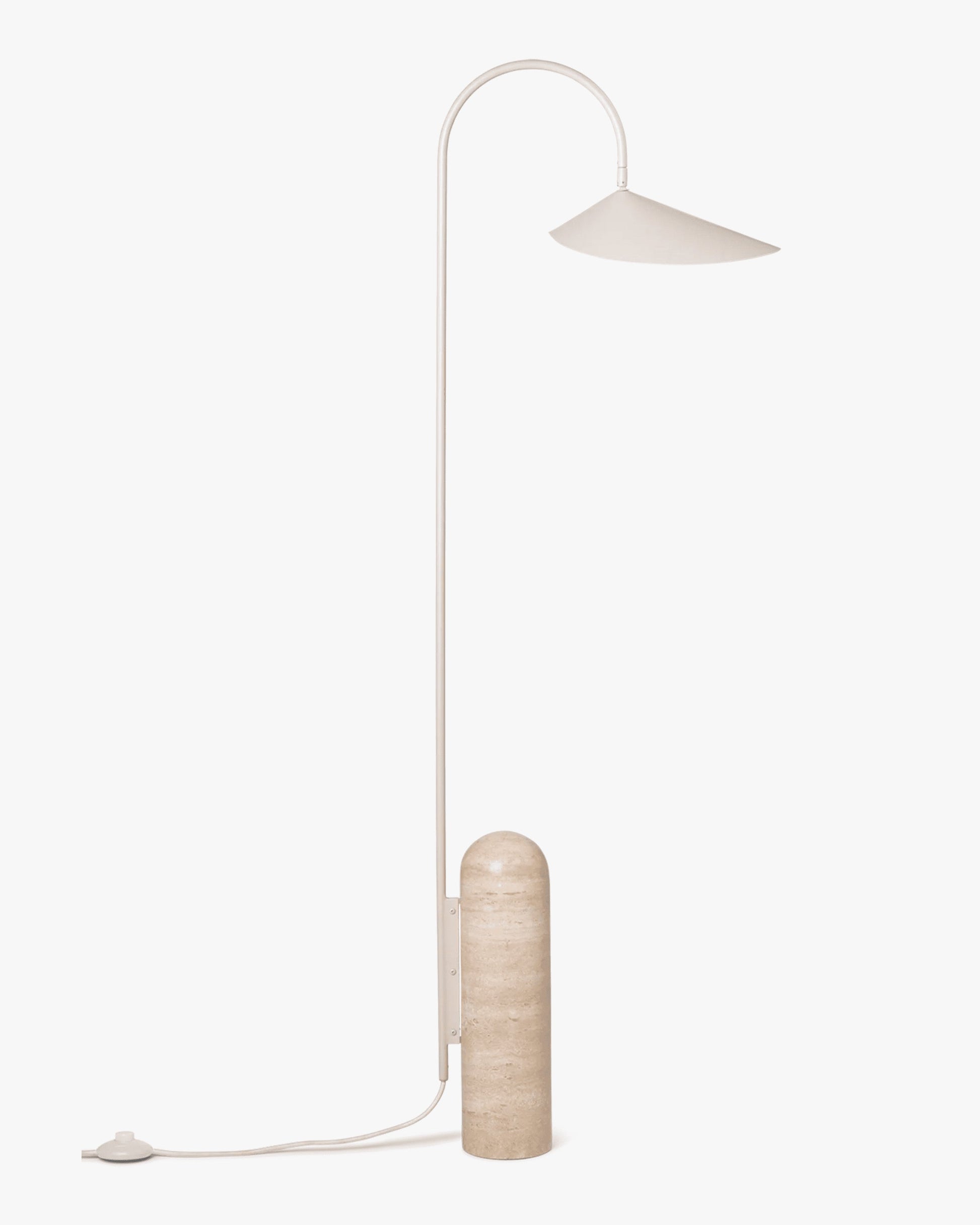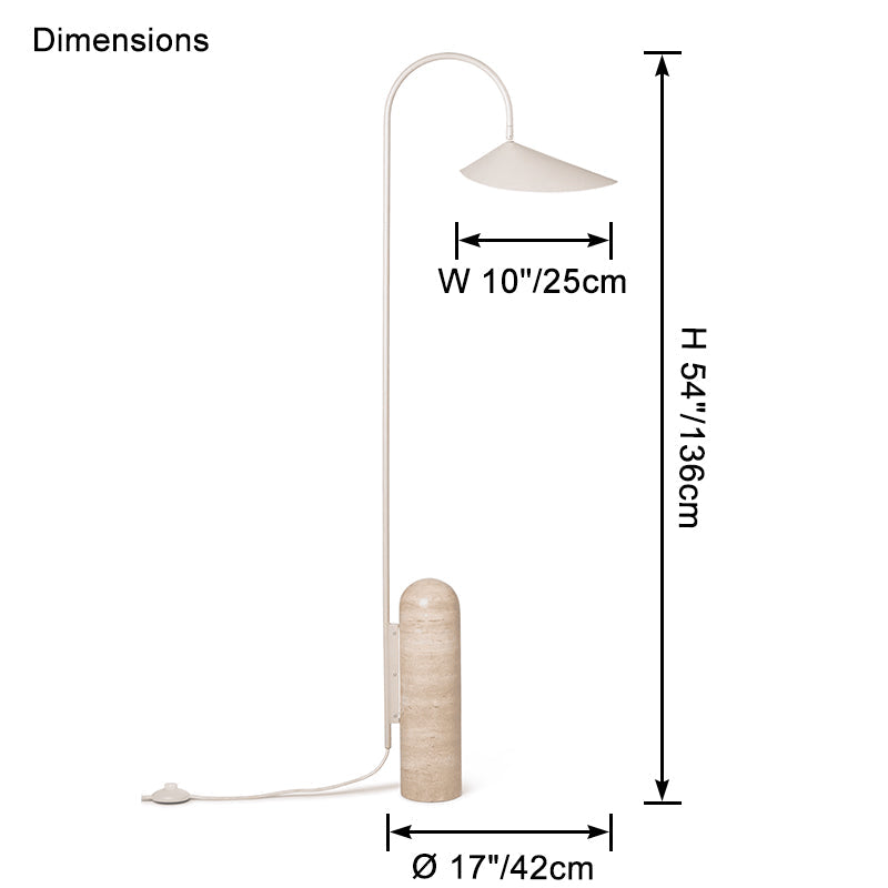 Experience the perfect blend of functionality and style with the WOMO Marble Arc Adjustable Floor Lamp. The marble or travertine cylinder base adds an elegant touch to any room while the adjustable arc arm allows you to direct light exactly where you need it. The hat-like shade completes the modern look and feel. Illuminate your space with this chic and versatile lamp.
