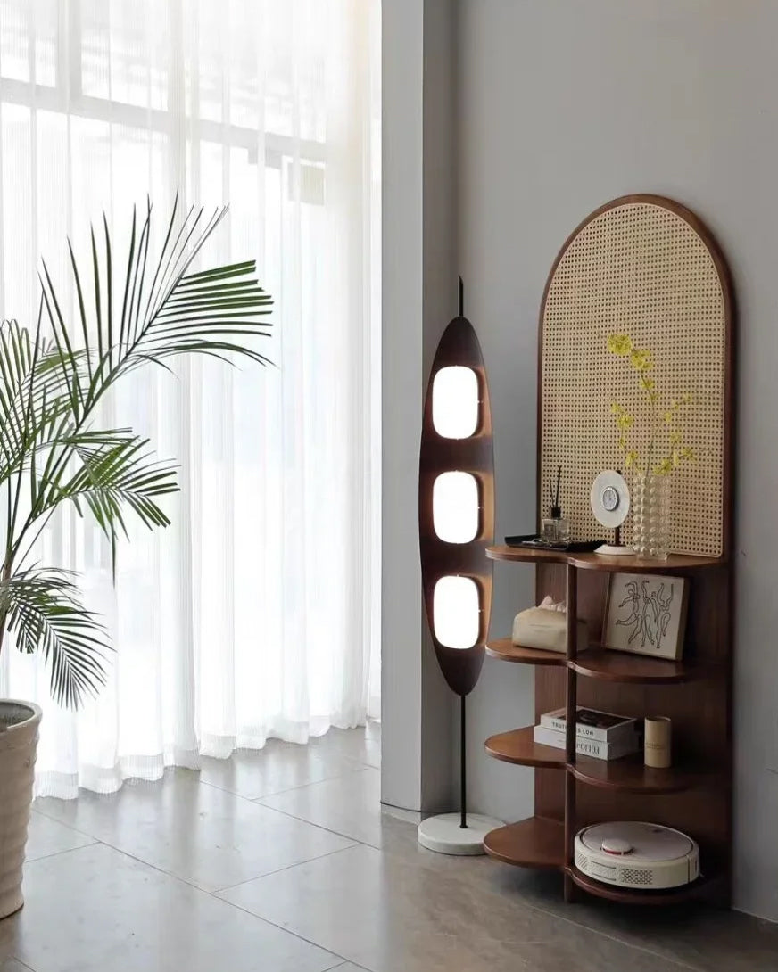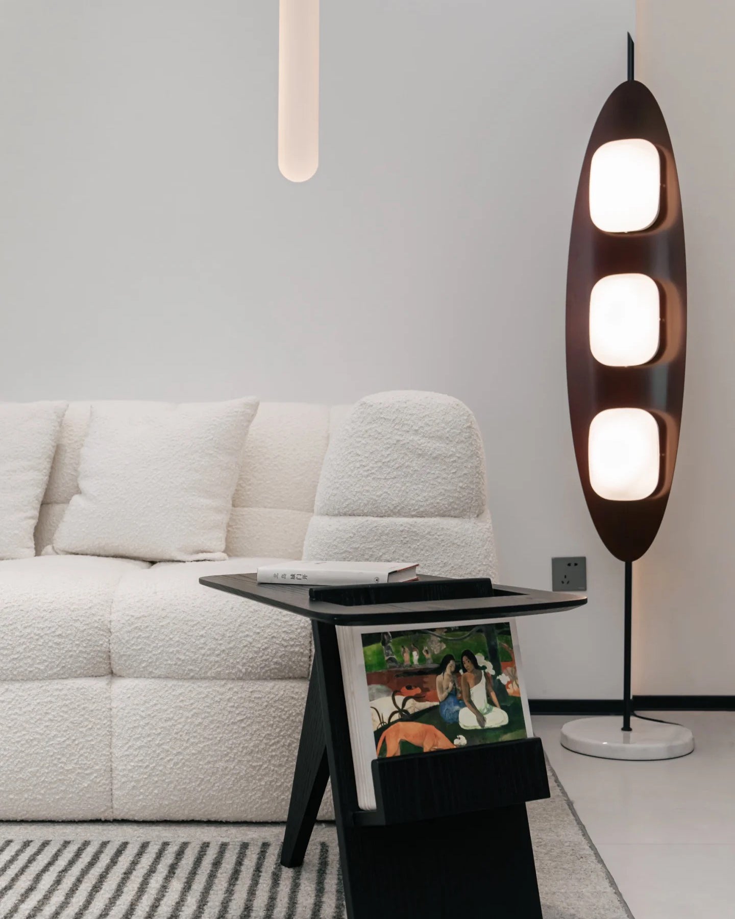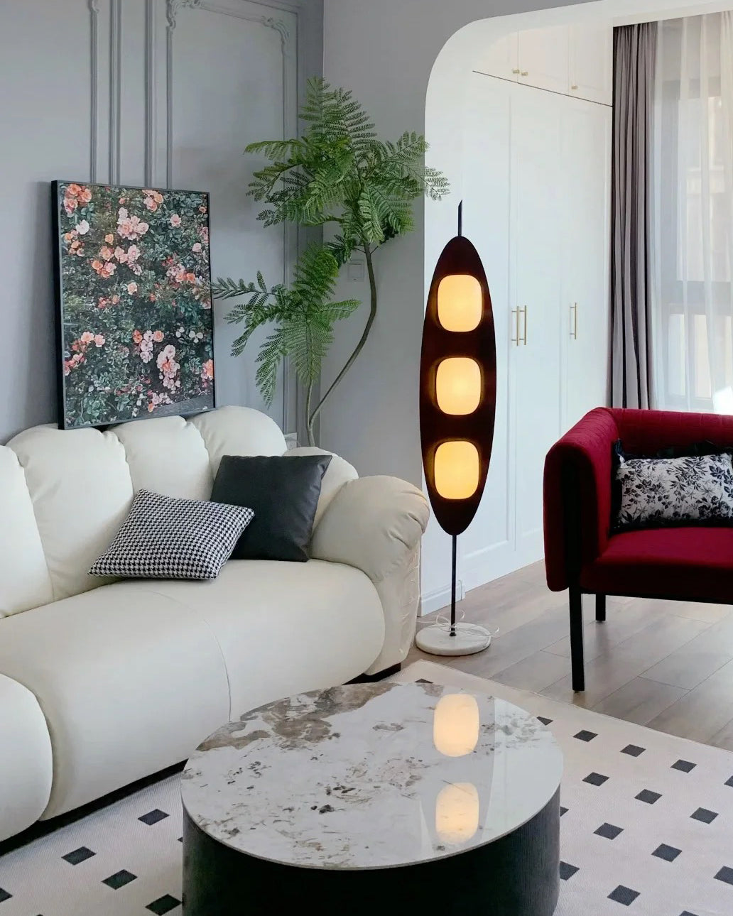 Elevate your living space with the unique and modern design of the WOMO Modern Wood Oval Floor Lamp-WM7080. Crafted with a sleek black or walnut wood construction, this linear lamp adds a touch of elegance to any room. Perfect for your living room or bedroom, this lamp will create a warm and inviting atmosphere.