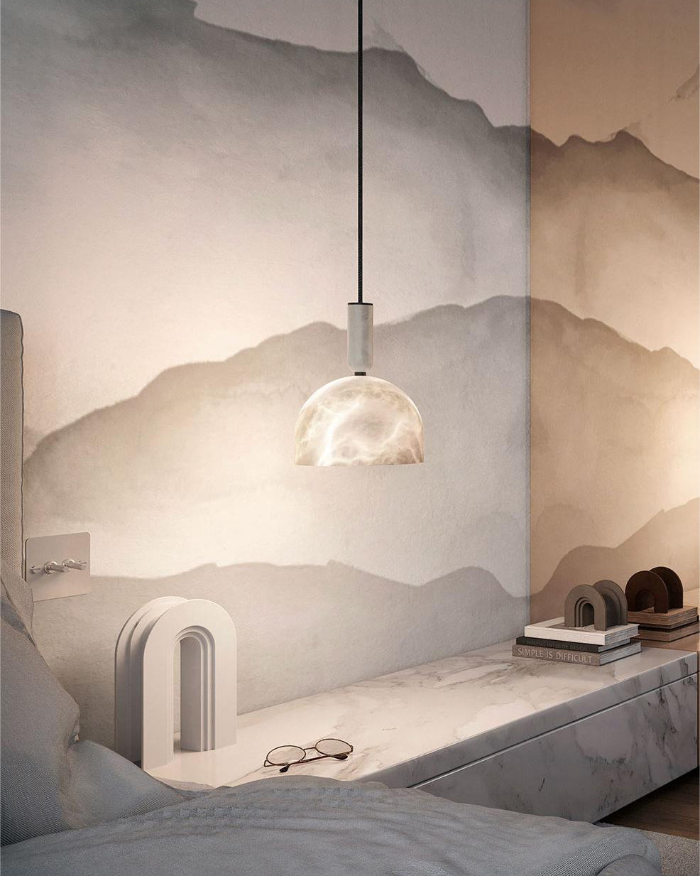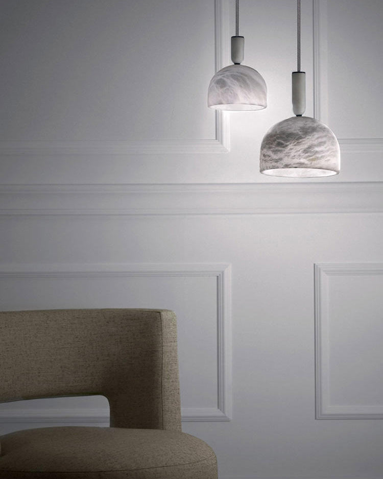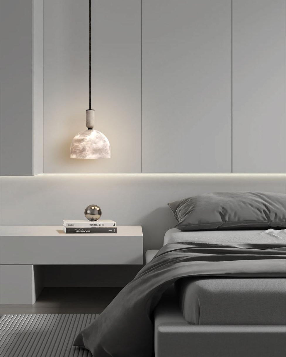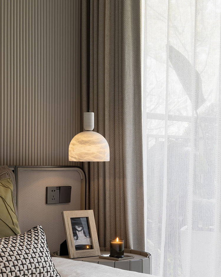 Experience contemporary elegance with the WOMO Oki Alabaster Pendant Light! Featuring a stunning dome design and pure white hue, this light adds a touch of luxury to any bedroom. Crafted from alabaster, it exudes a warm, soft glow for a cozy and inviting atmosphere. Elevate your space with this exquisite pendant light today!
