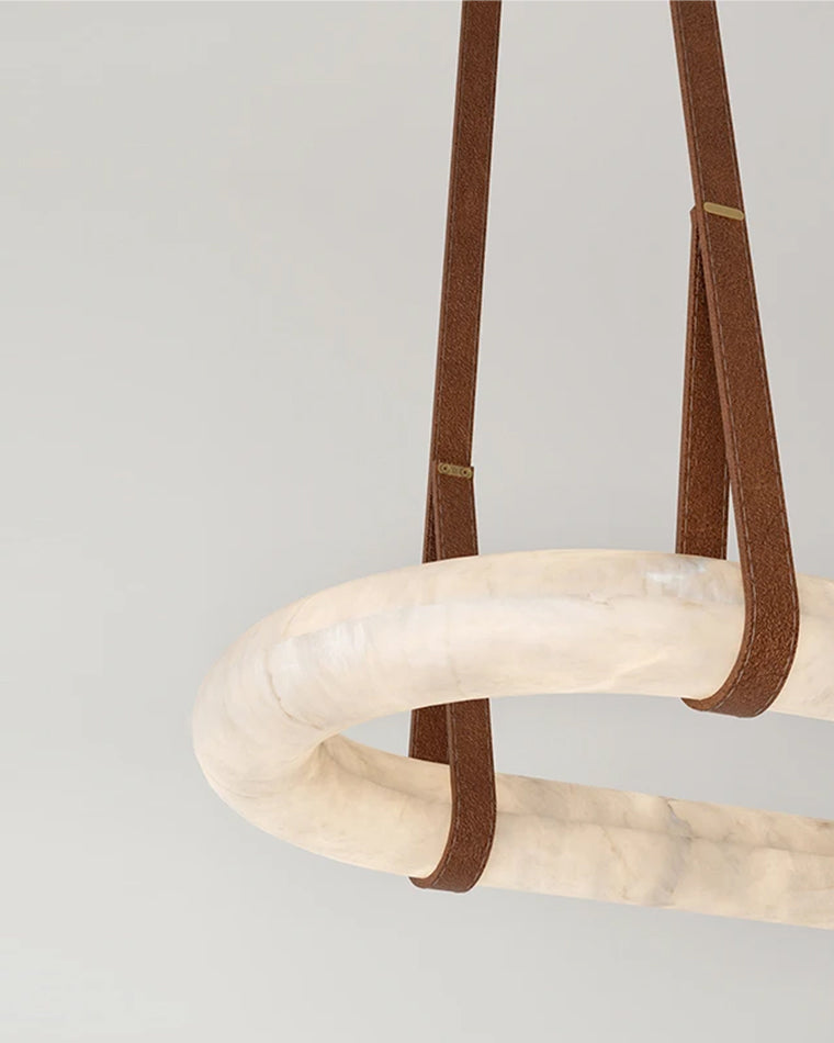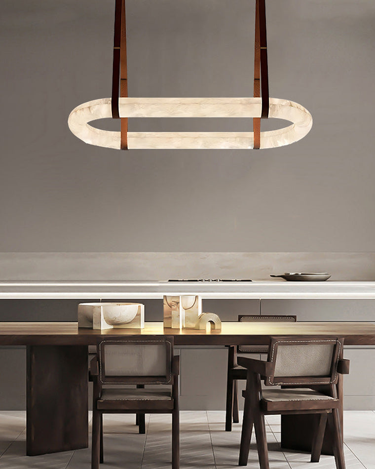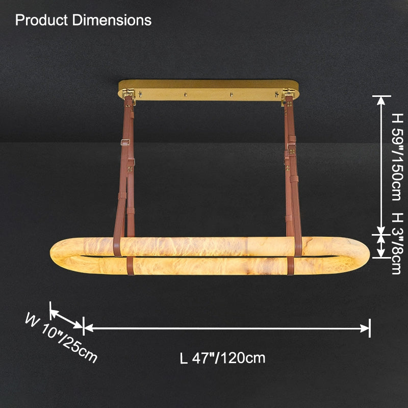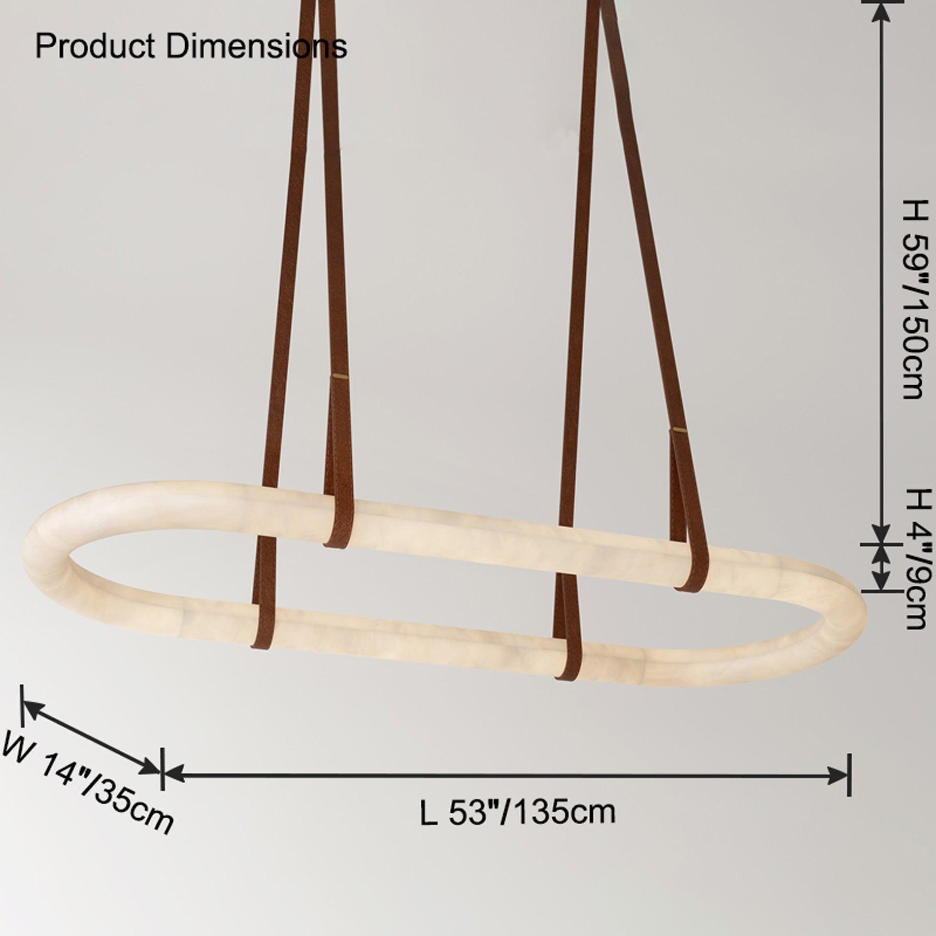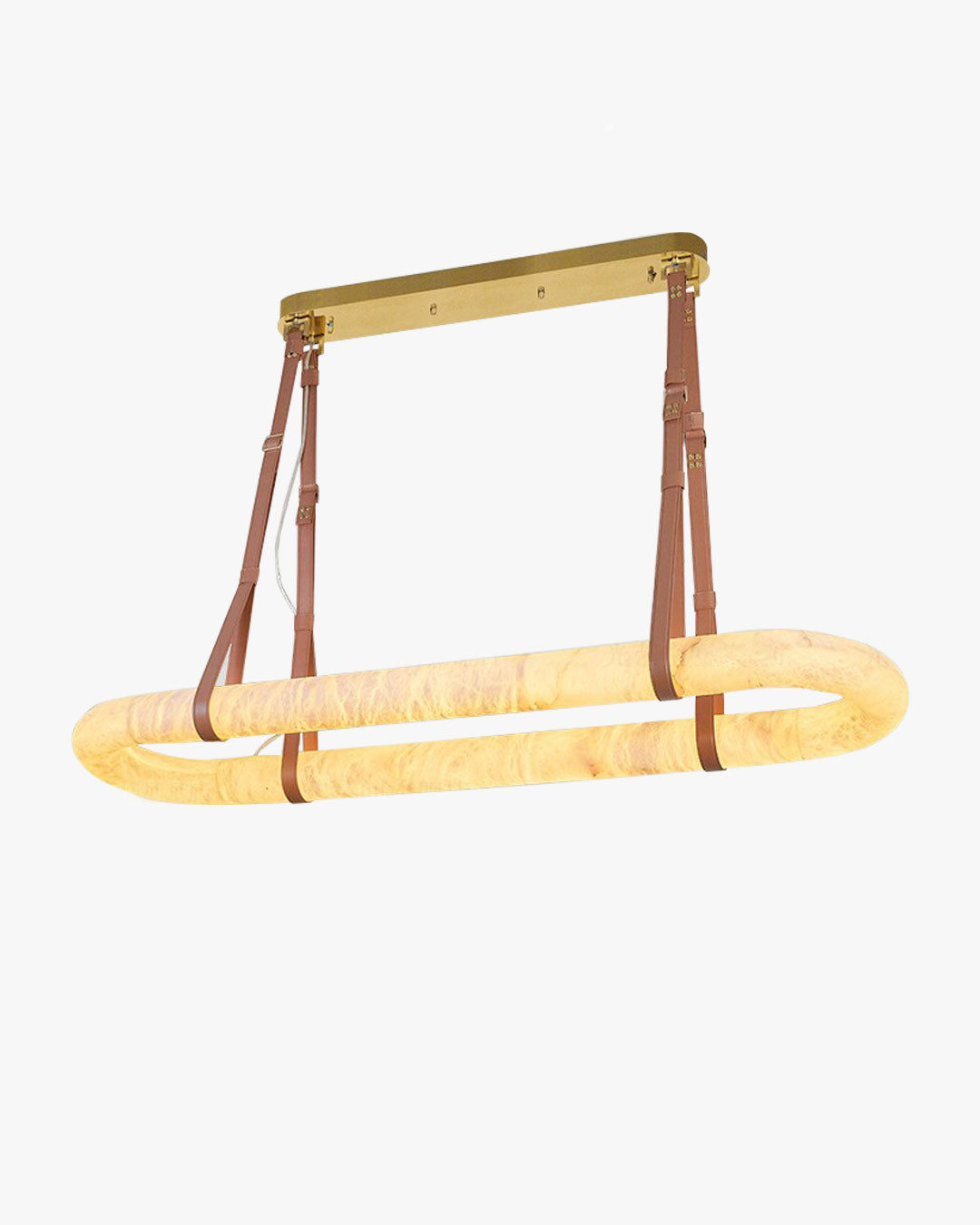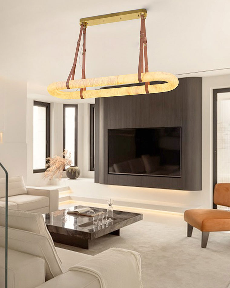 Introducing the WOMO Luxury Leather Oval Alabaster Chandelier-WM2871! Elevate your home with this modern chandelier featuring a stunning combination of coffee-colored leather and alabaster. Perfect for adding a touch of luxury and sophistication to any space, from living rooms to dining rooms and even kitchens.