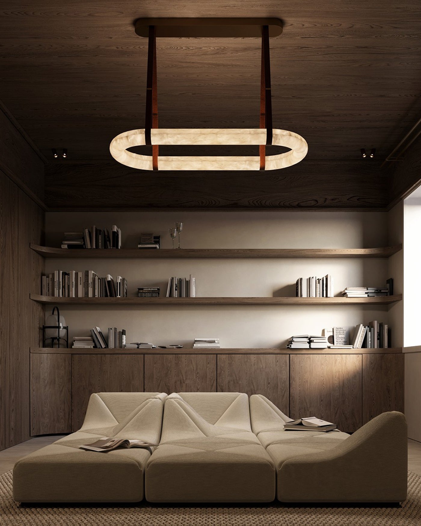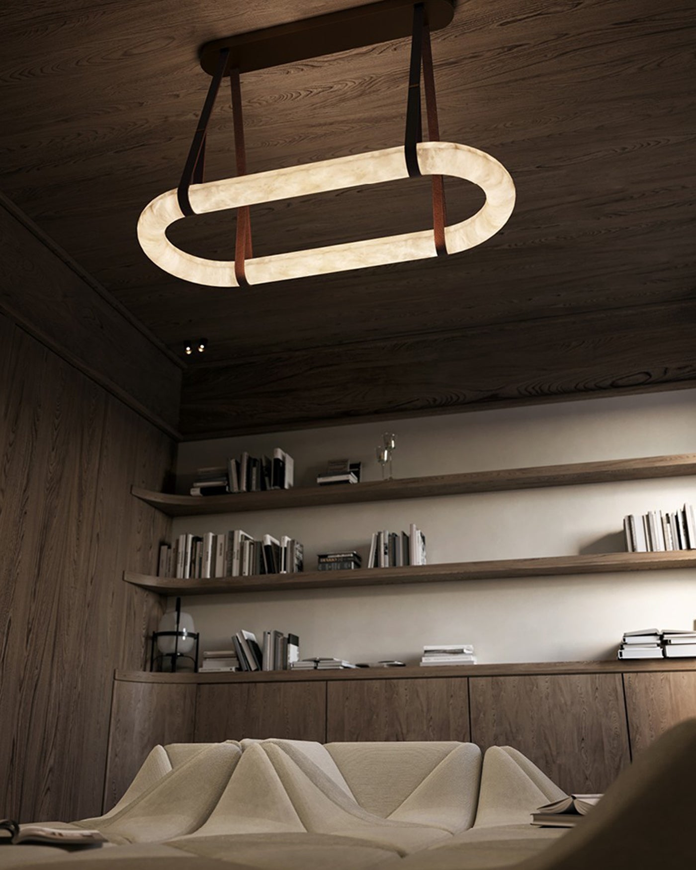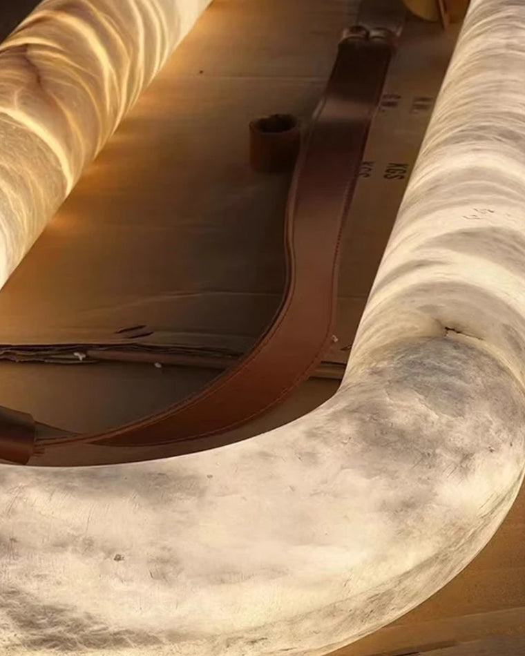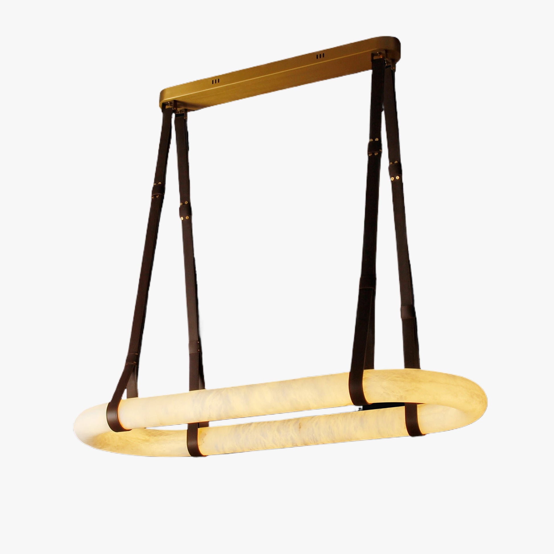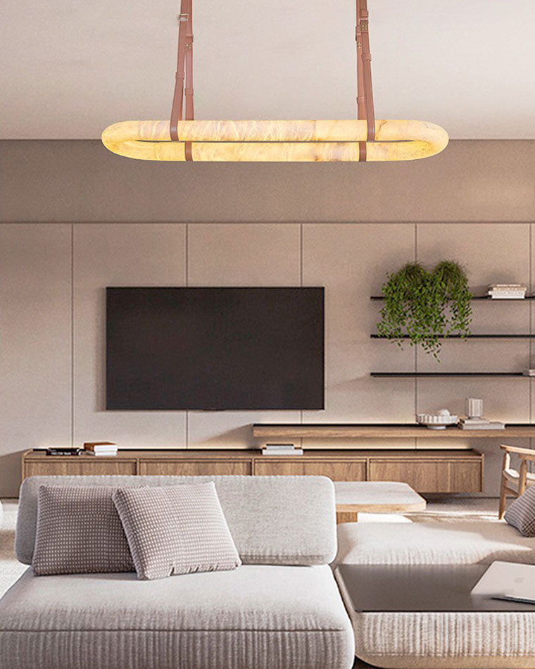 Introducing the WOMO Luxury Leather Oval Alabaster Chandelier-WM2871! Elevate your home with this modern chandelier featuring a stunning combination of coffee-colored leather and alabaster. Perfect for adding a touch of luxury and sophistication to any space, from living rooms to dining rooms and even kitchens.