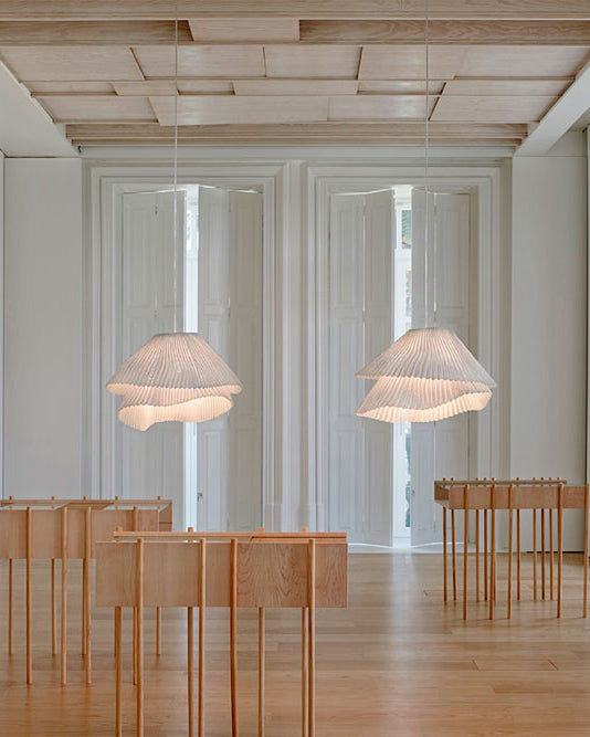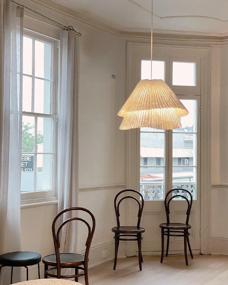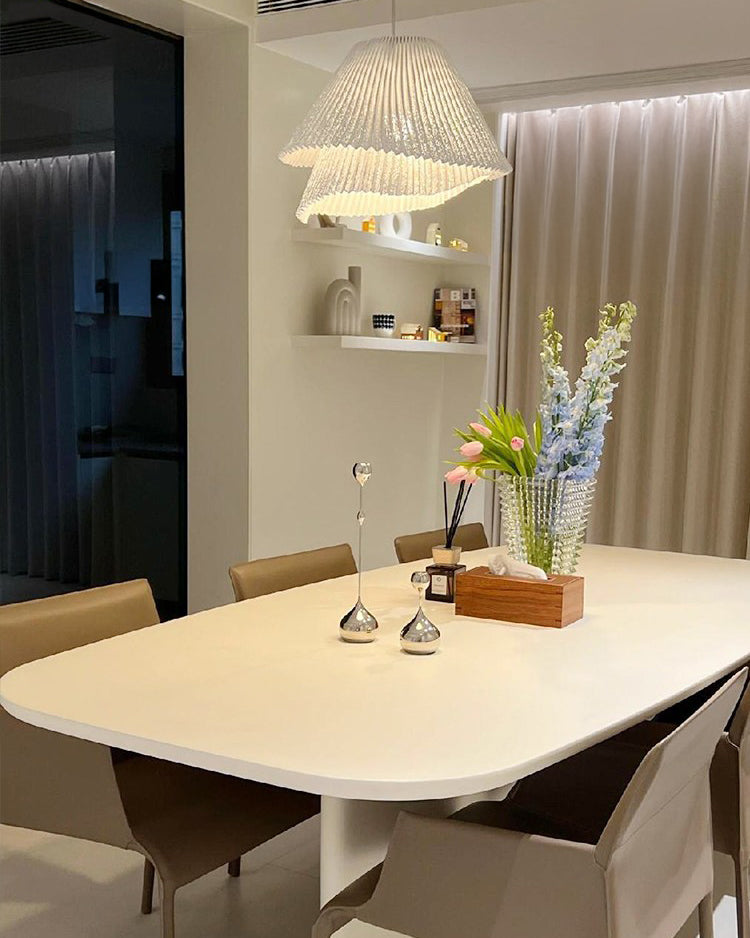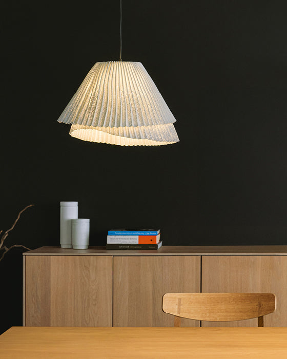 Elevate your space with our WOMO Pleated Dress Pendant Light. Crafted with high-quality steel, this Japandi-inspired design brings a touch of elegance to any bedroom or dining room. The soft white glow creates a tranquil ambiance, perfect for relaxation and intimate gatherings. Upgrade your lighting game today!